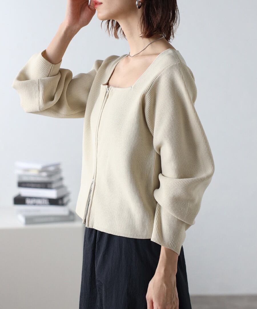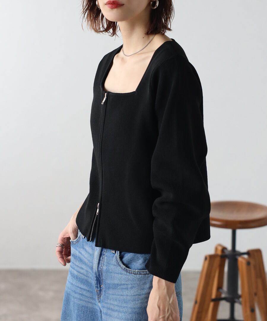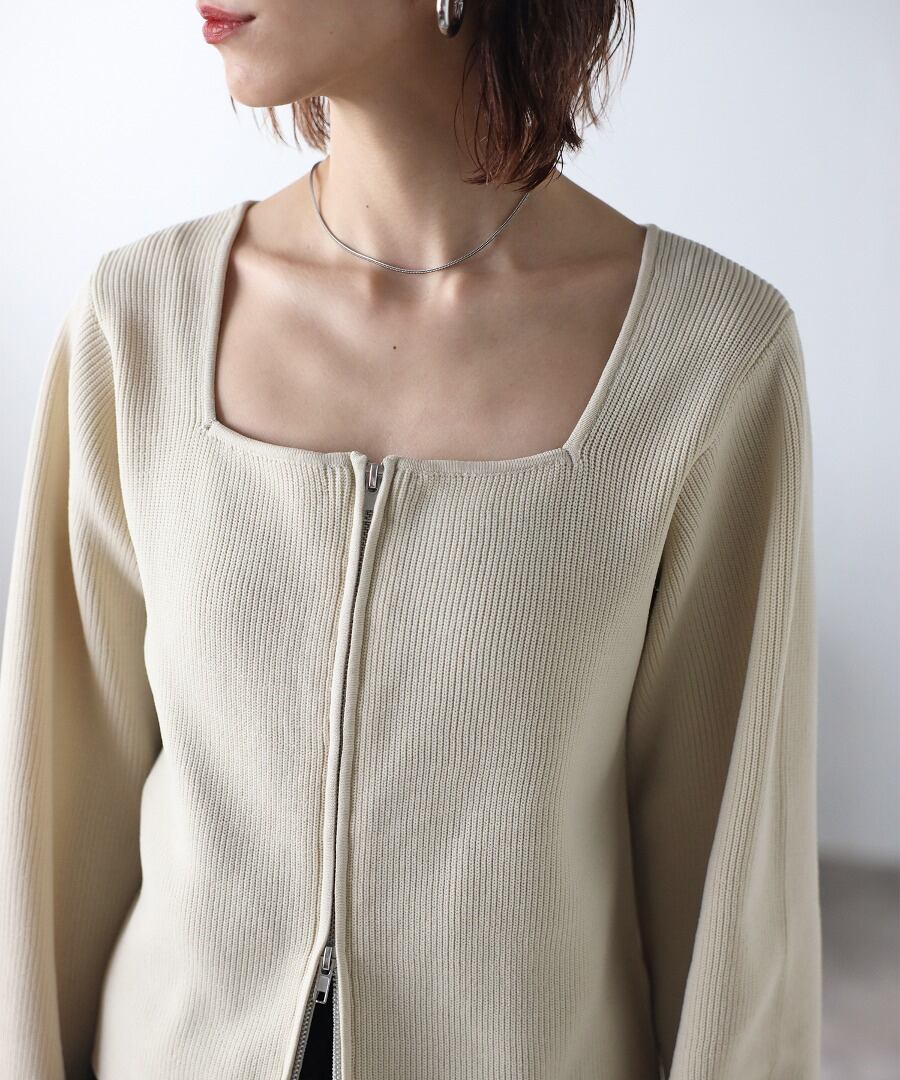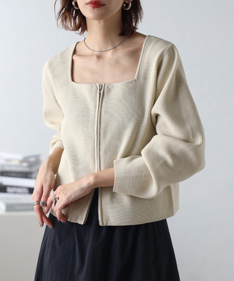 コンパクトなフォルムでマルチに使える。スクエアネックダブルジップカーディガン