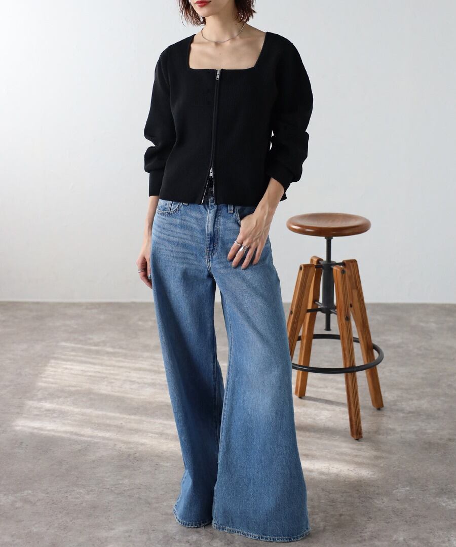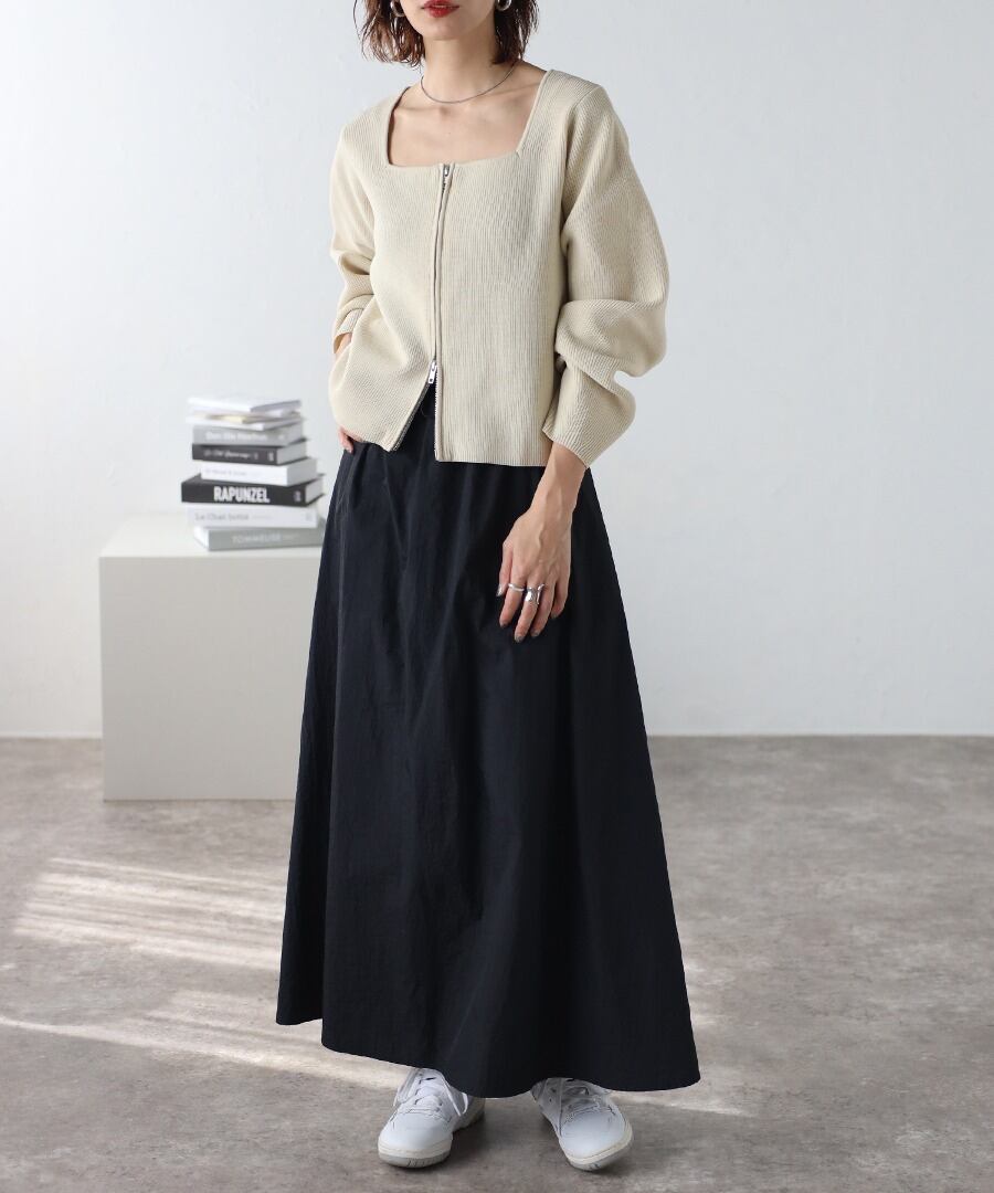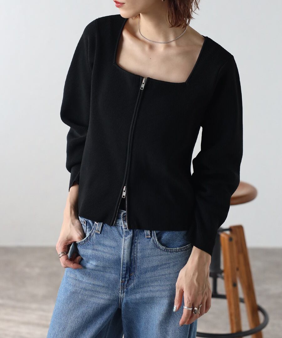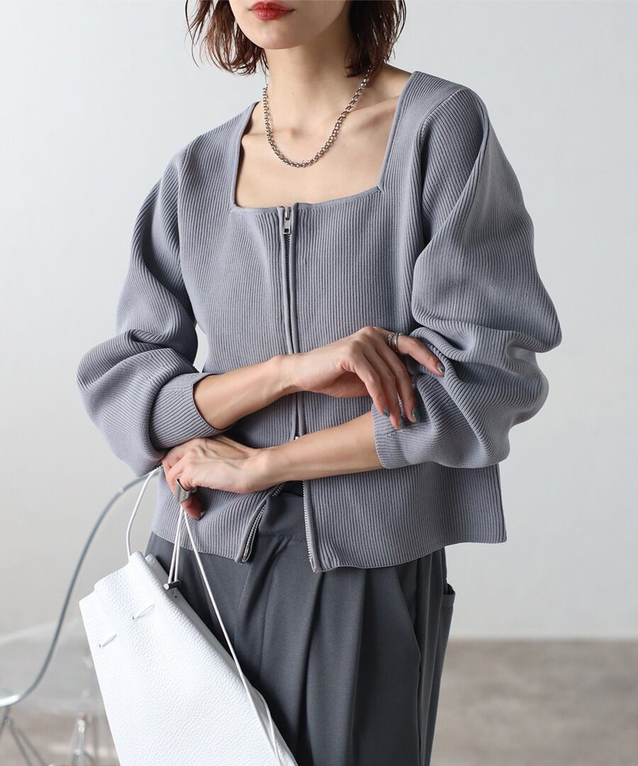コンパクトなフォルムでマルチに使える。スクエアネックダブルジップカーディガン