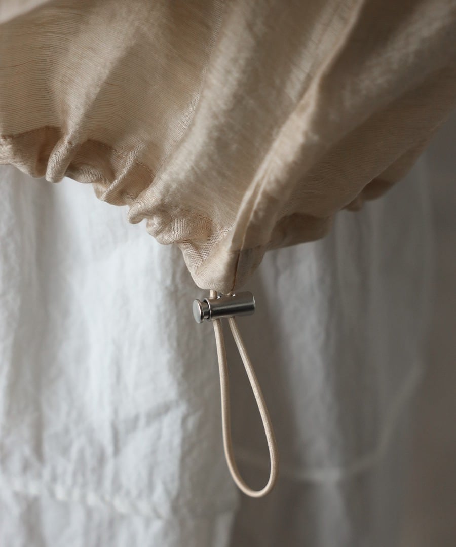 裾のコードを絞ったり、袖をたくし上げるとシルエットのアレンジも楽しめます。