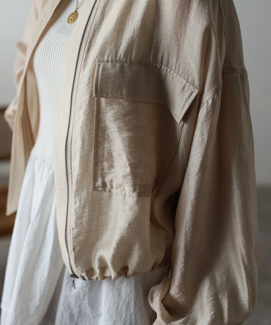 リネン混スラブシアーショートブルゾン【a-20596】.