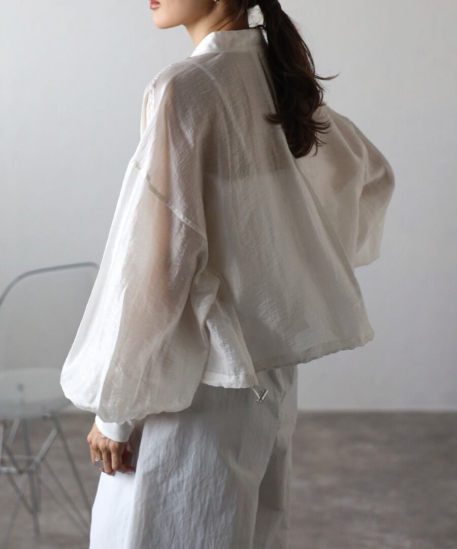 シャツ感覚で羽織れる、ナチュラルな軽やかさが魅力のシアーブルゾン