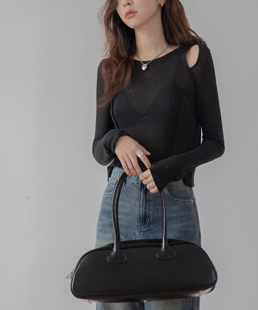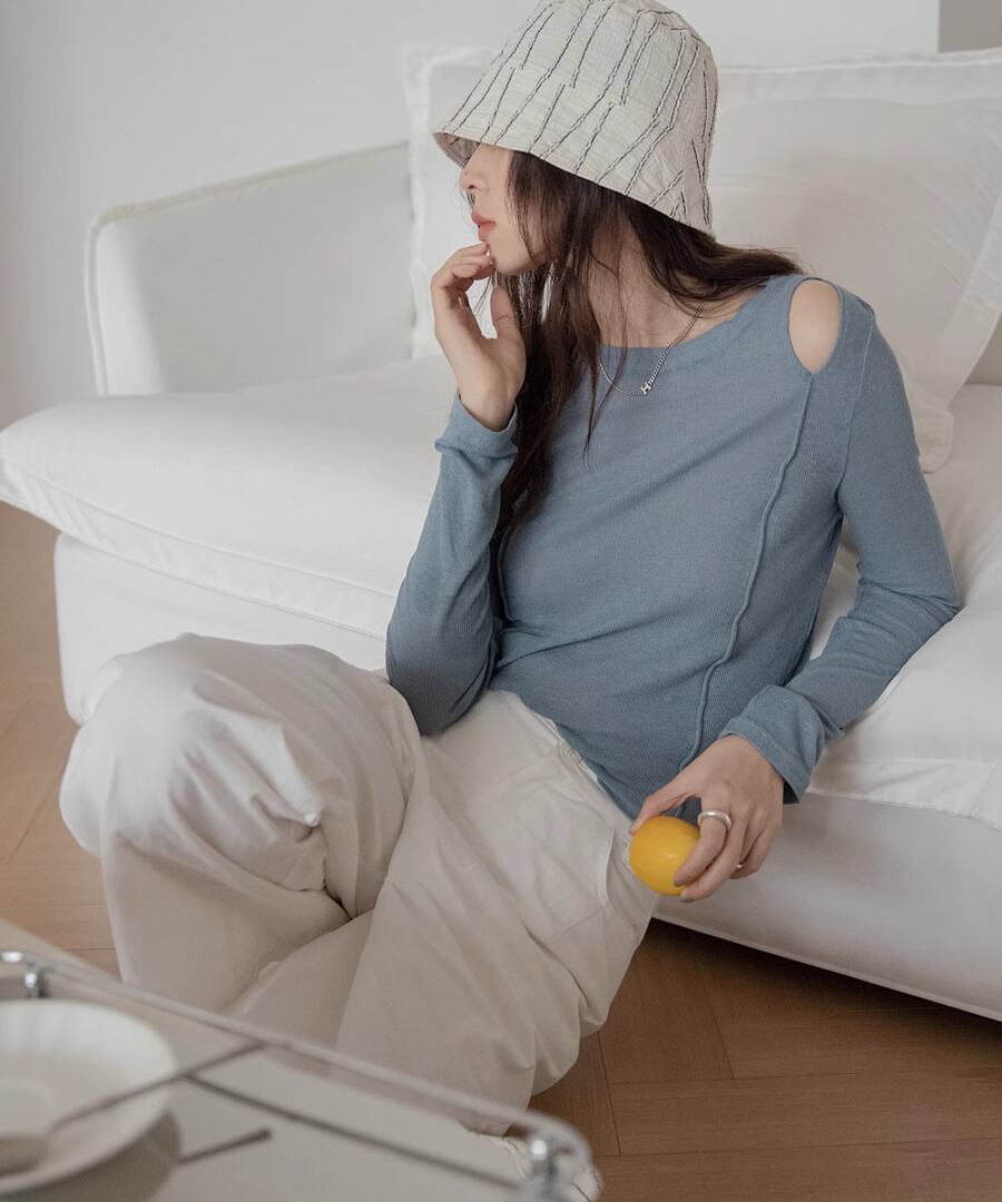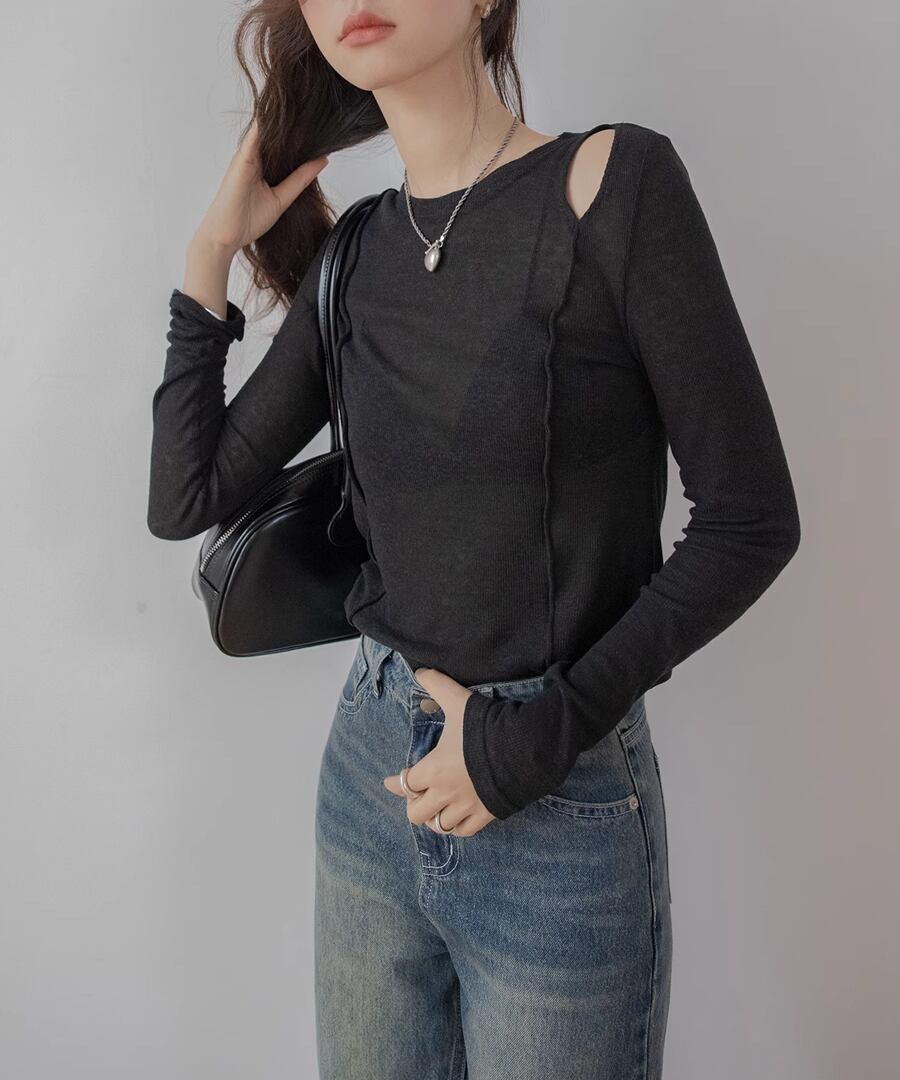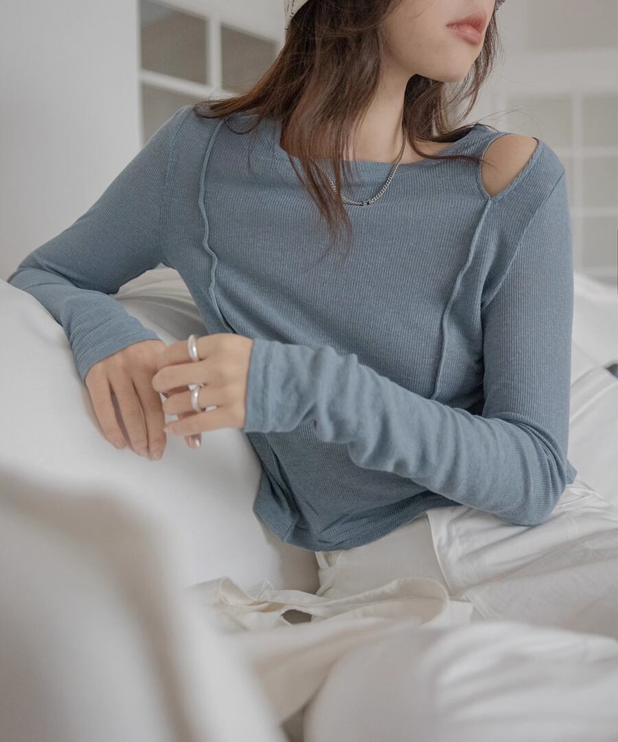 オープンショルダーのデザインが控えめでスタイリッシュです。