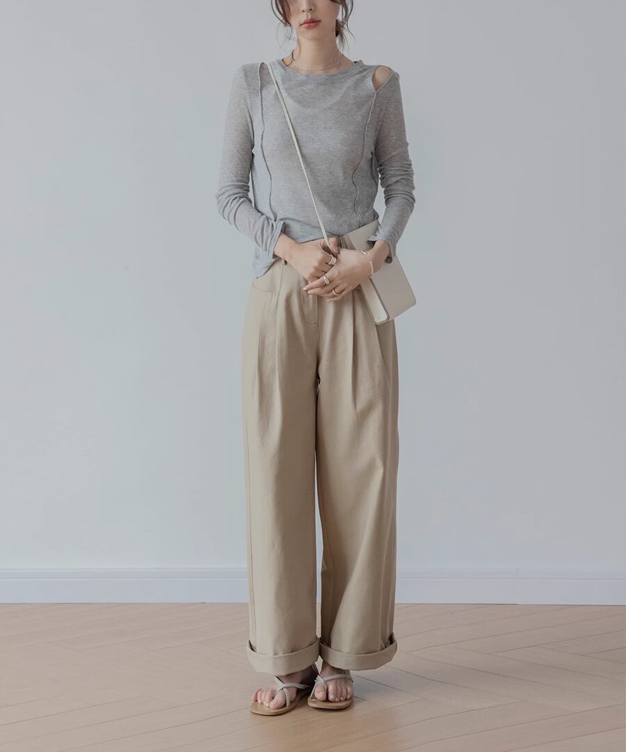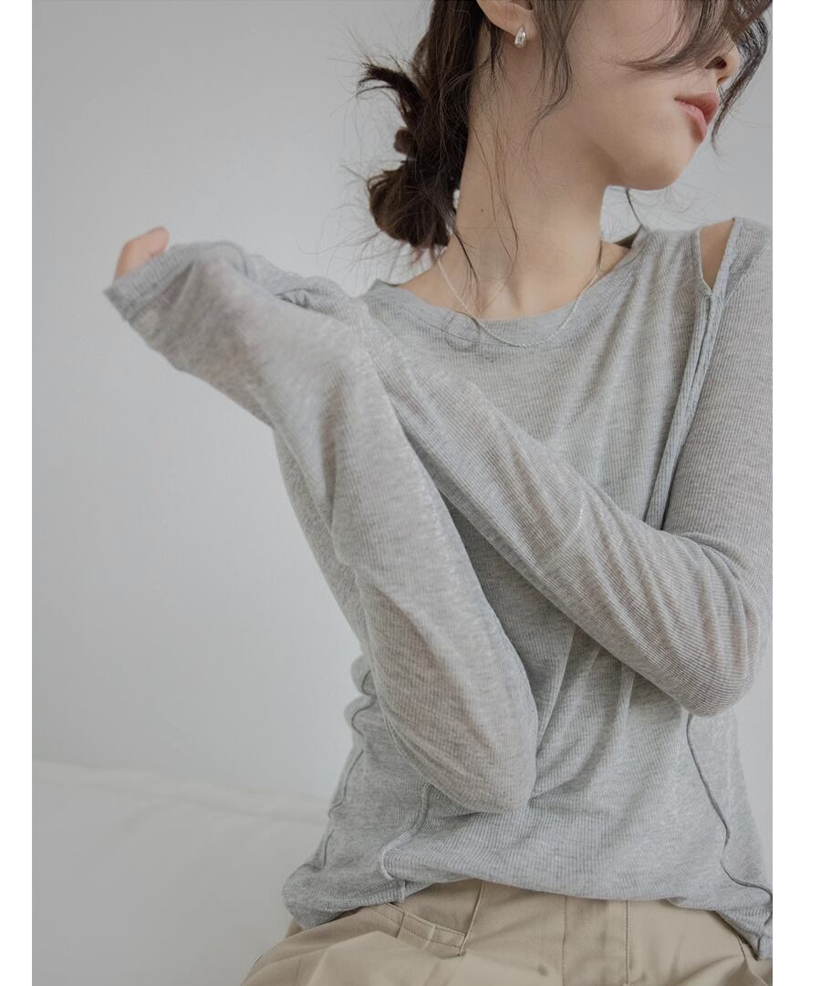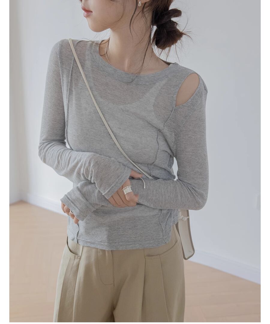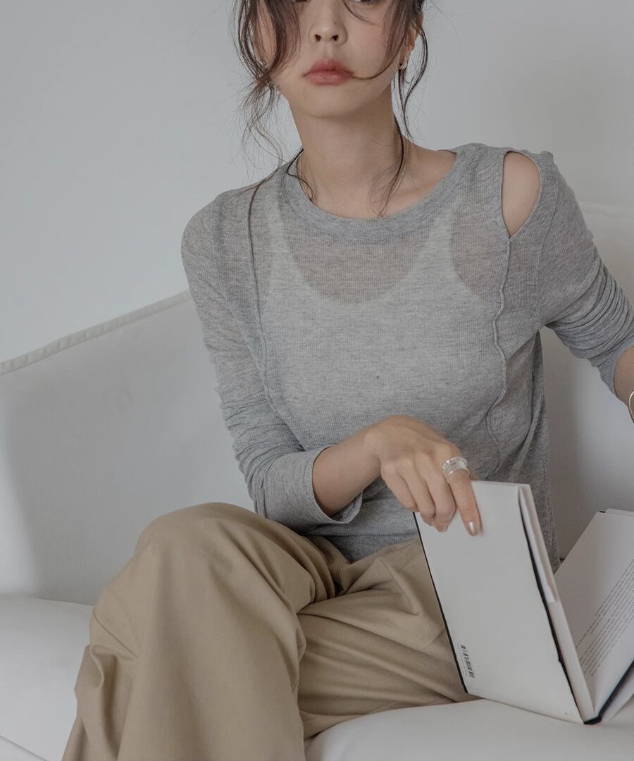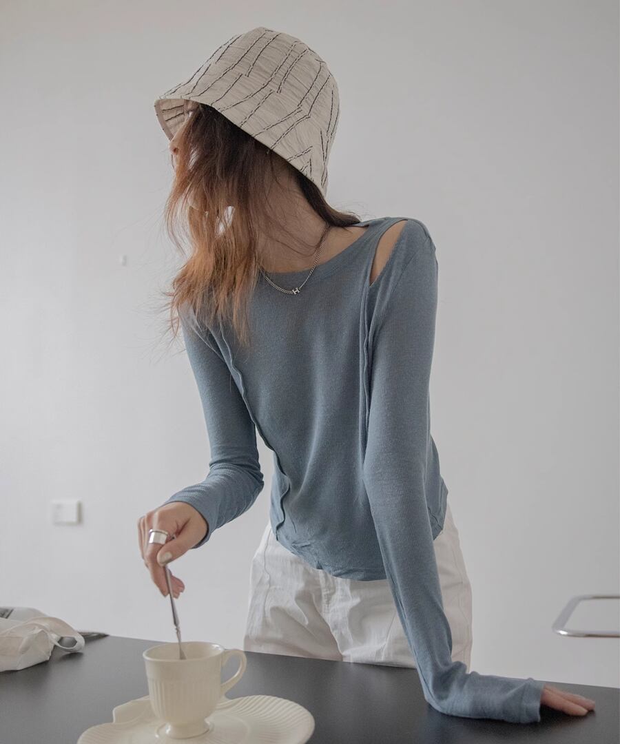 オープンショルダーのデザインが控えめでスタイリッシュです。