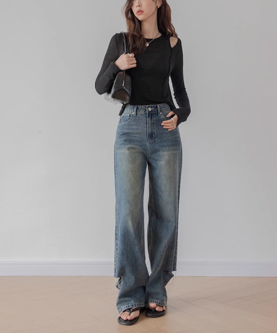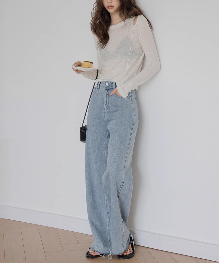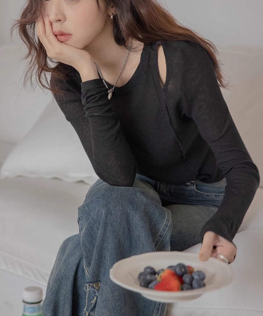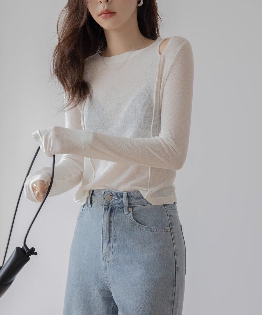 オープンショルダーのデザインが控えめでスタイリッシュです。