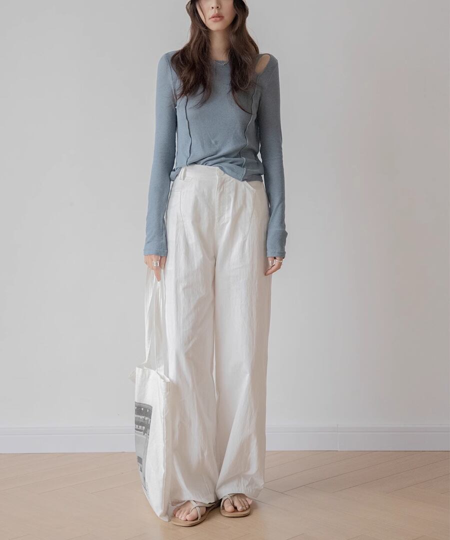 コットンとリネンのスラブ糸生地は、軽くわずかに透け感がありますが