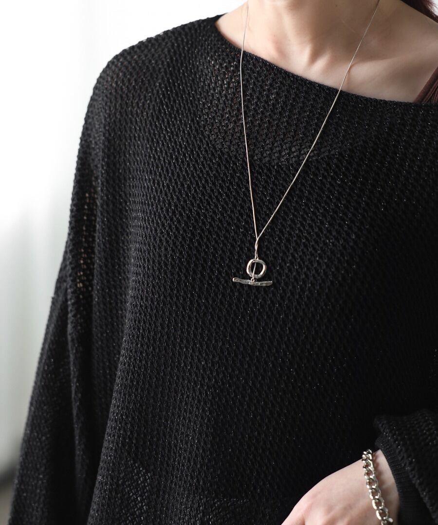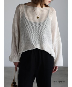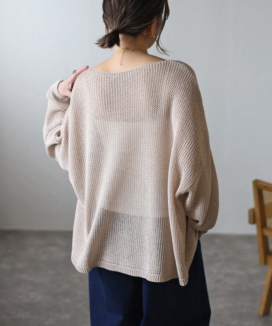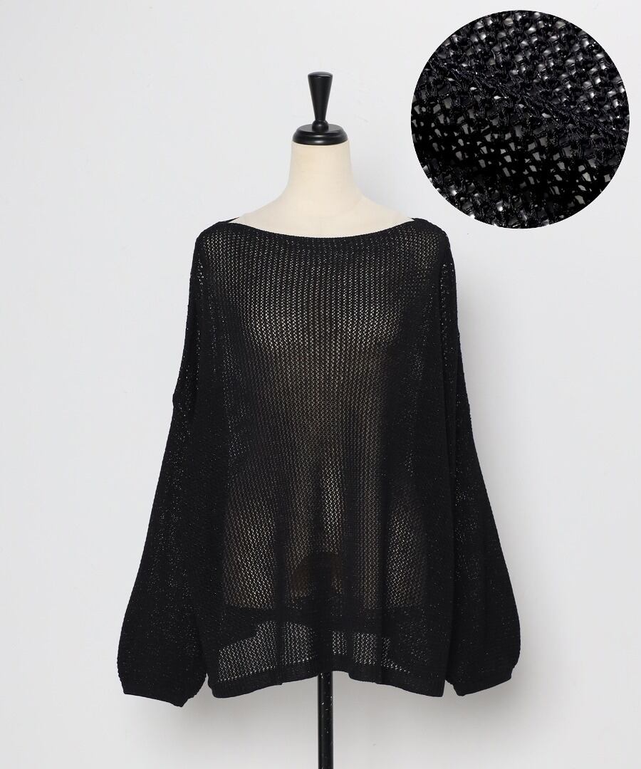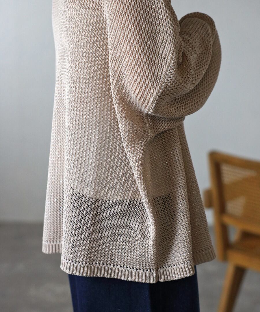 上品なシルバーのラメ糸が編み込まれたメッシュニットプルオーバー。
