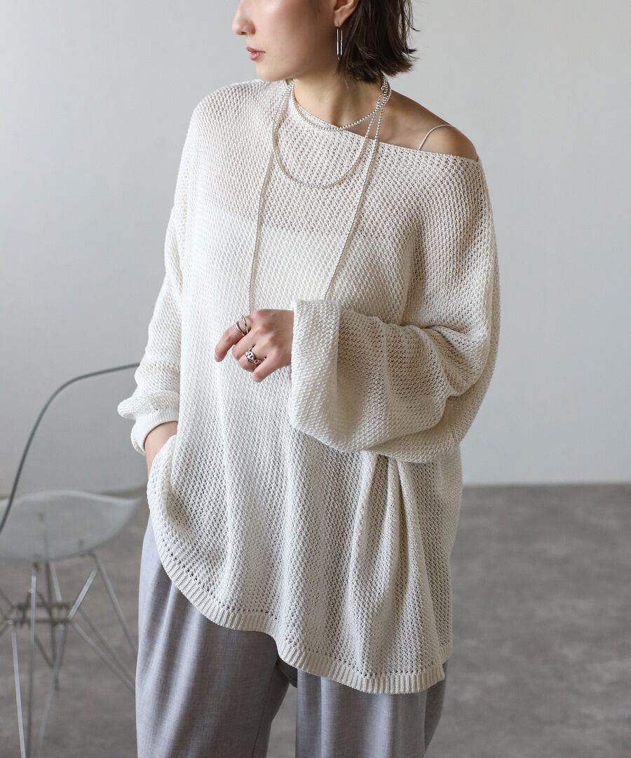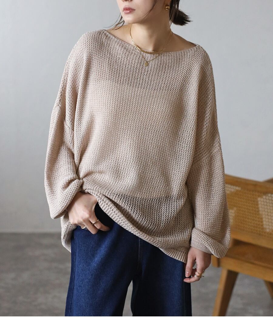 メッシュの編み目から程よくインナーが透け、大人っぽい抜け感と軽やかさを演出してくれます。