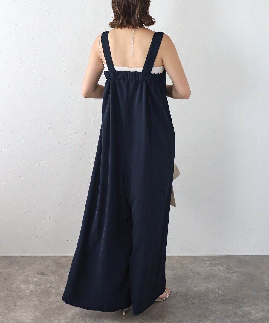 動きのあるドレープが大人のエレガントムードを演出する、エフォートレスで洗練された印象のオールインワン。