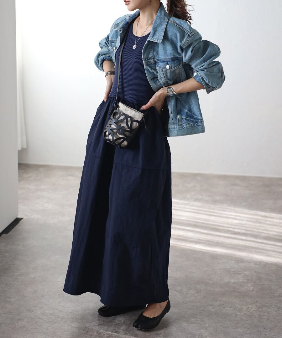 ショートブルゾンやデニムジャケットを羽織っても軽やかに決まります。