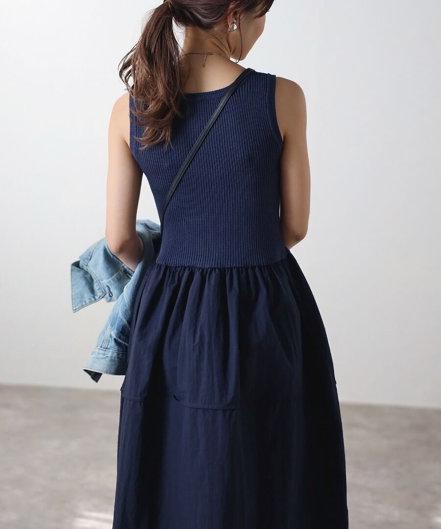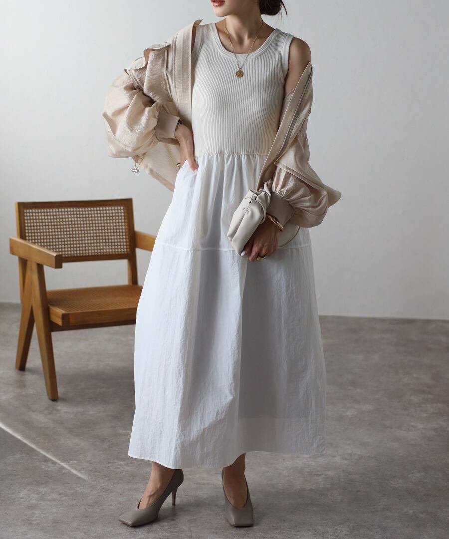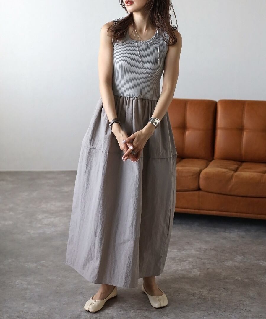 一枚で楽に着映える!ニット×ナイロンの異素材ドッキングワンピース