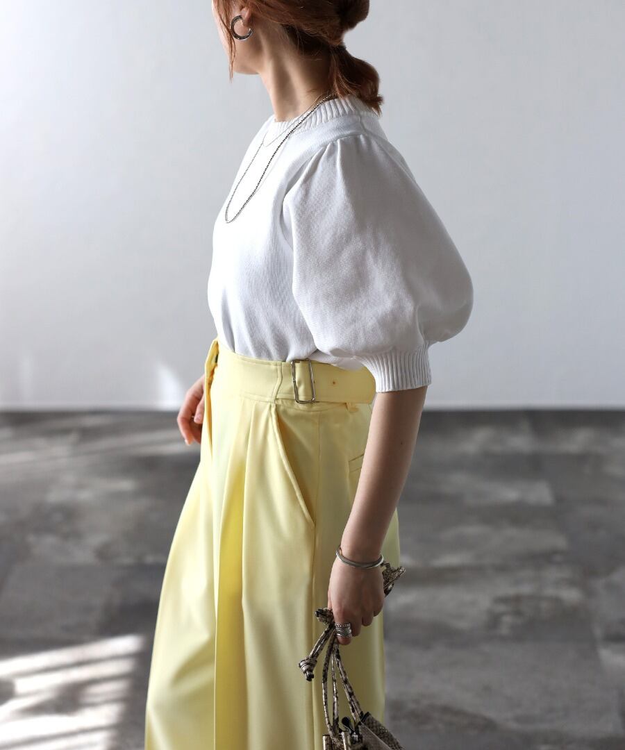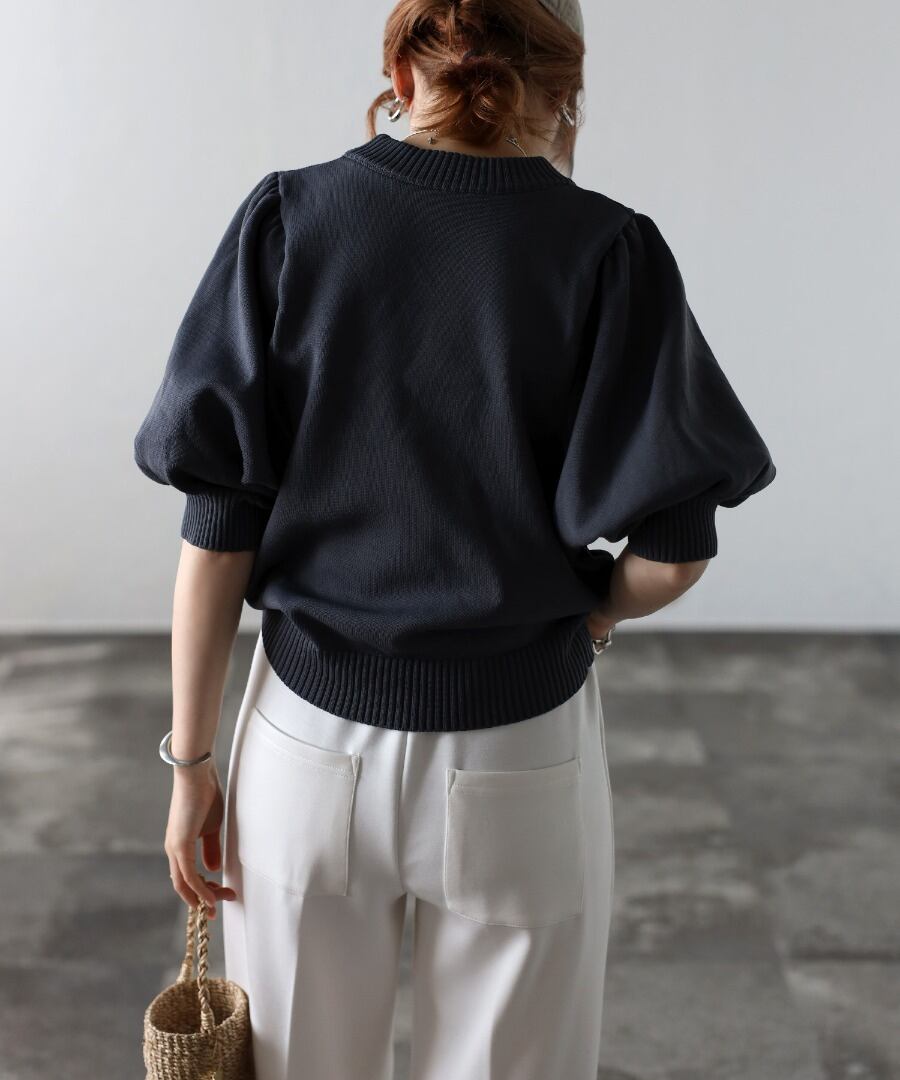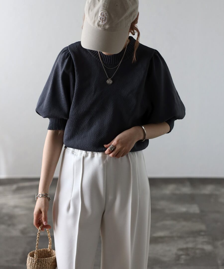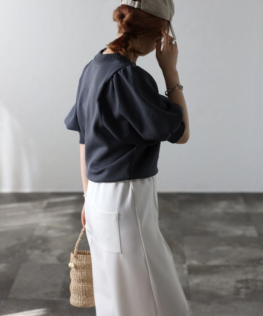 立体的なパフスリーブで二の腕もすっきりと隠してくれます。