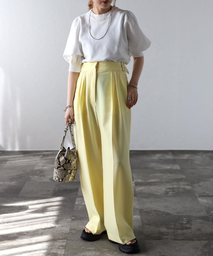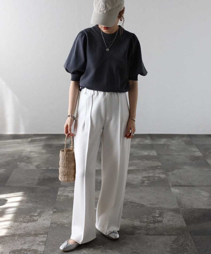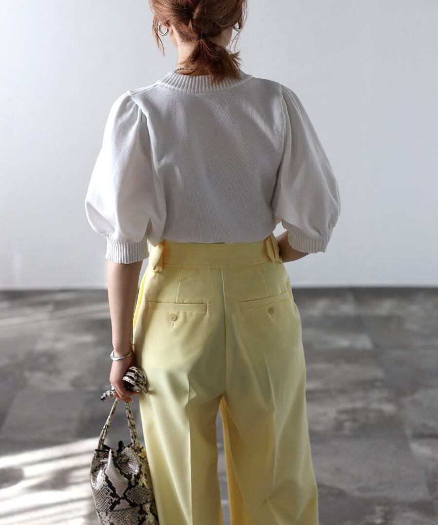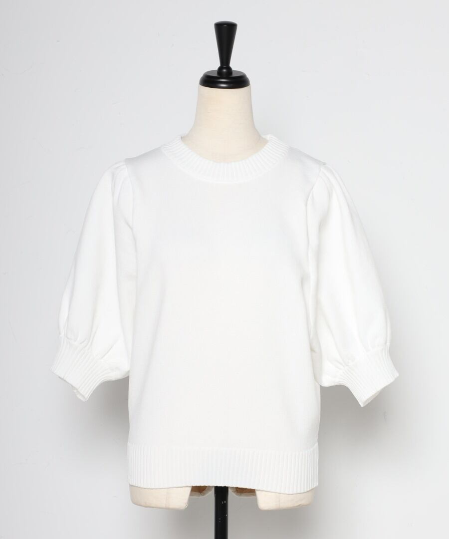 立体的なパフスリーブで二の腕もすっきりと隠してくれます。