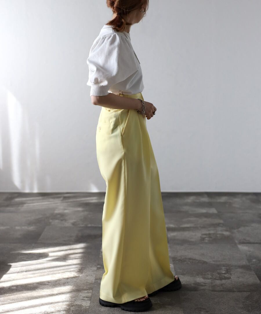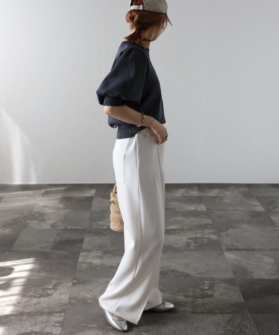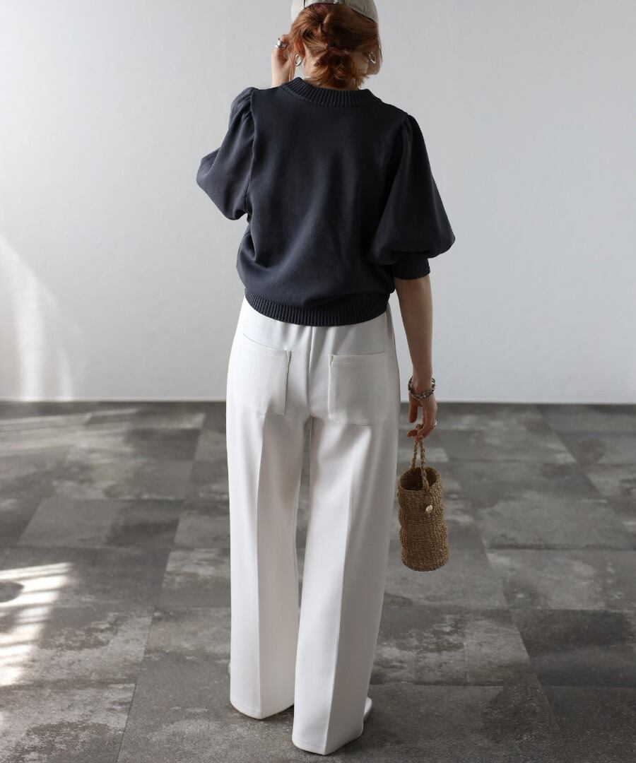 短めの着丈はパンツにもスカートにも合わせやすい一着です。