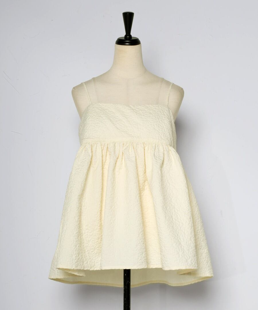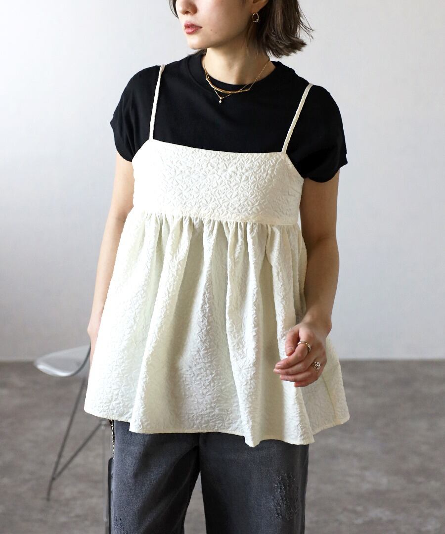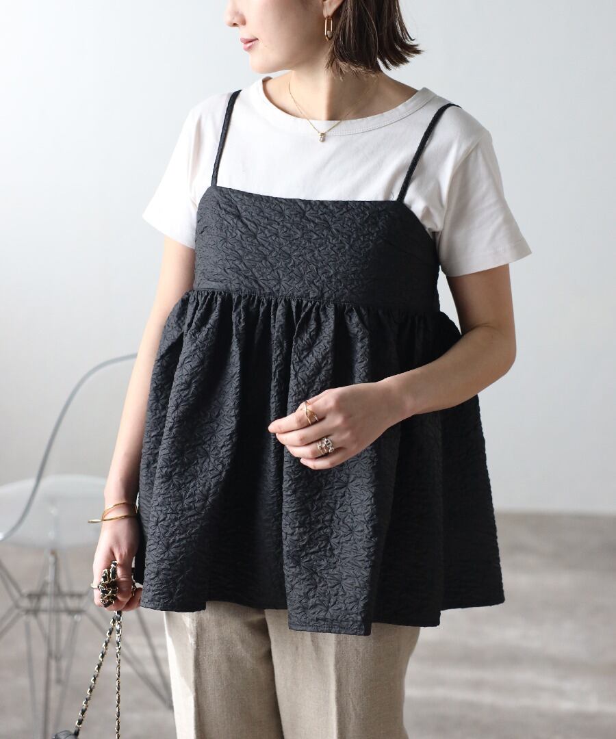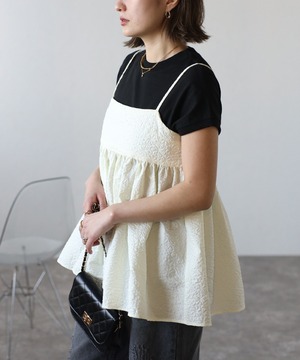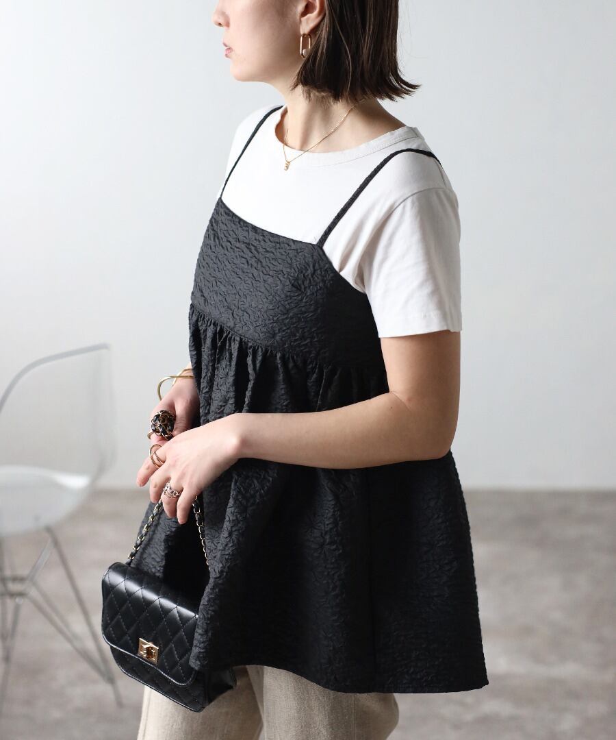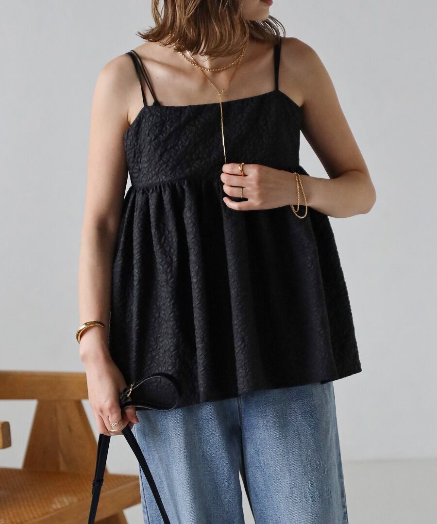 凹凸のあるふくれジャガード素材がフェミニンで華やかな印象のキャミブラウス。