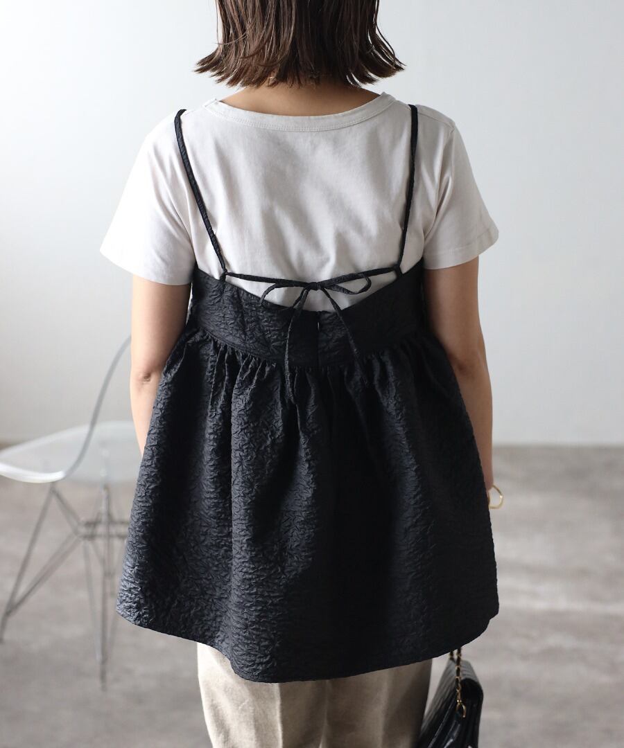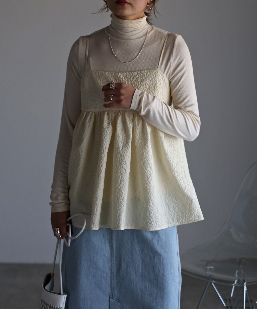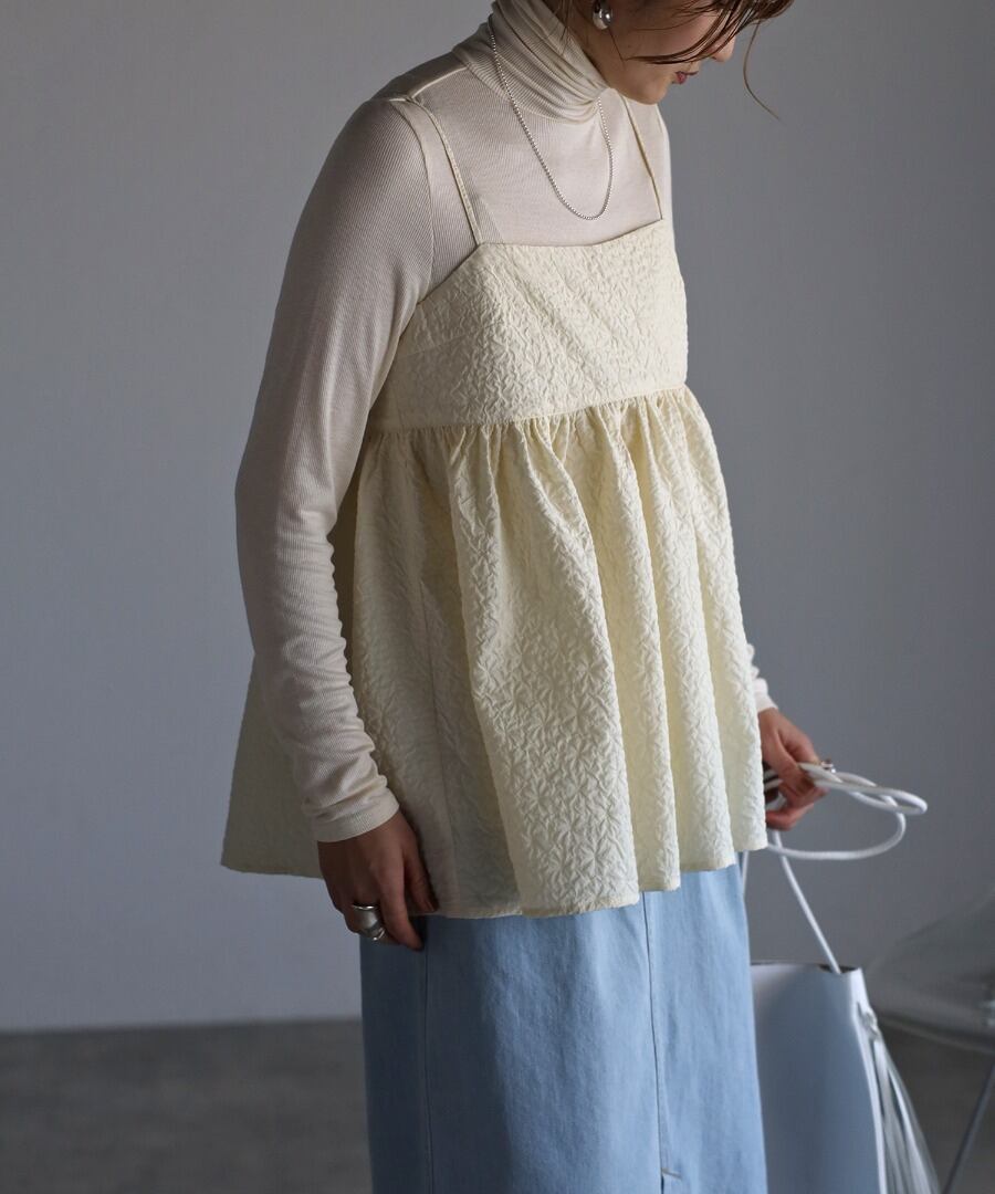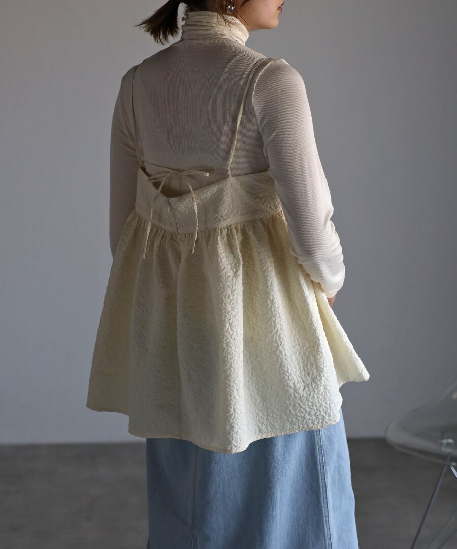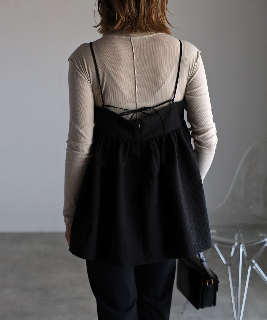 凹凸のあるふくれジャガード素材がフェミニンで華やかな印象のキャミブラウス。