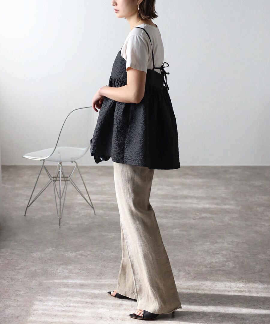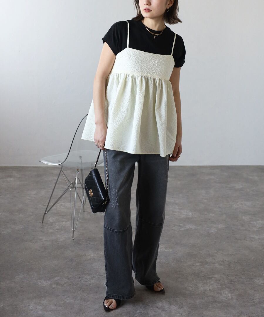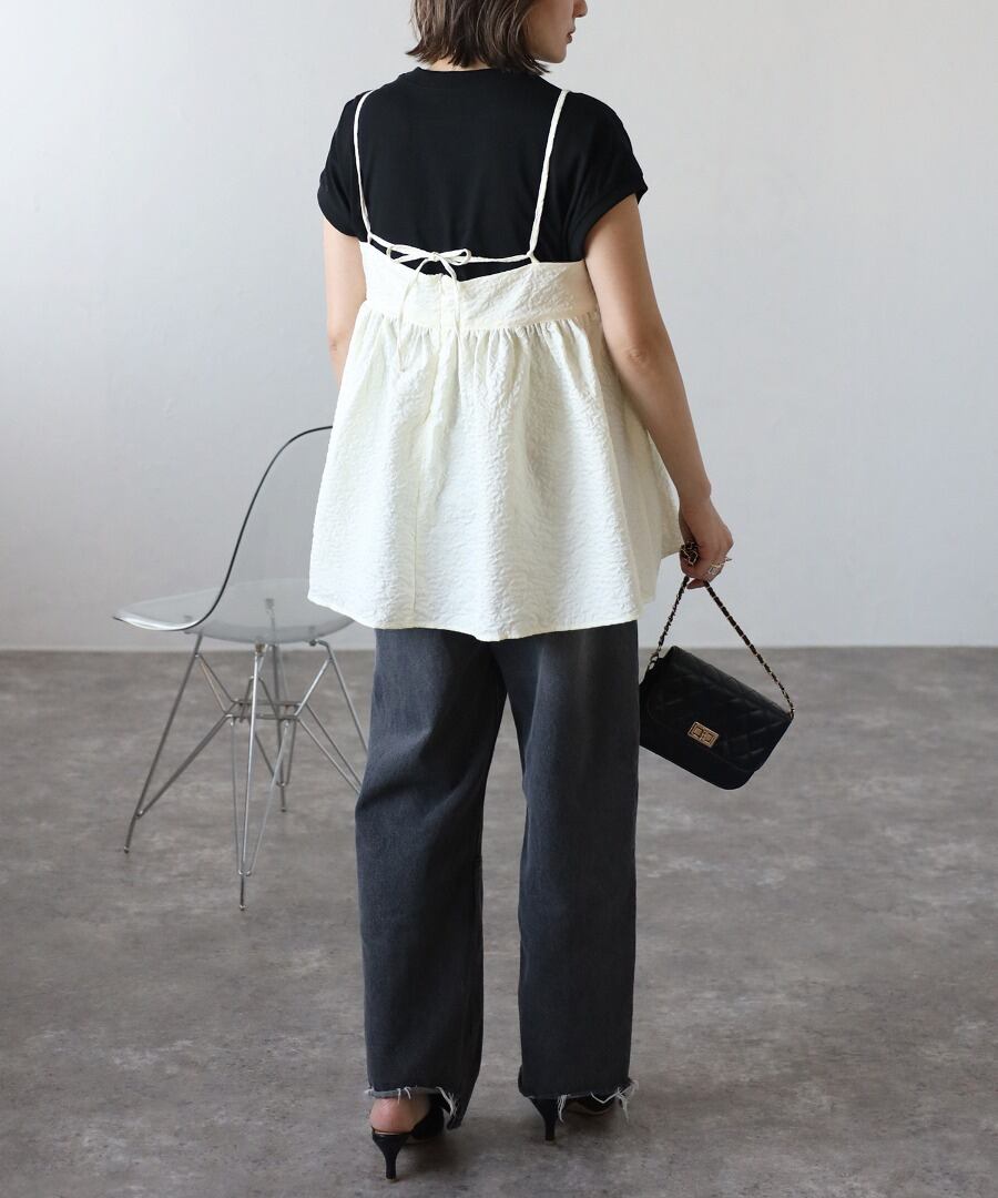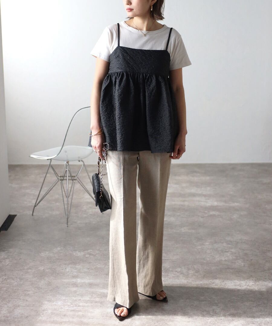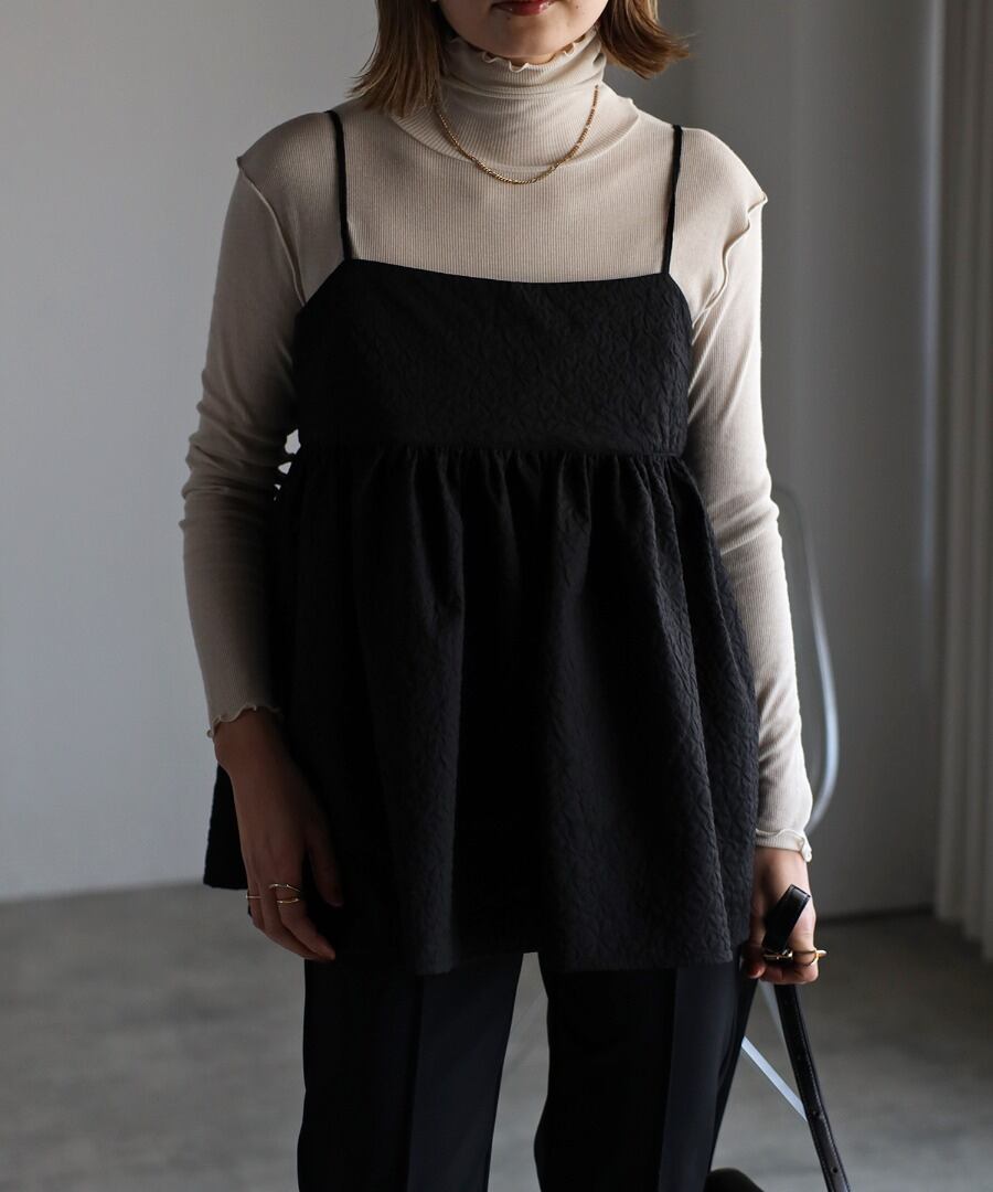 凹凸のあるふくれジャガード素材がフェミニンで華やかな印象のキャミブラウス。