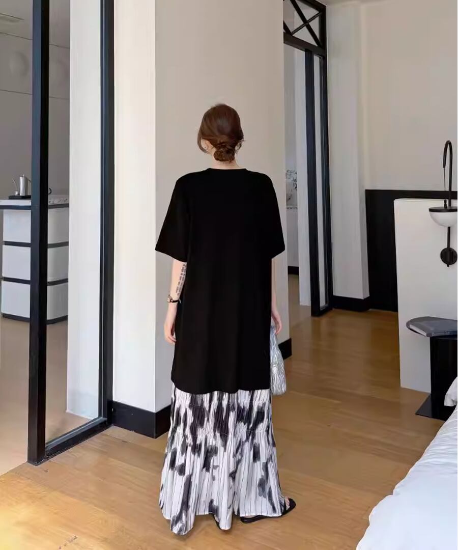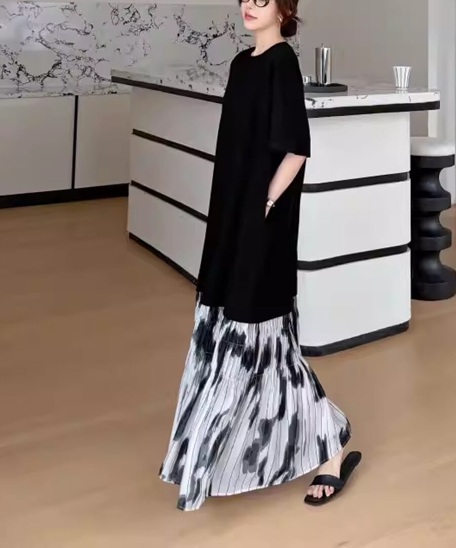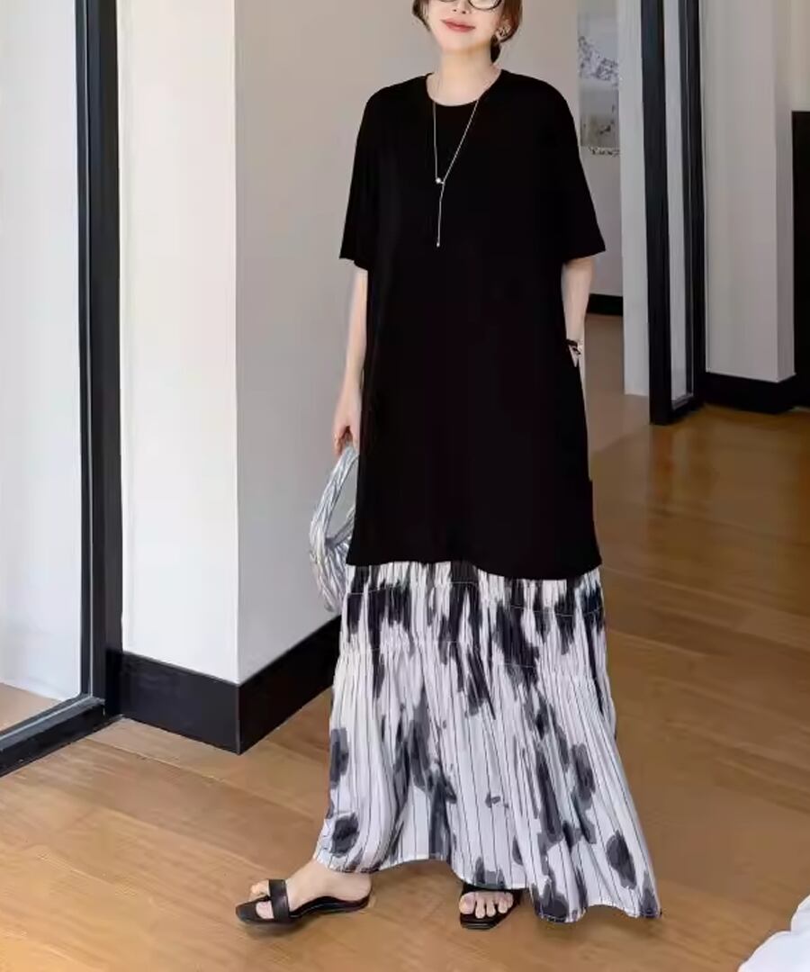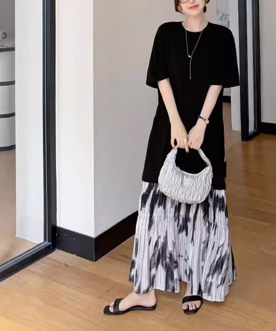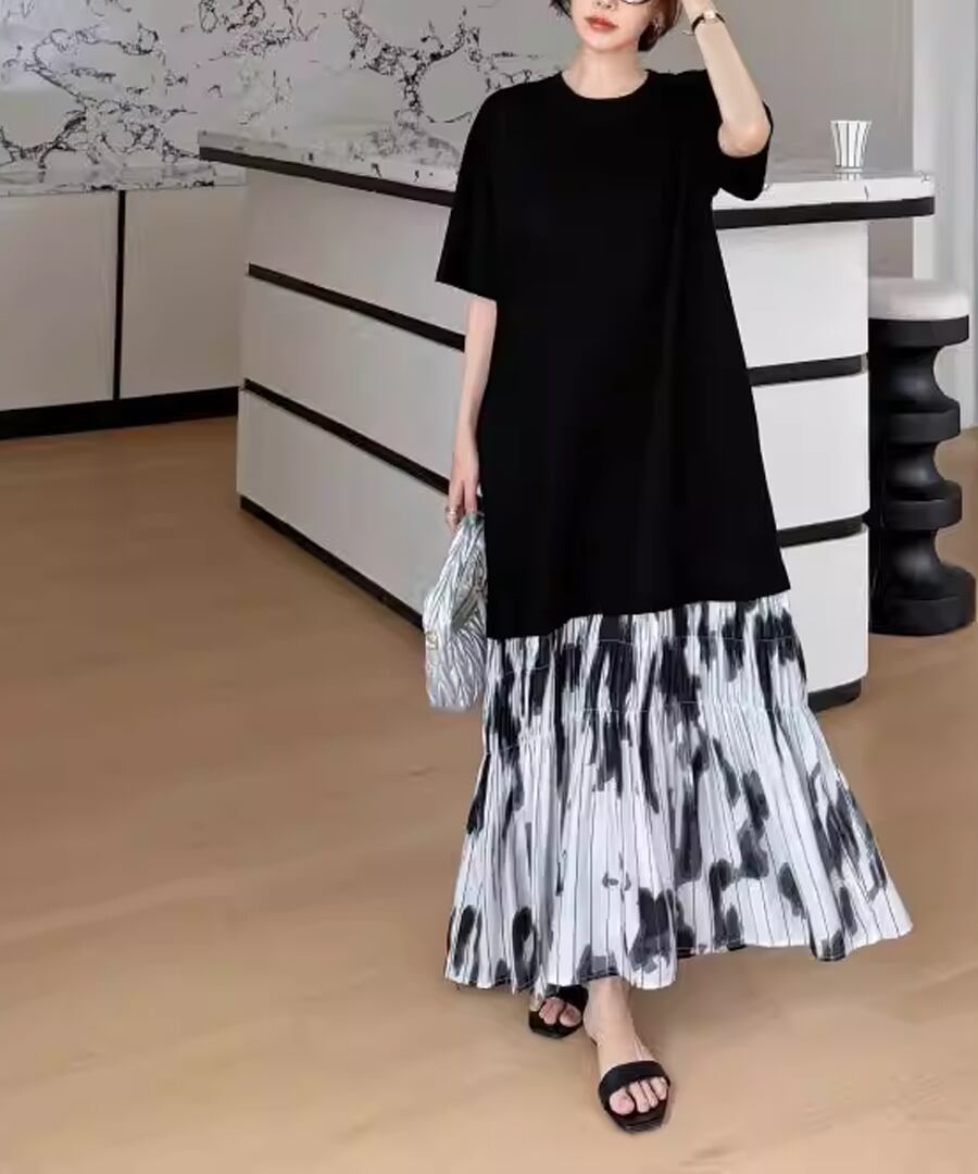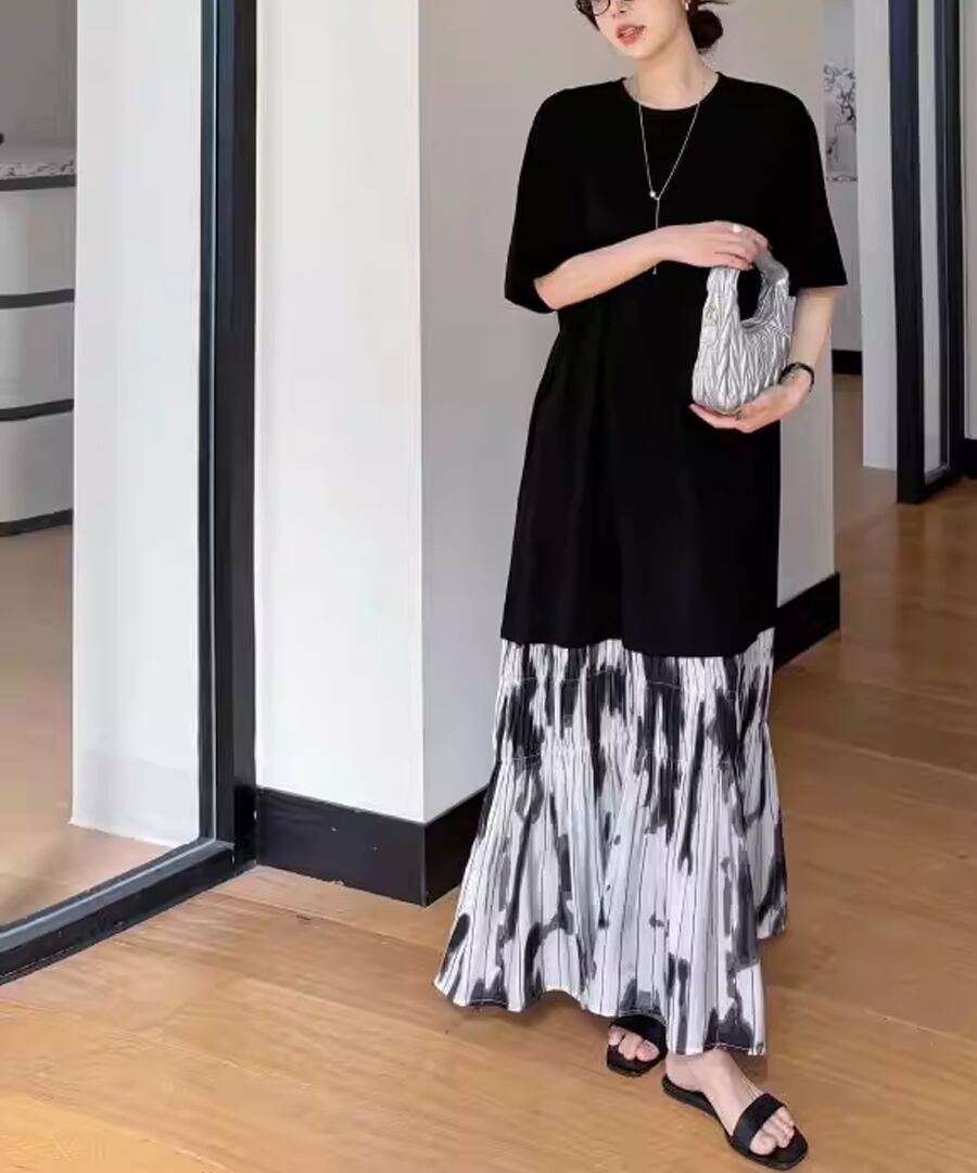 ヘム切り替え◆半袖ワンピース【w-30073】