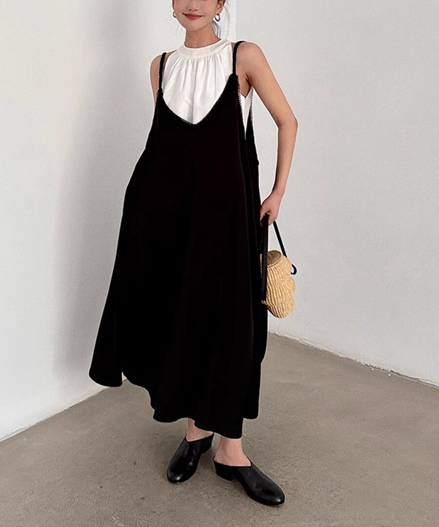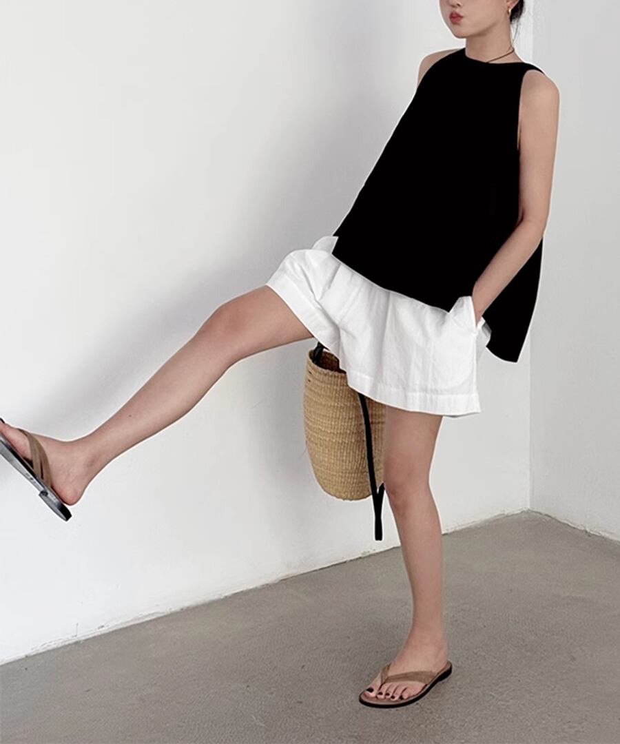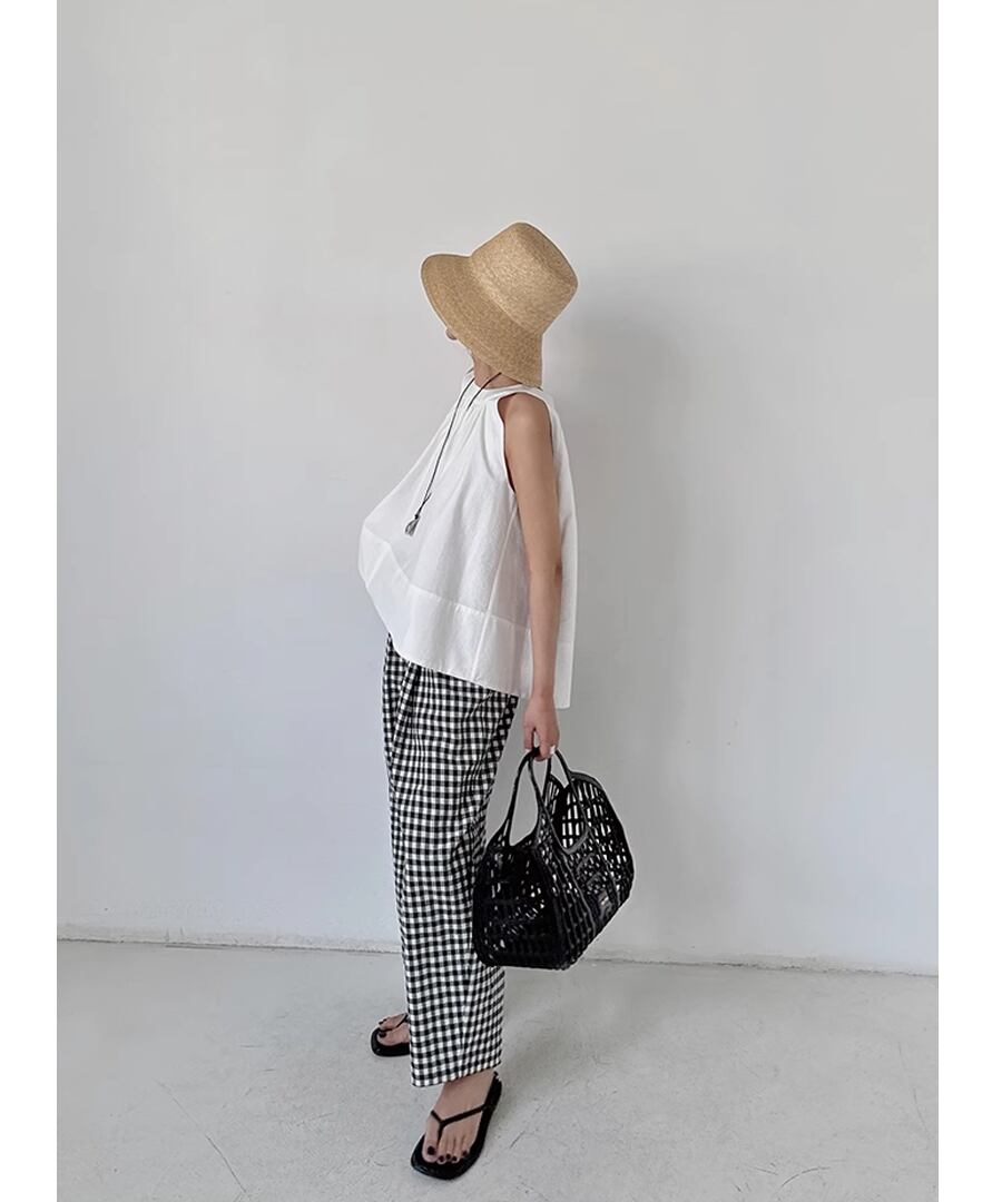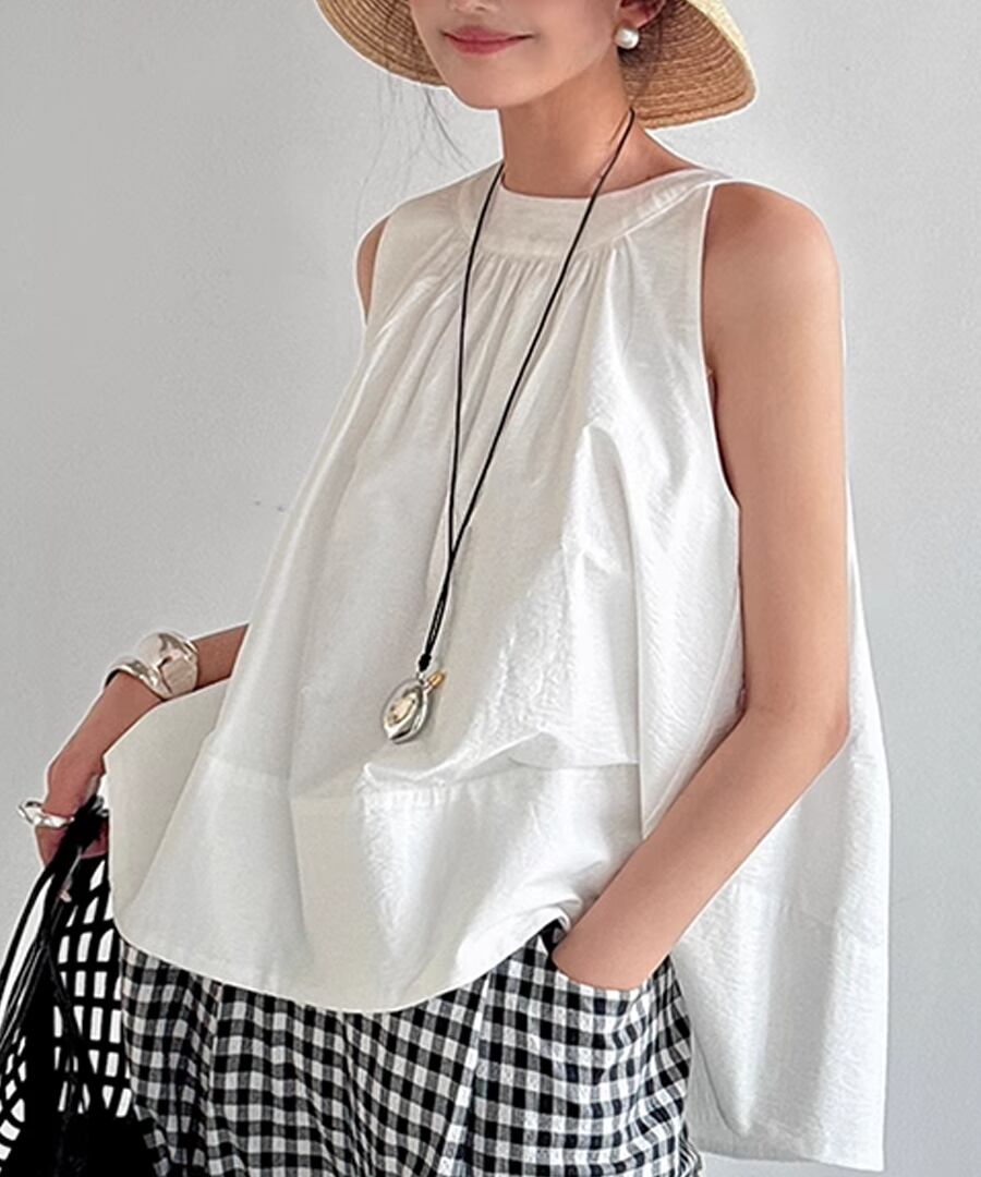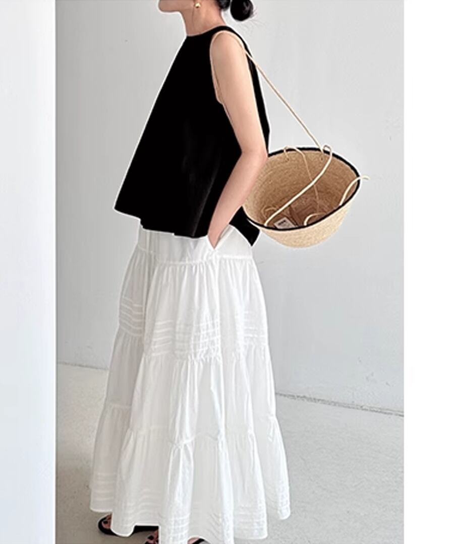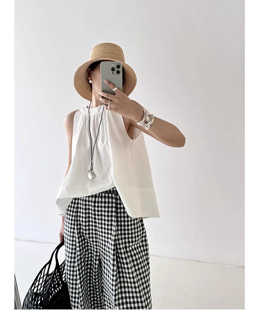 ワイドレッグパンツやソリッドカラーのミディスカートと合わせると