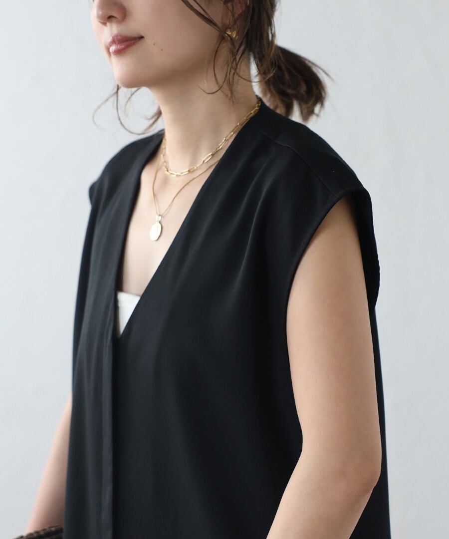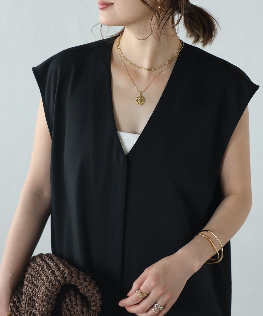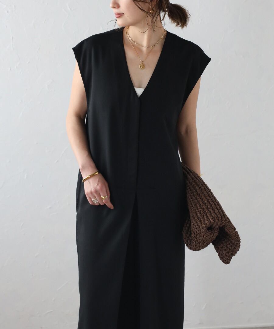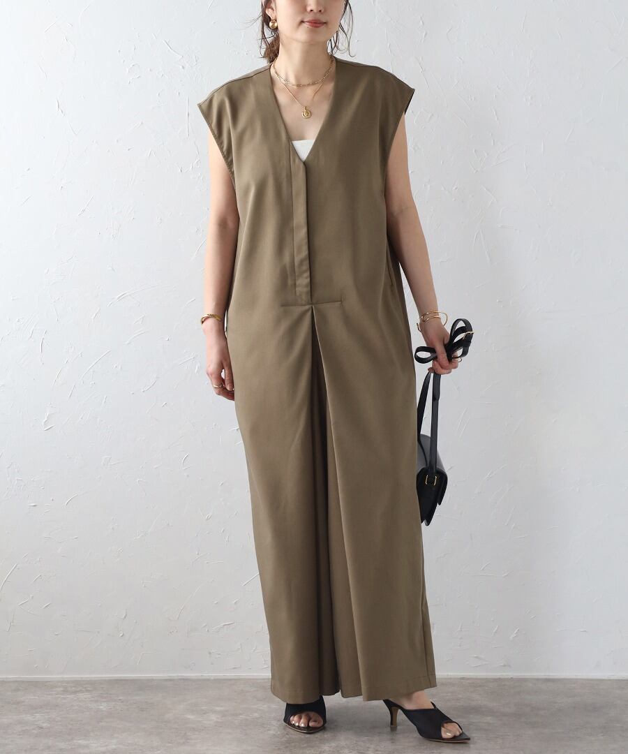 フロントタックVネックオールインワン【p-20252】.