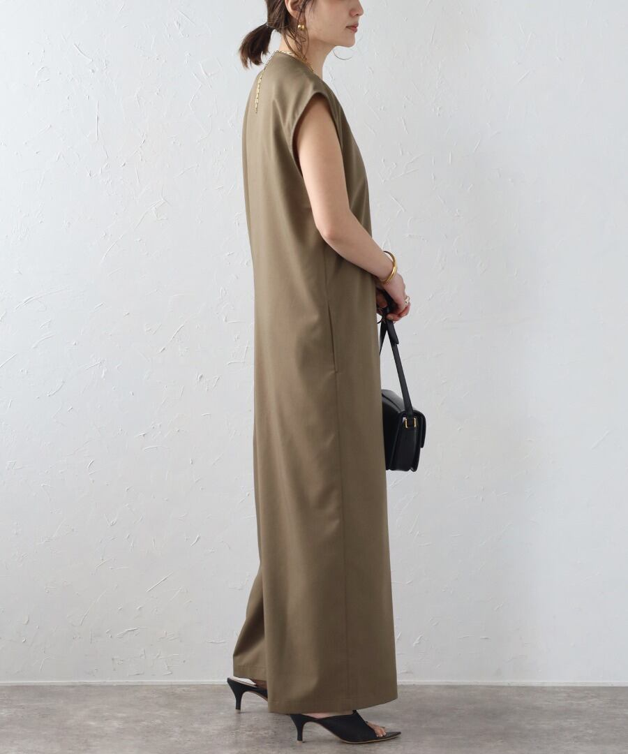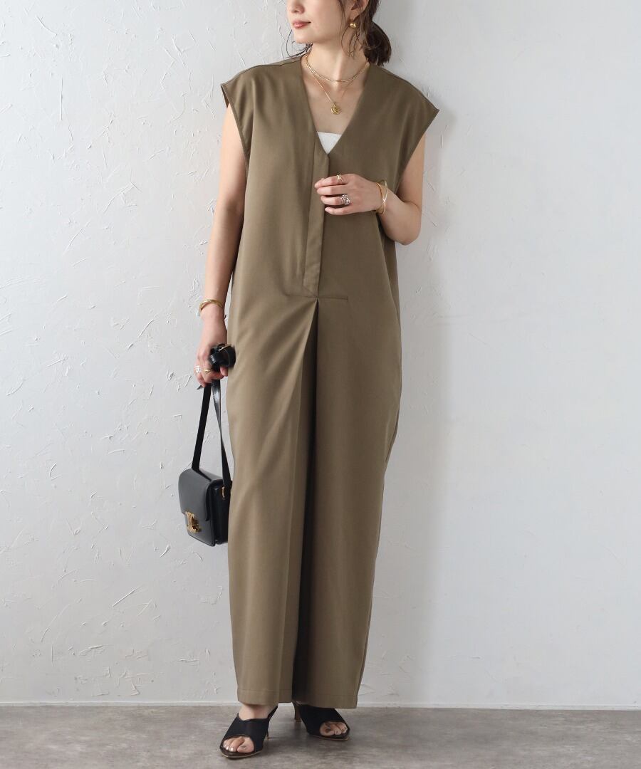 抜け感のあるVネックが大人っぽい。キレイめオールインワン