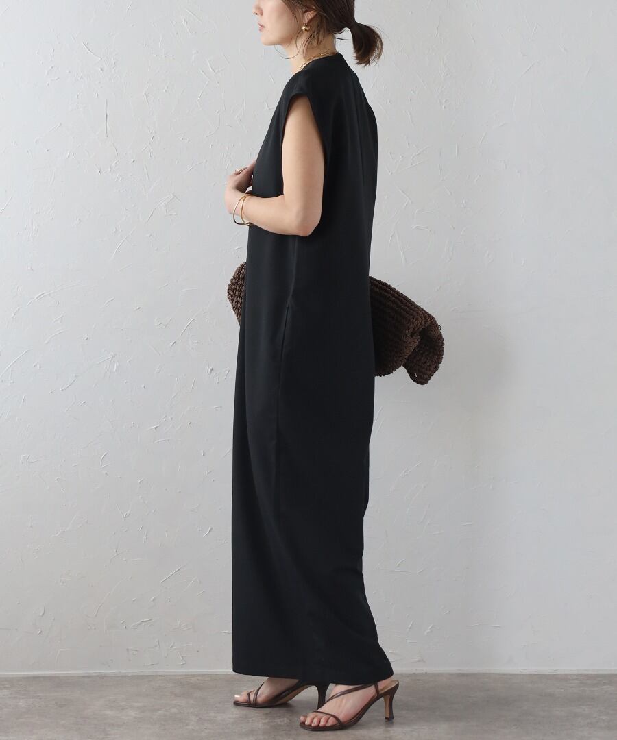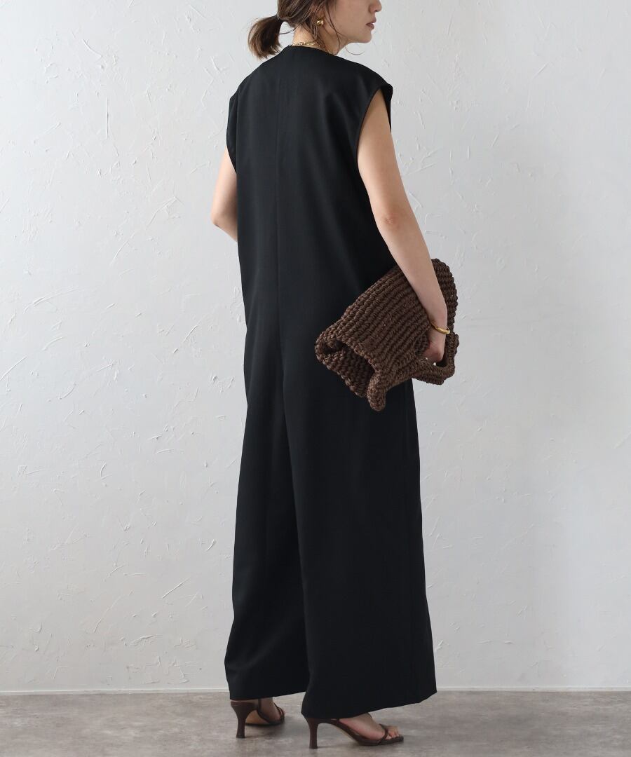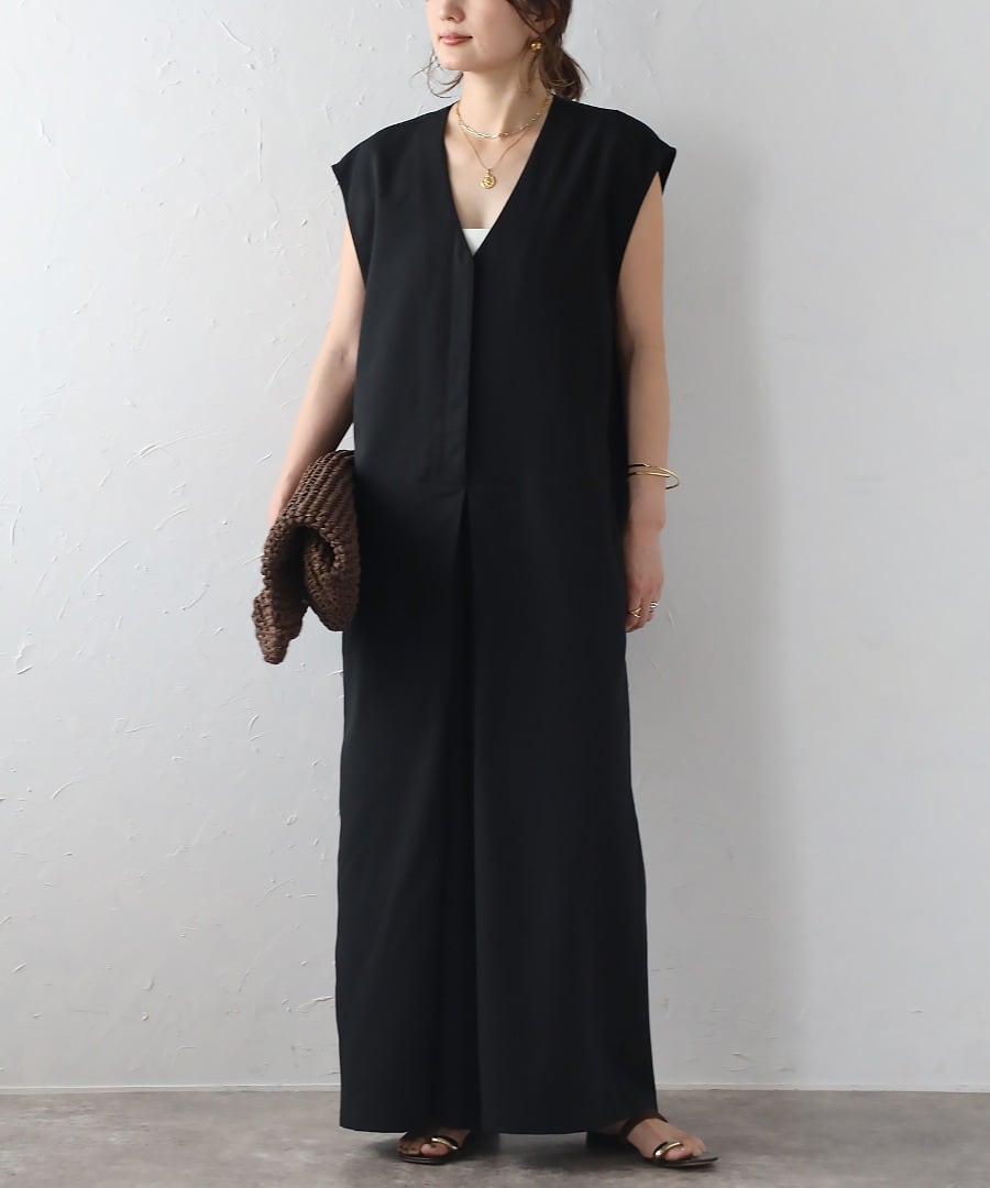 フロントタックがこなれた雰囲気で、モード感のあるオールインワン。