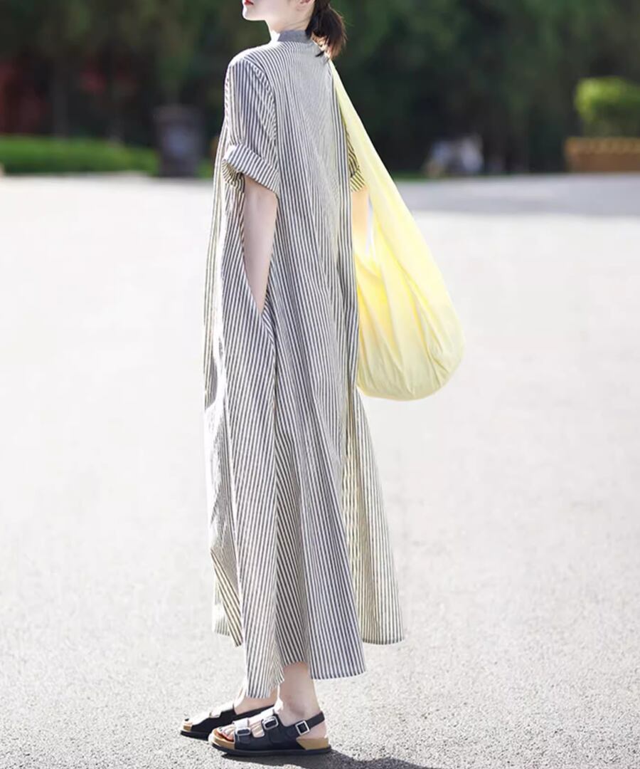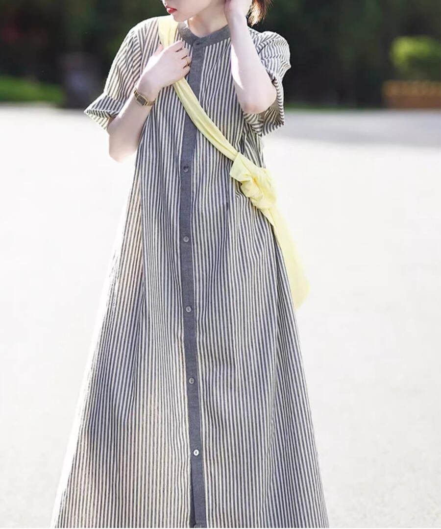 ストライプ◆シャツワンピ【w-30091】