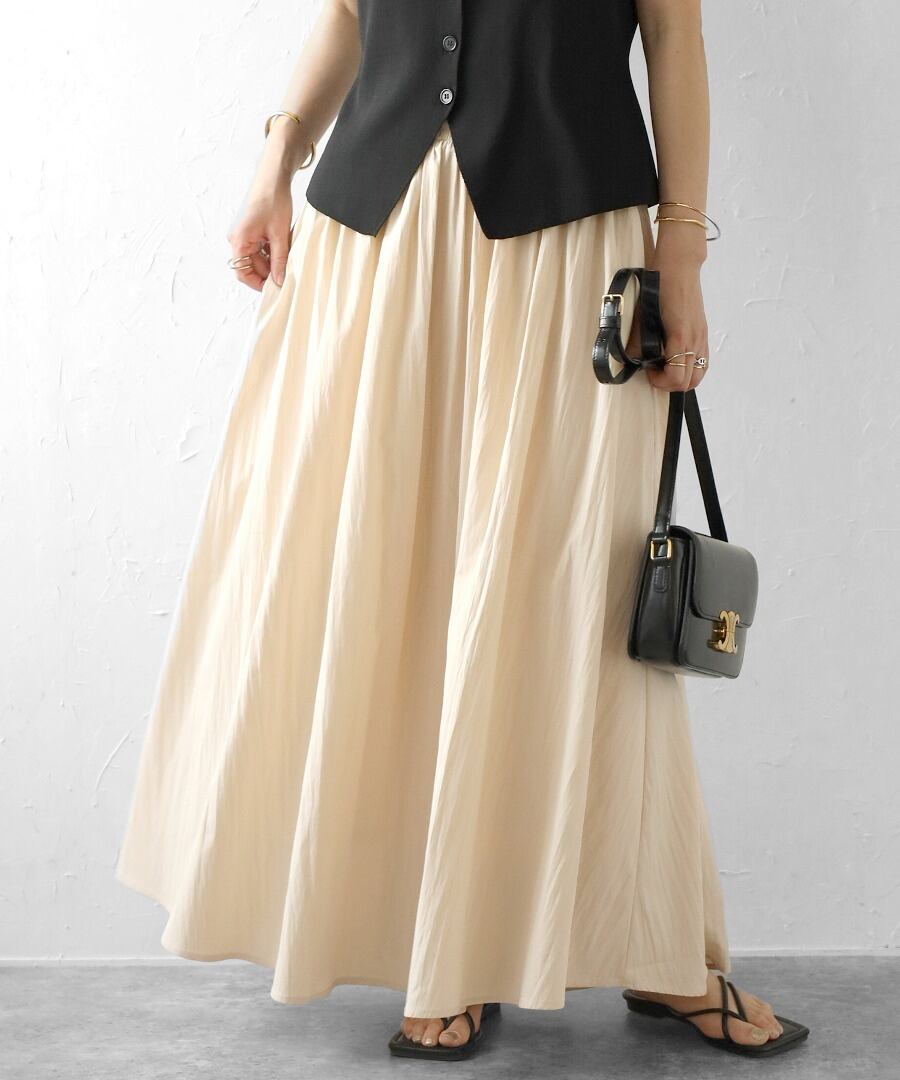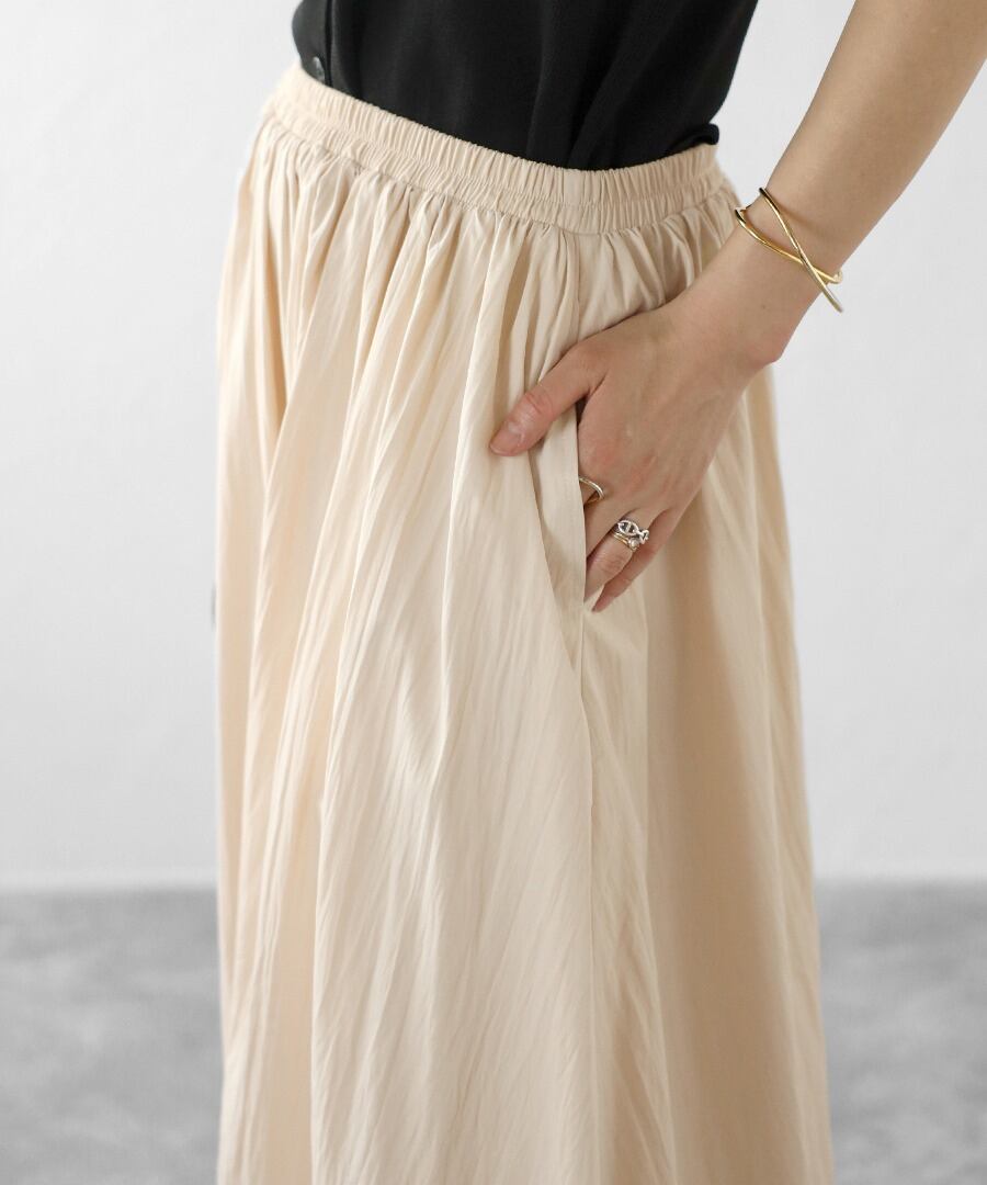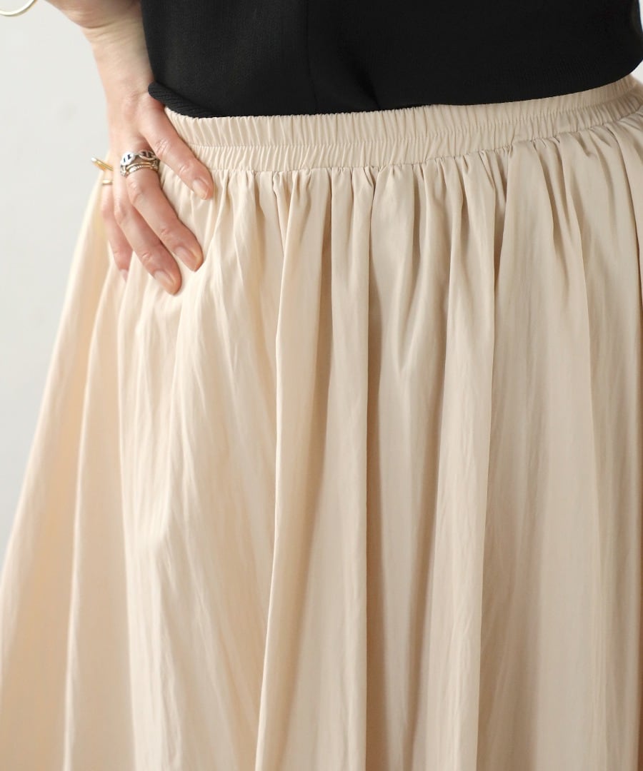 ハリ感のあるワッシャーナイロンがトレンドライクなギャザースカート。