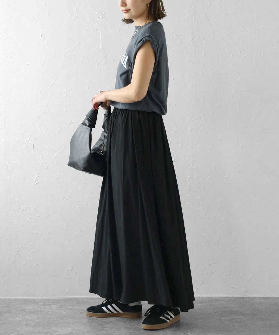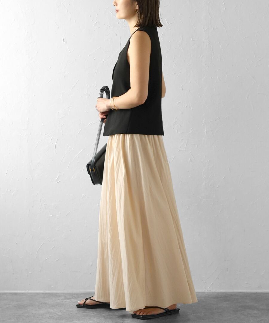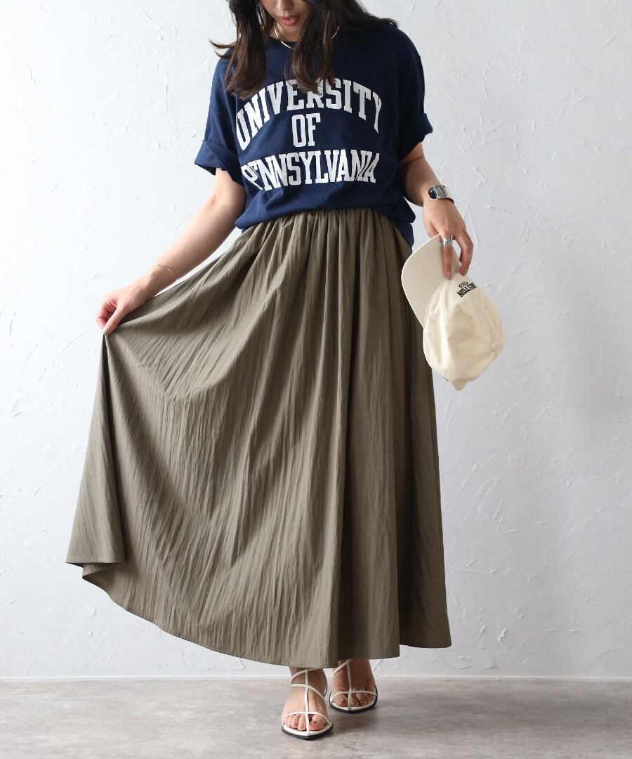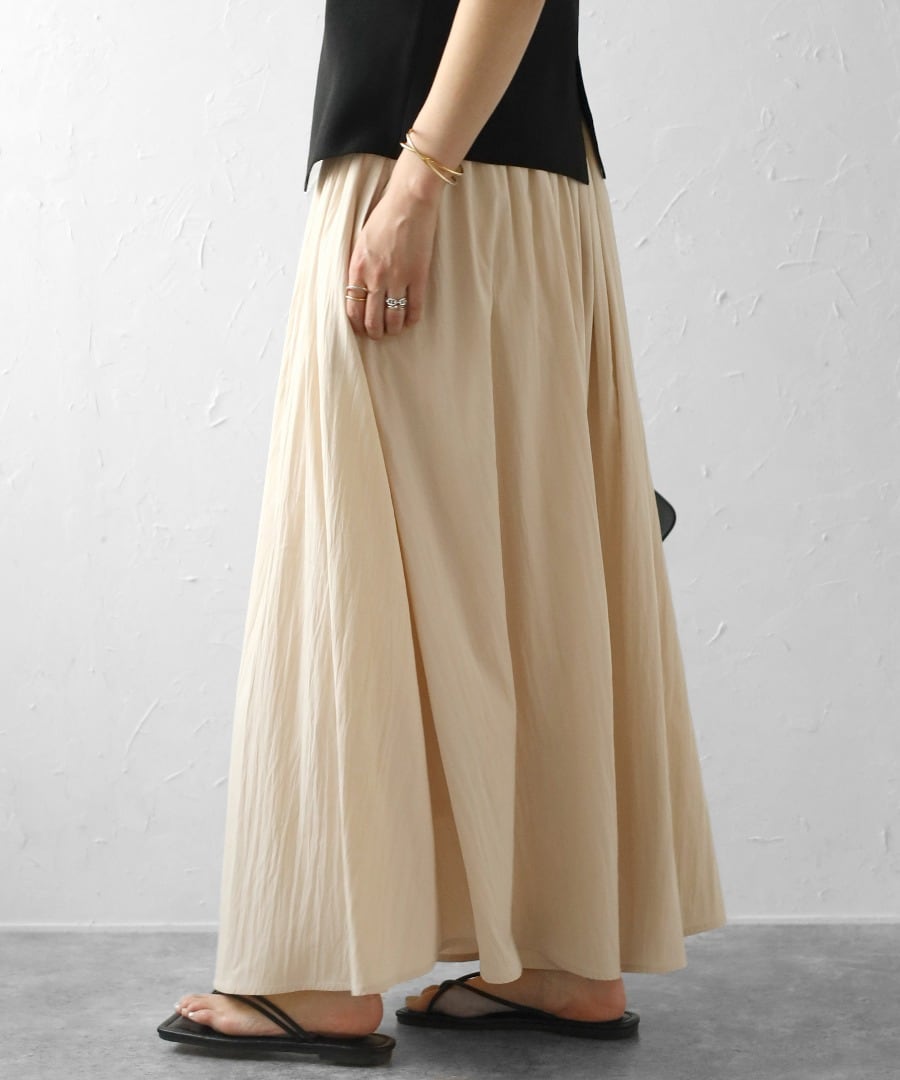 ハリ感のあるワッシャーナイロンがトレンドライクなギャザースカート。