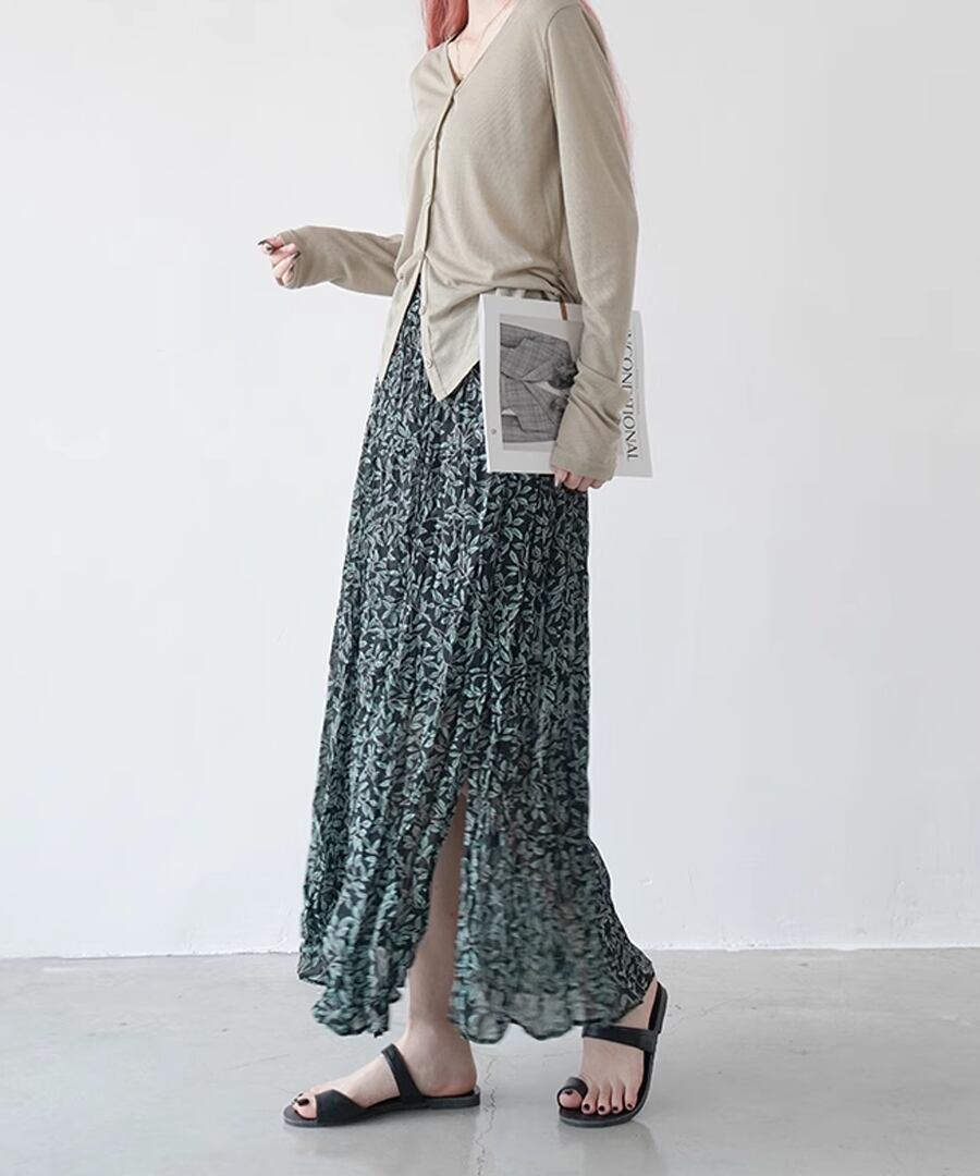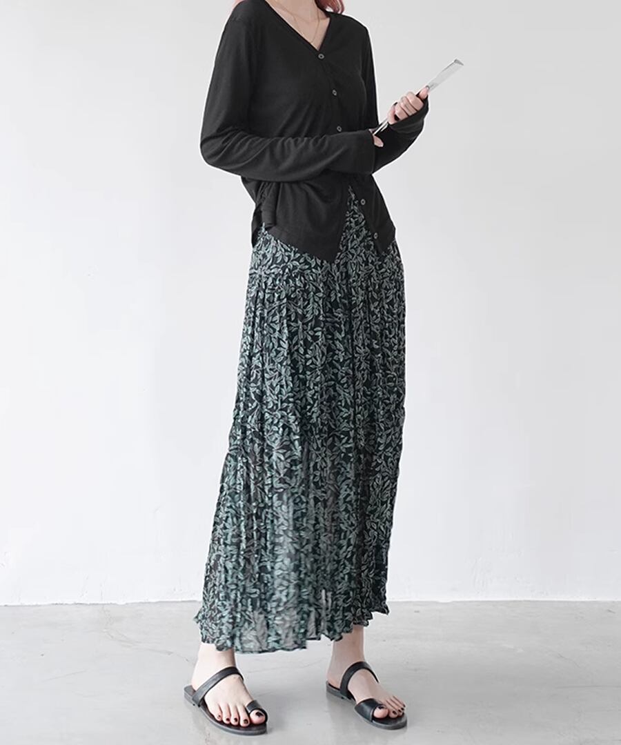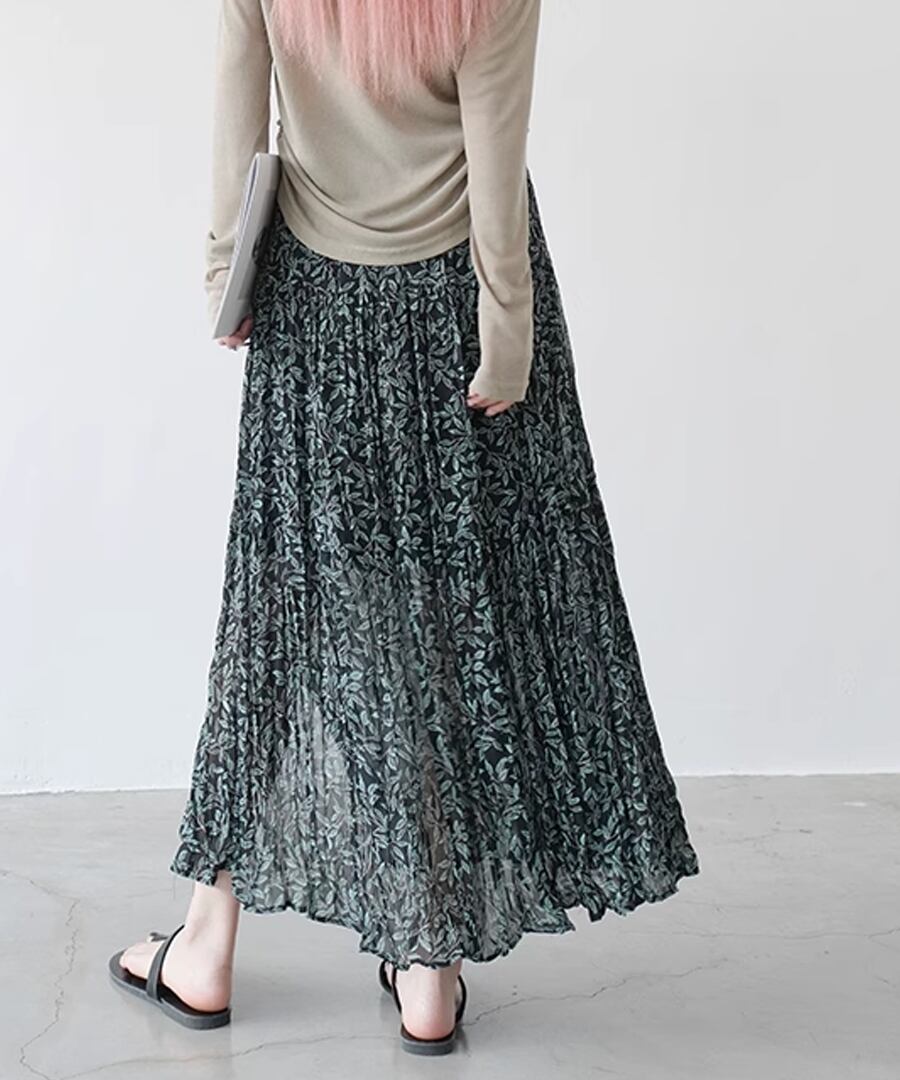 リーフ柄プリーツスカート【s-60355】