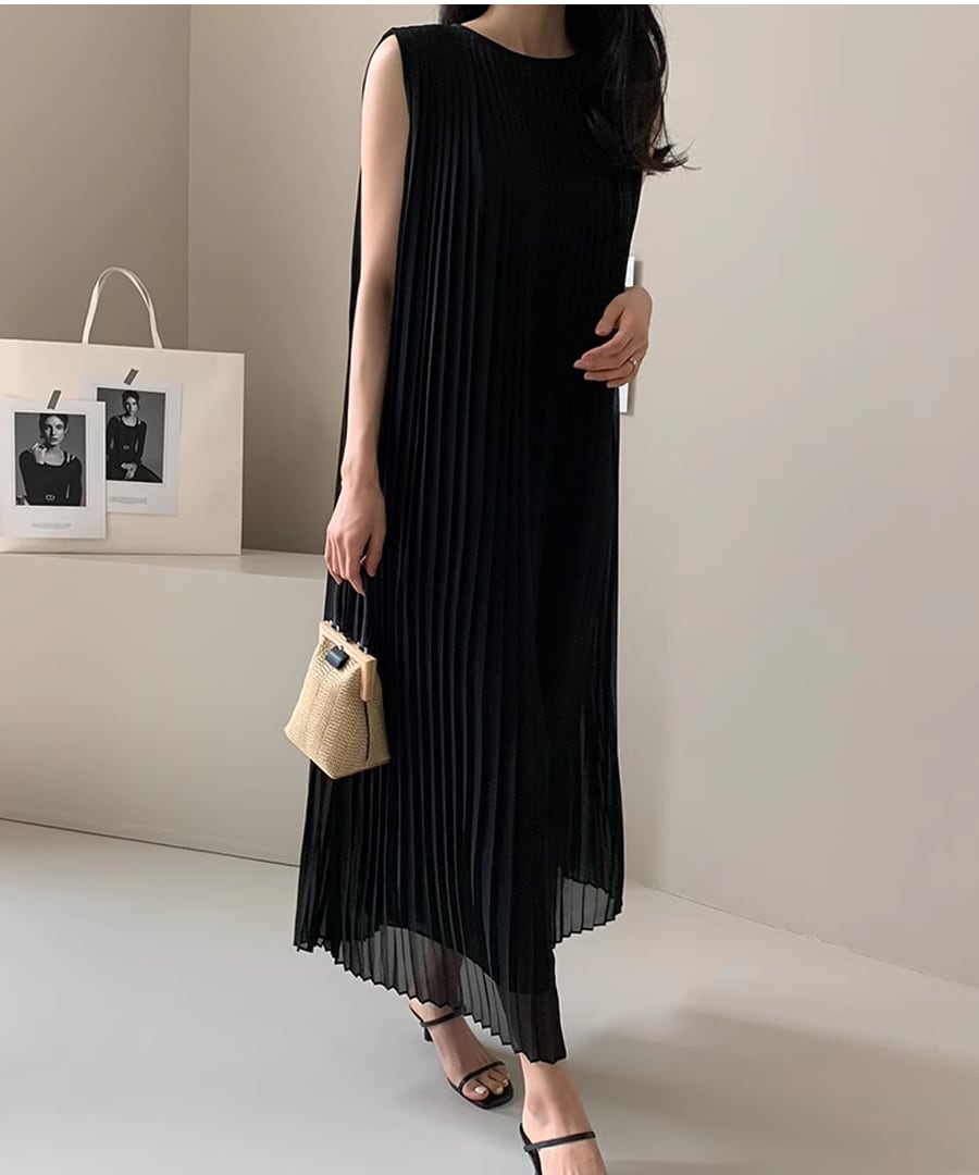 ラウンドネックとアコーディオンプリーツデザインが特徴です。