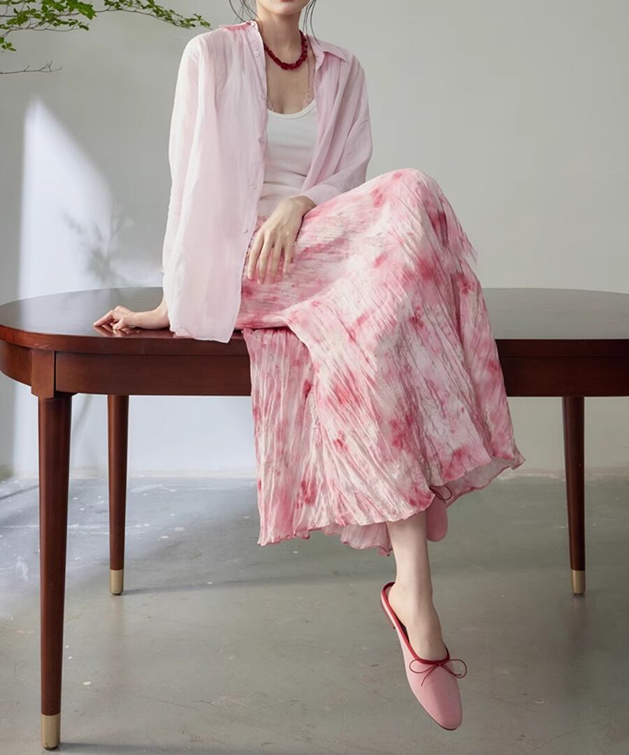軽やかなプリーツプリント生地。