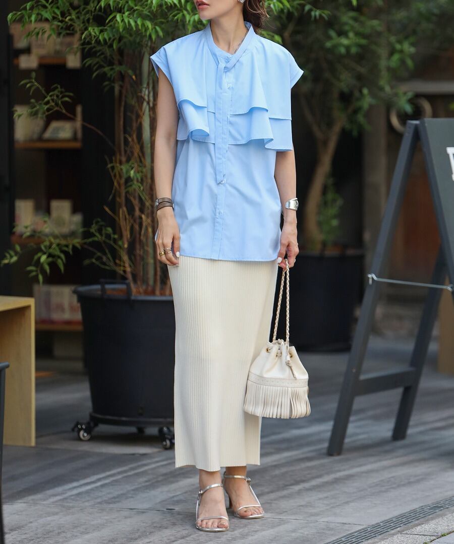 女性らしく上品なロング丈で、トレンドライクなキレイめコーデが完成。