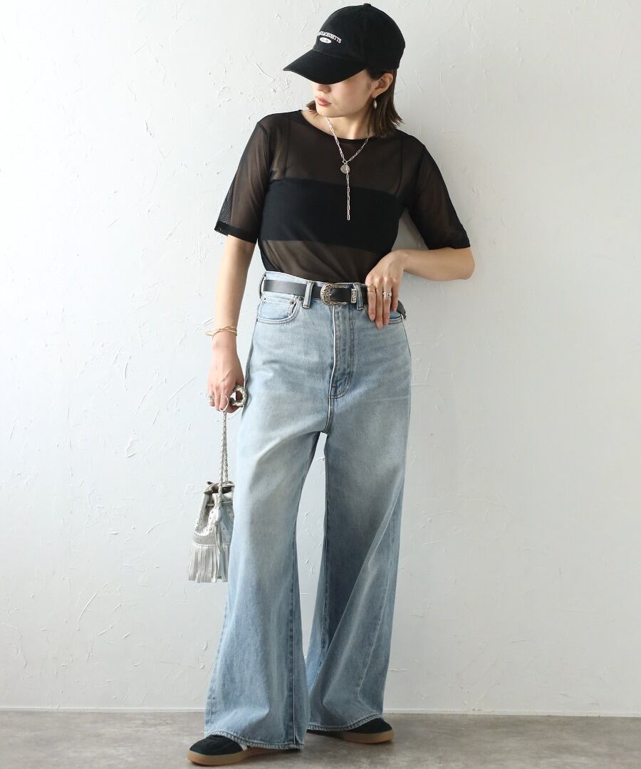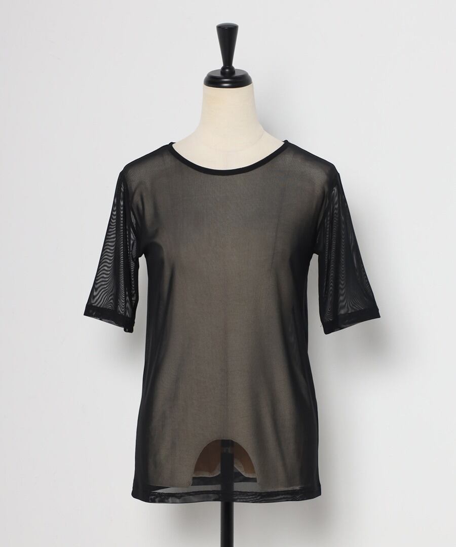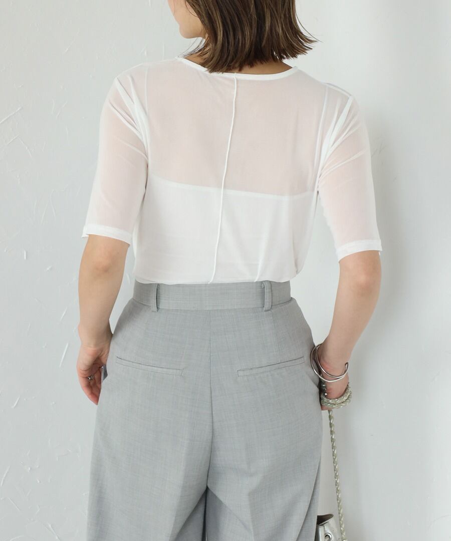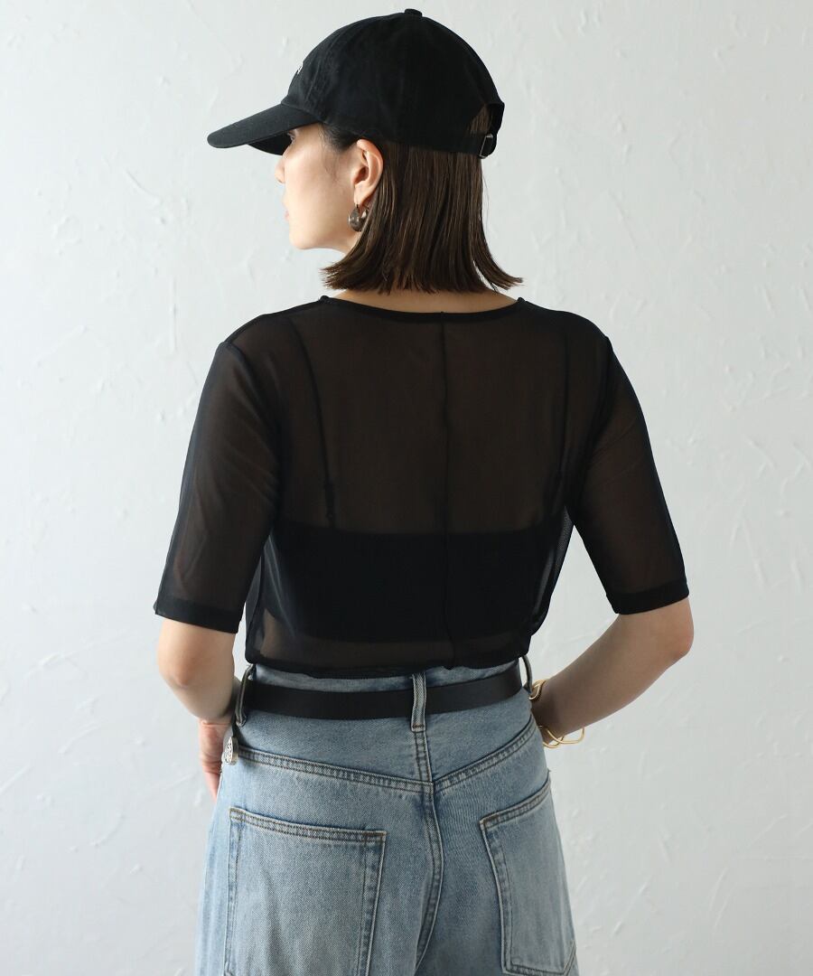 旬なレイヤードスタイルに重宝するクルーネックのシアーTシャツ。