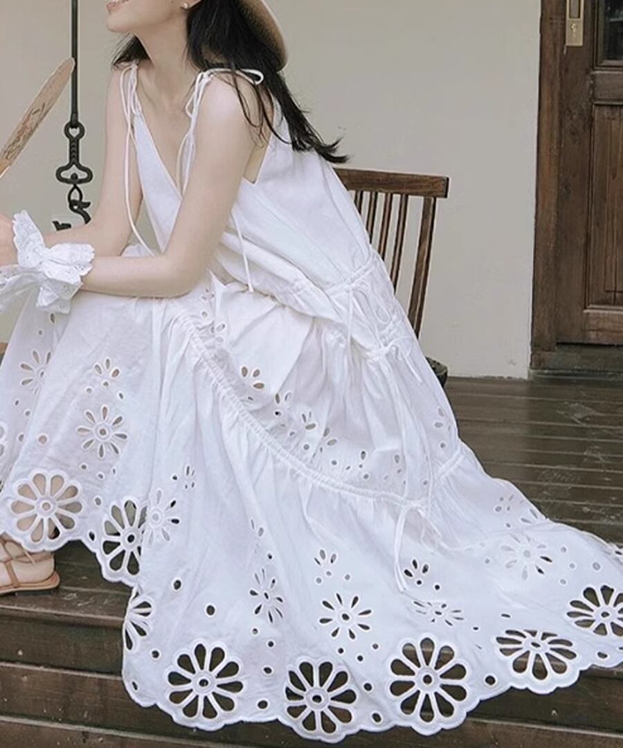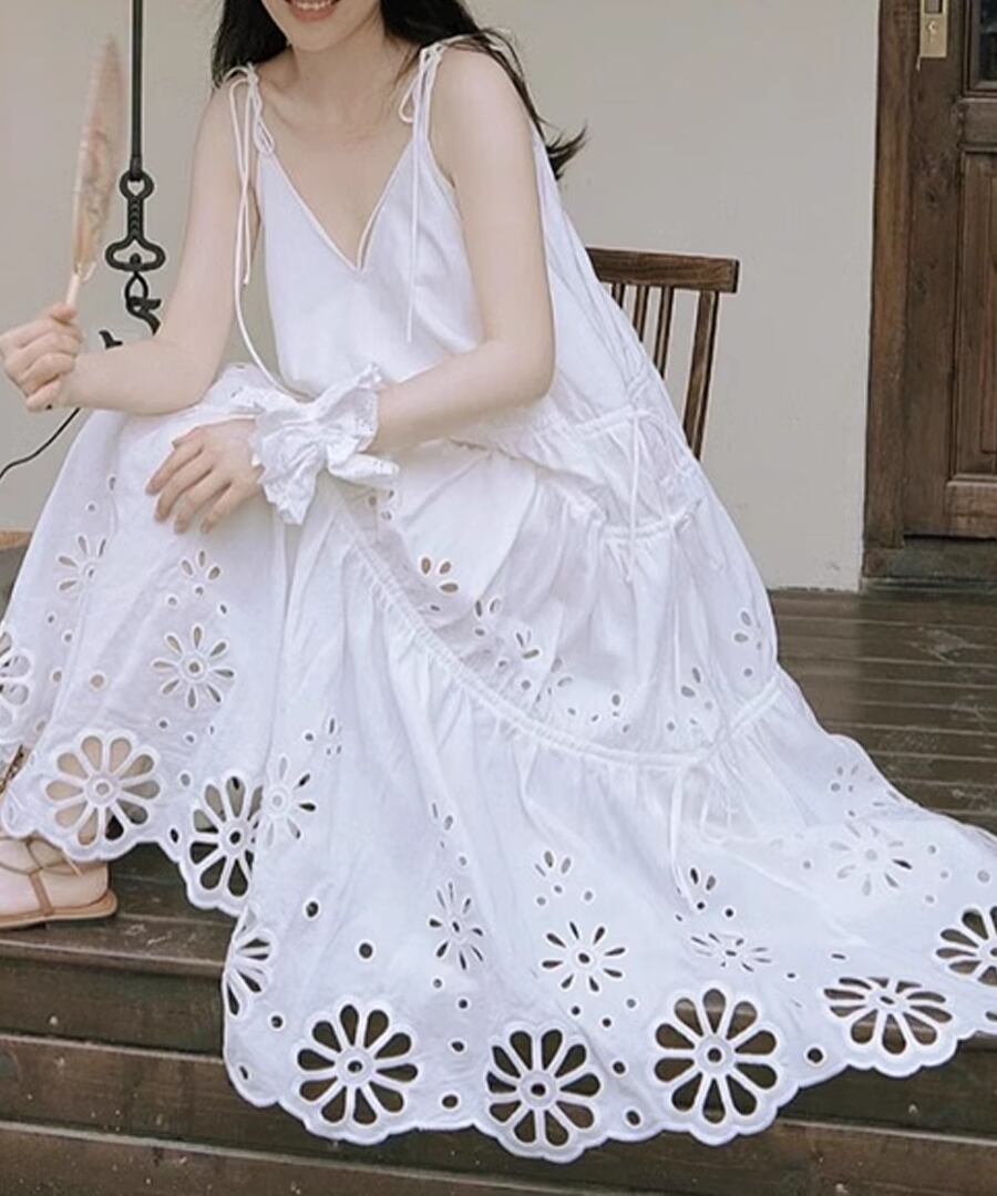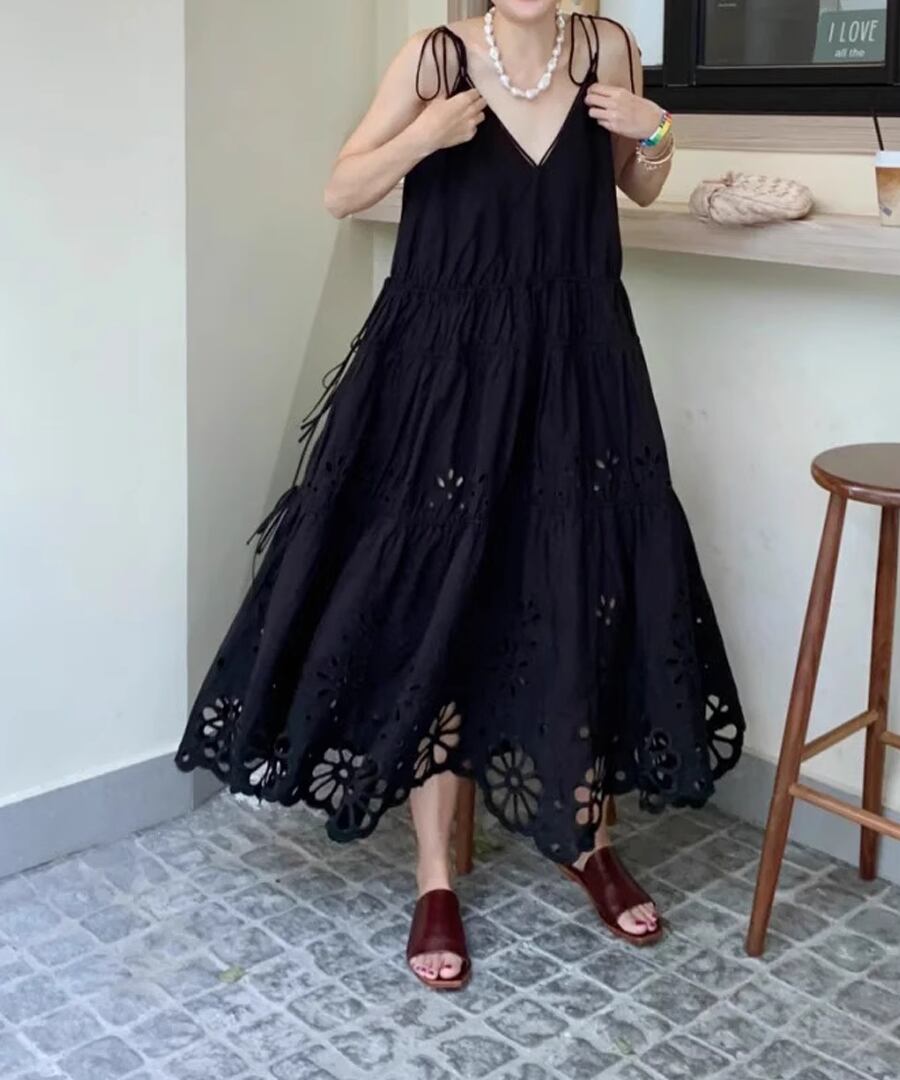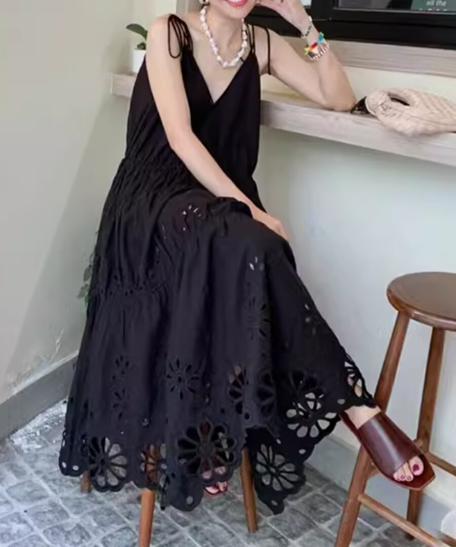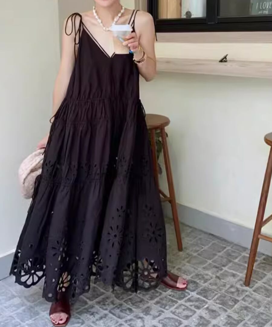 シンプルでありながらスタイリッシュな印象を与える、リゾートキャミワンピース。