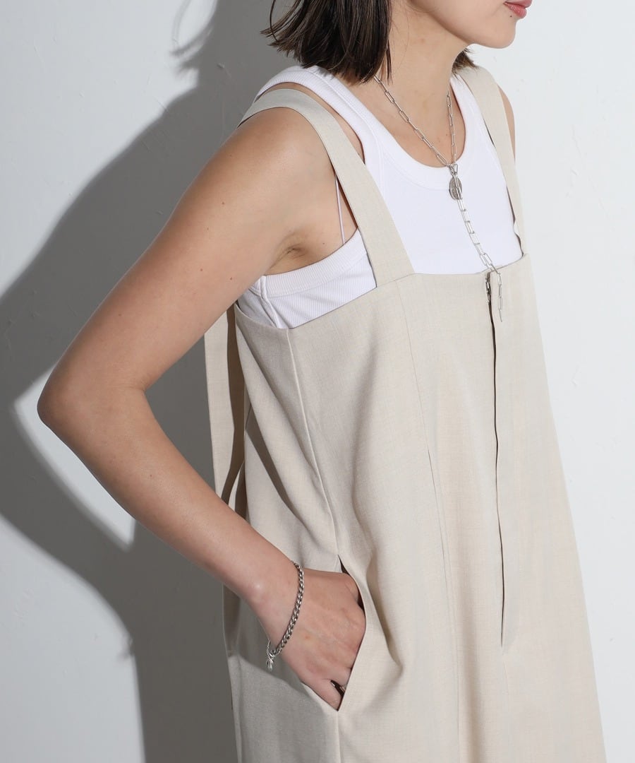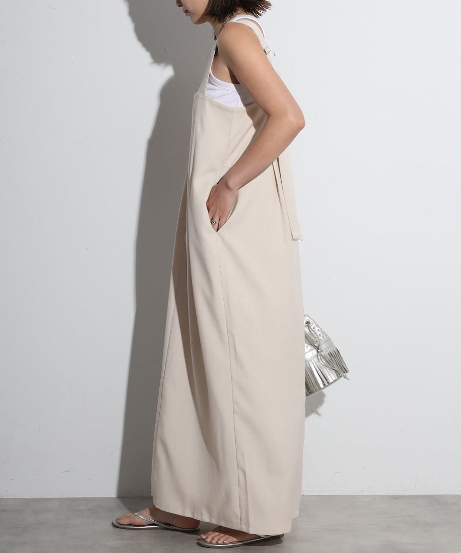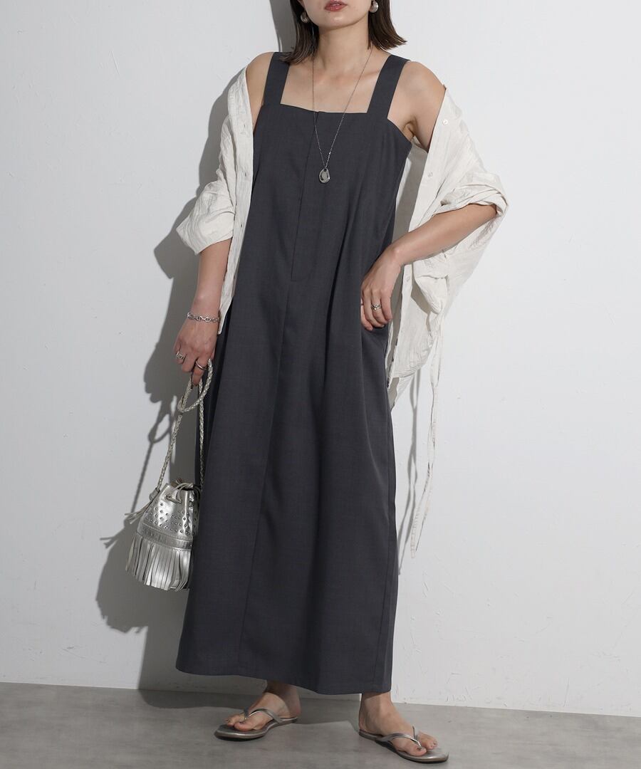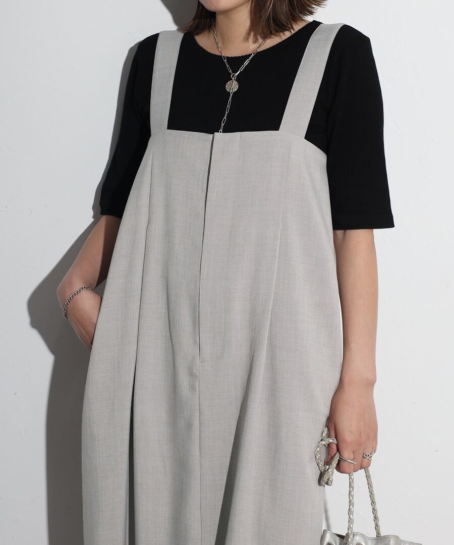 ハイウエストデザインで脚長効果抜群の、上品シルエットのジャンパースカート。