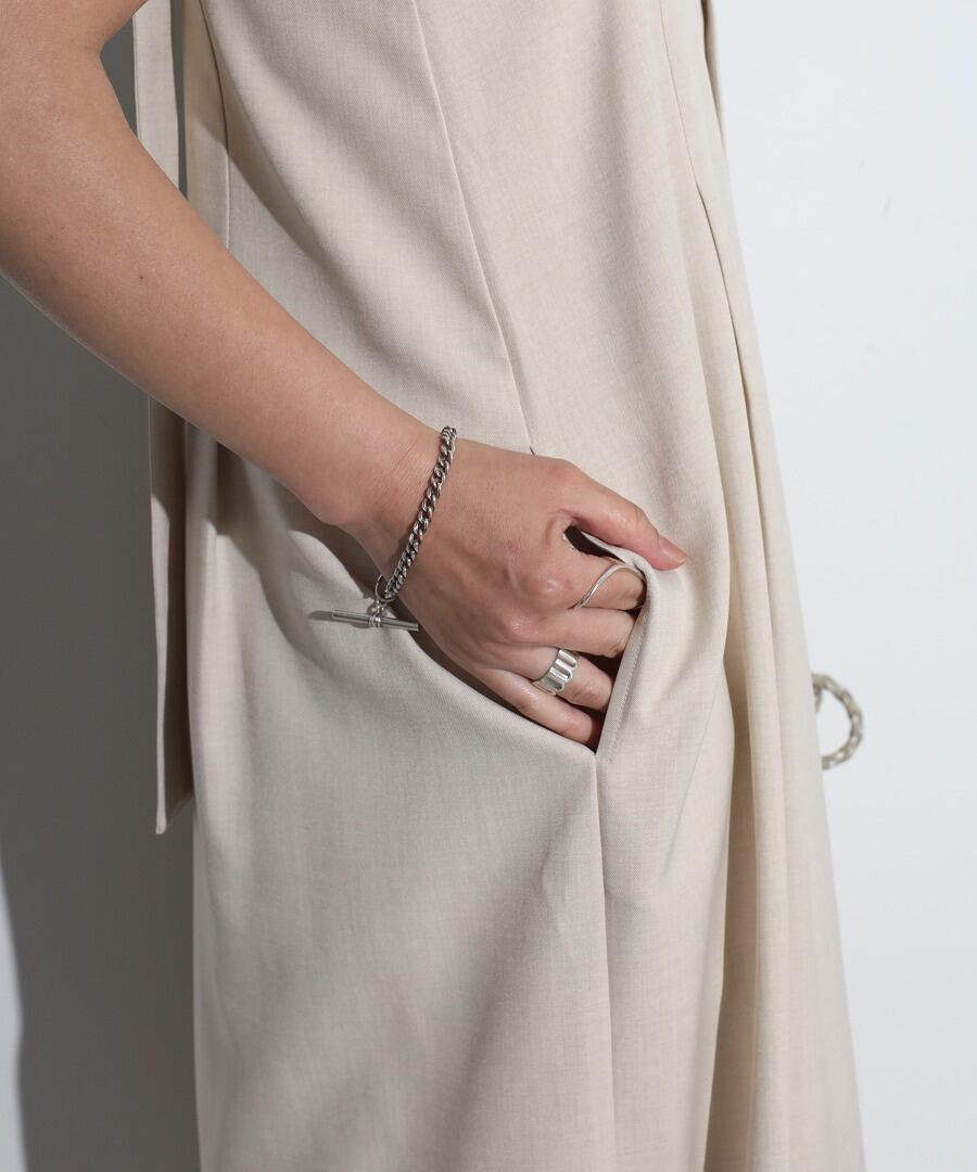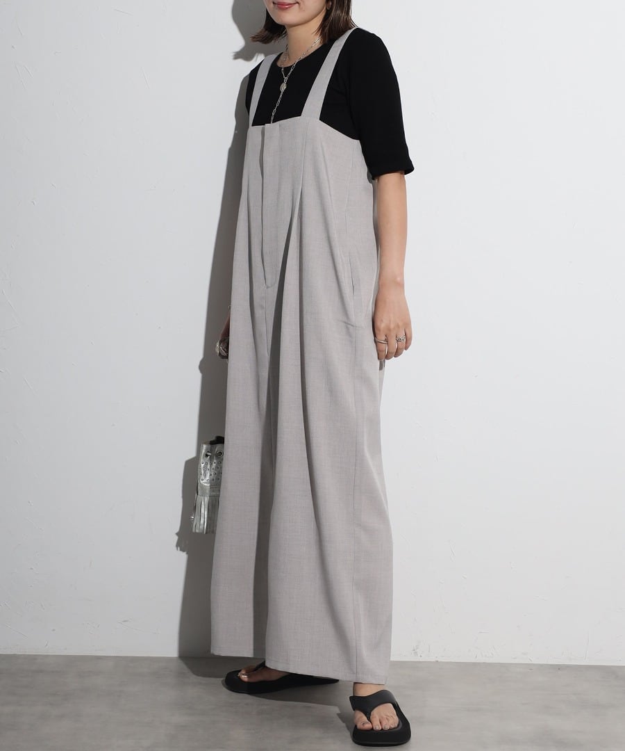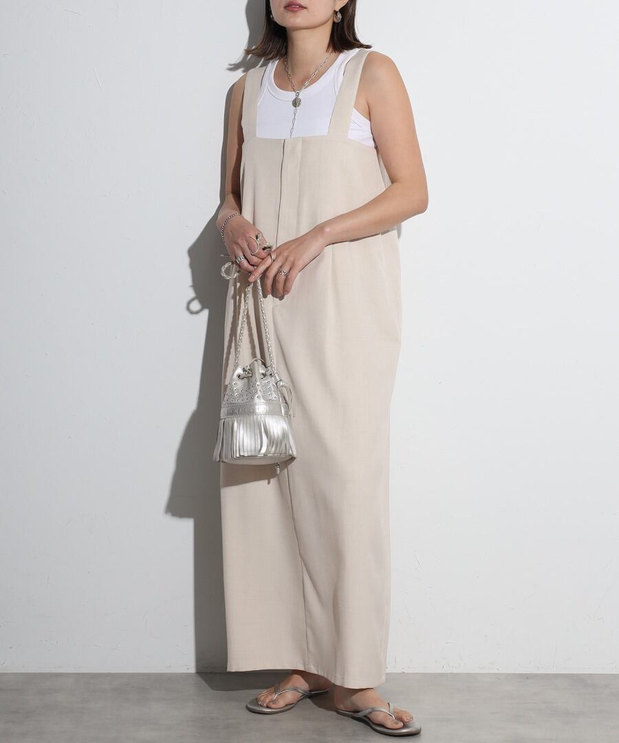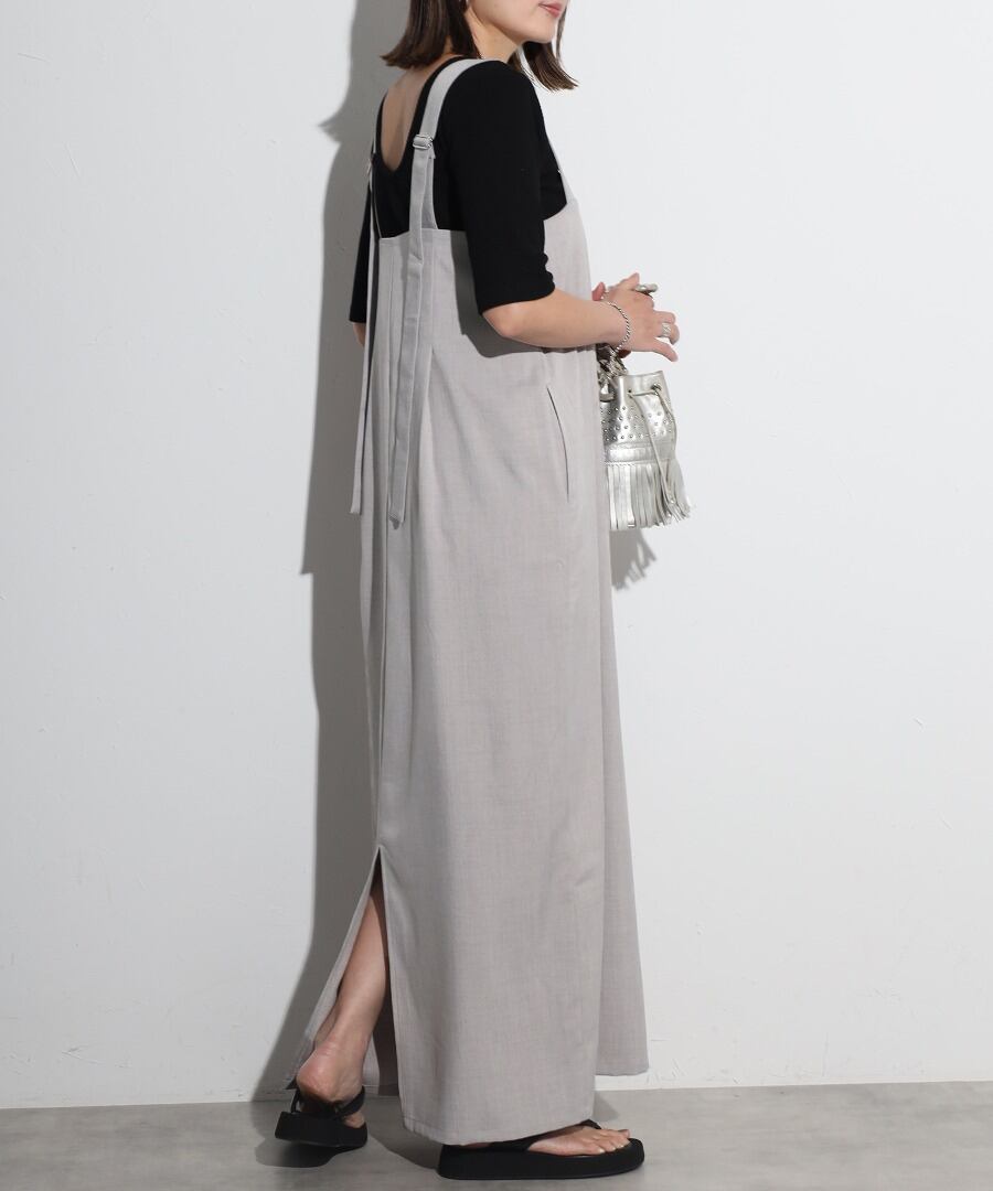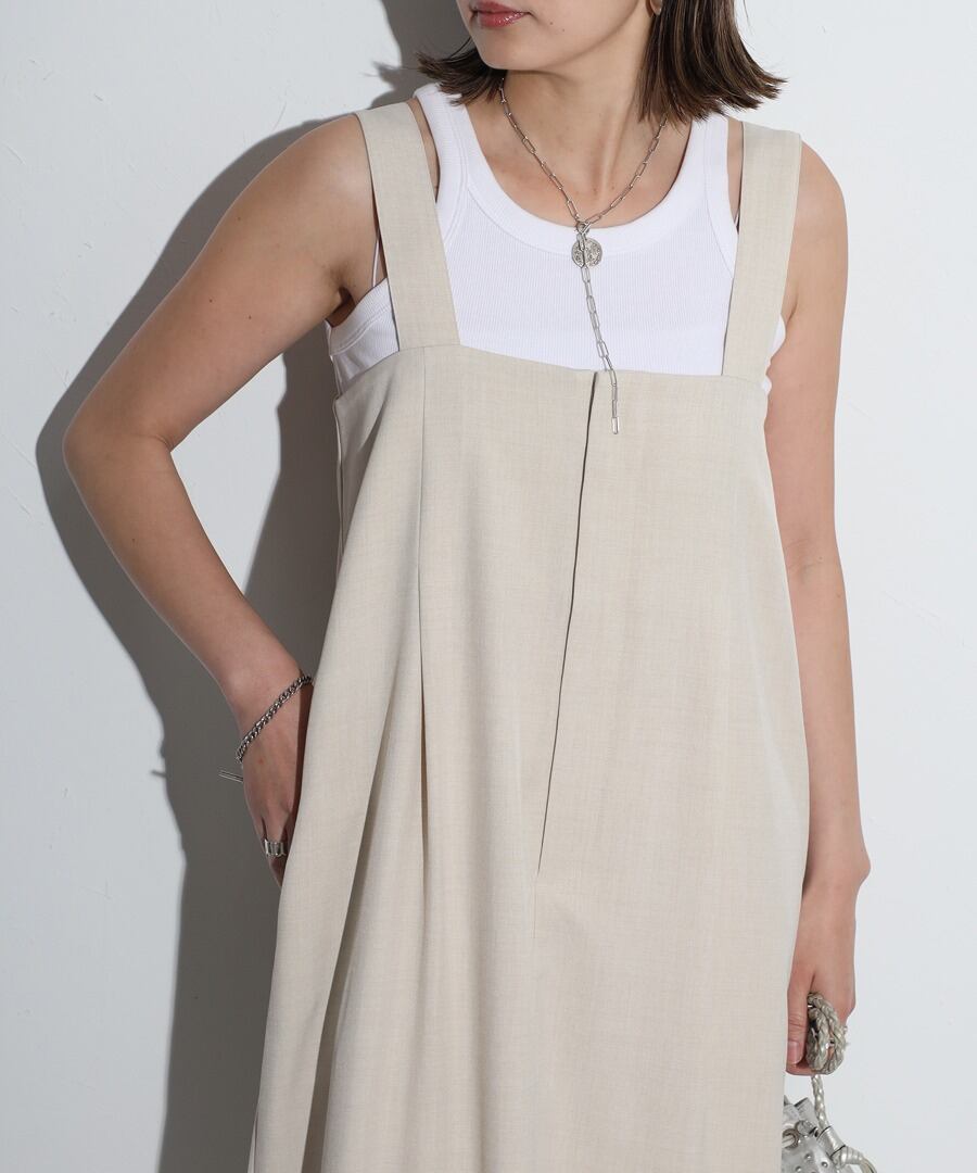 ハイウエストデザインで脚長効果抜群の、上品シルエットのジャンパースカート。