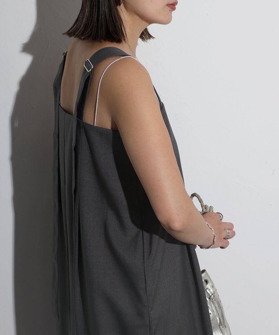 アジャスタブルなショルダーストラップで、お好みに合わせて丈感を調整可能。