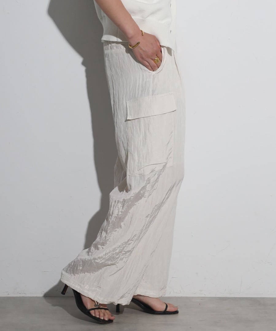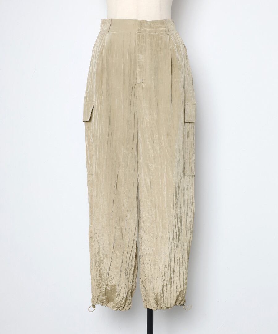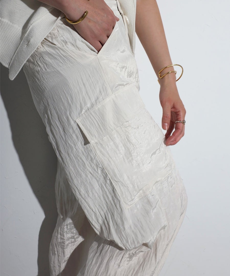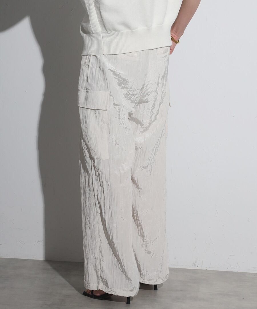 ワッシャー素材とエレガントな光沢感が魅力のカーゴパンツ