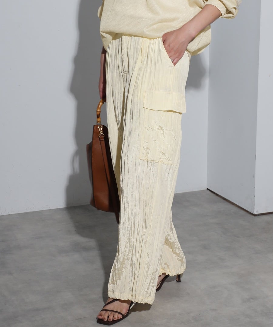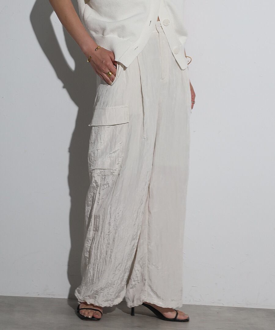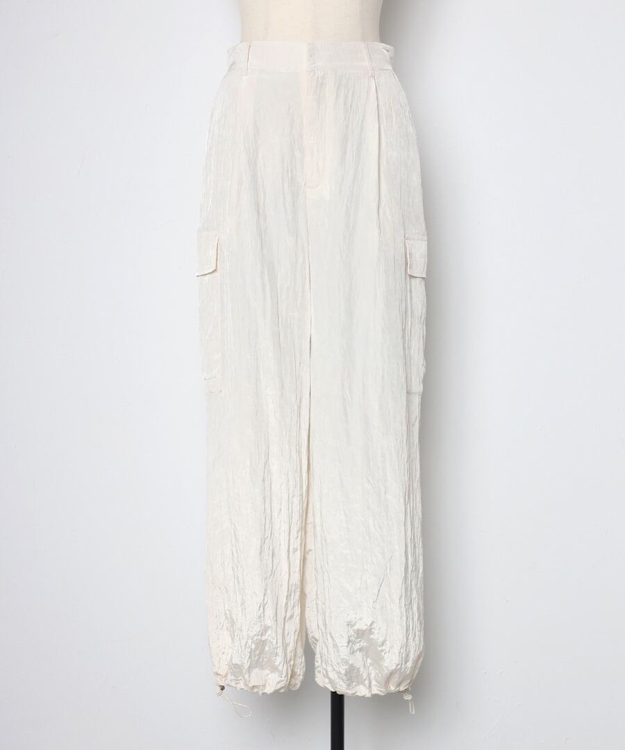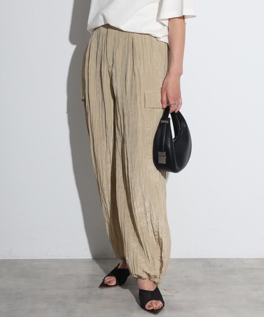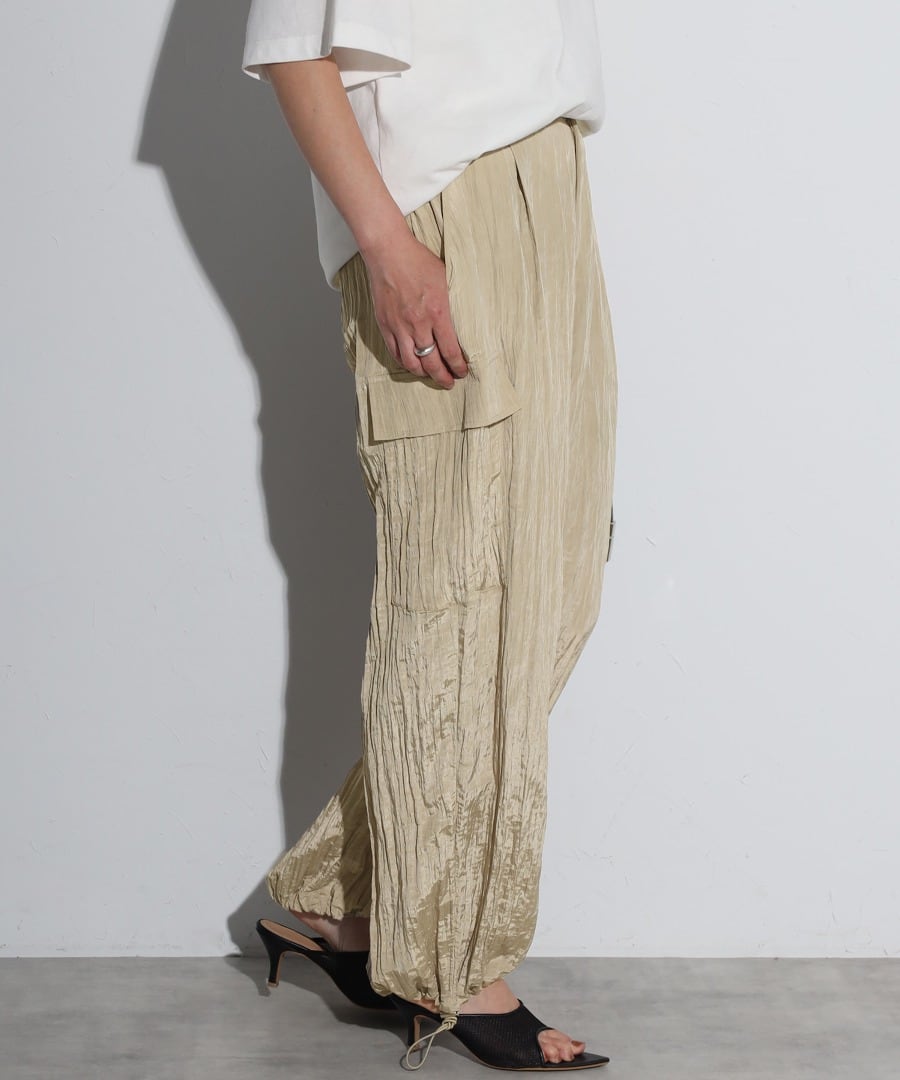 ワッシャー素材とエレガントな光沢感が魅力のカーゴパンツ