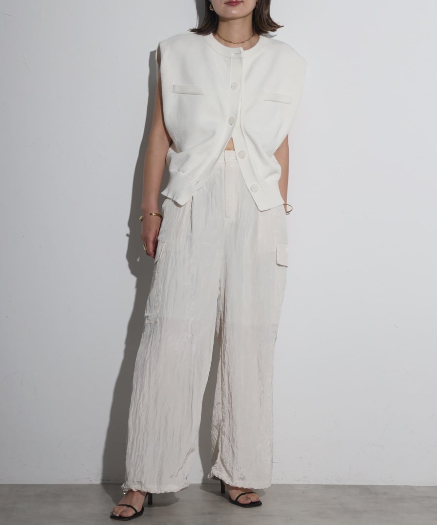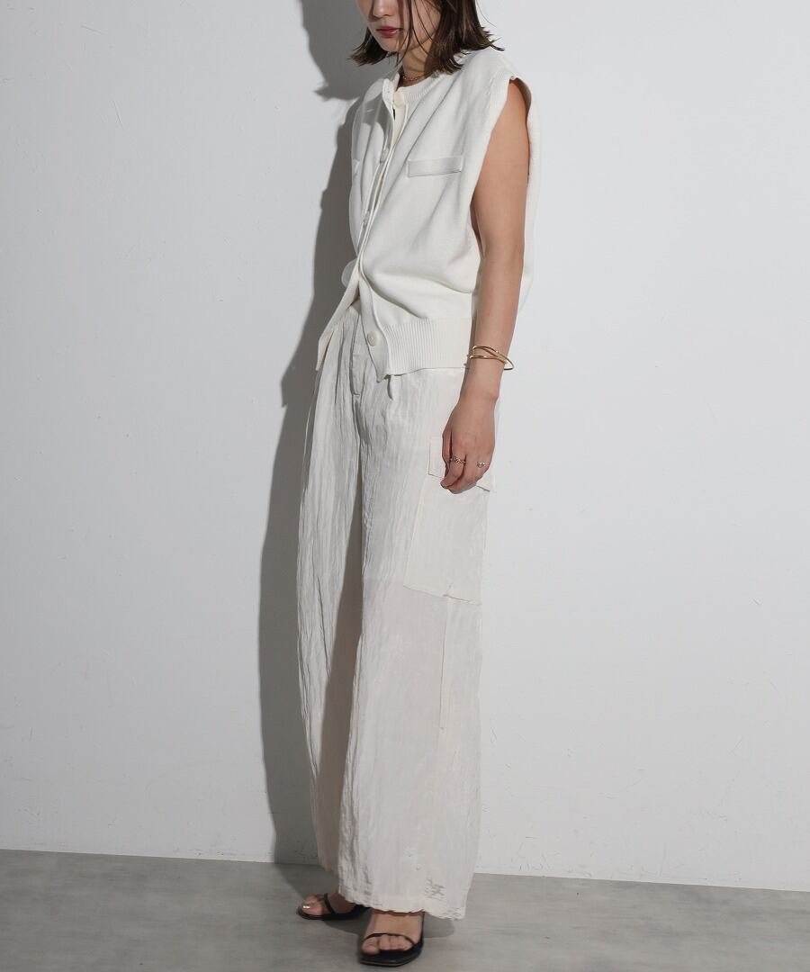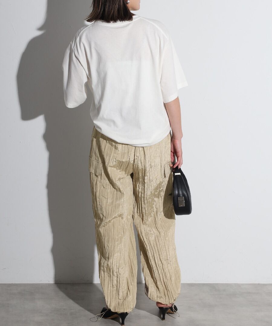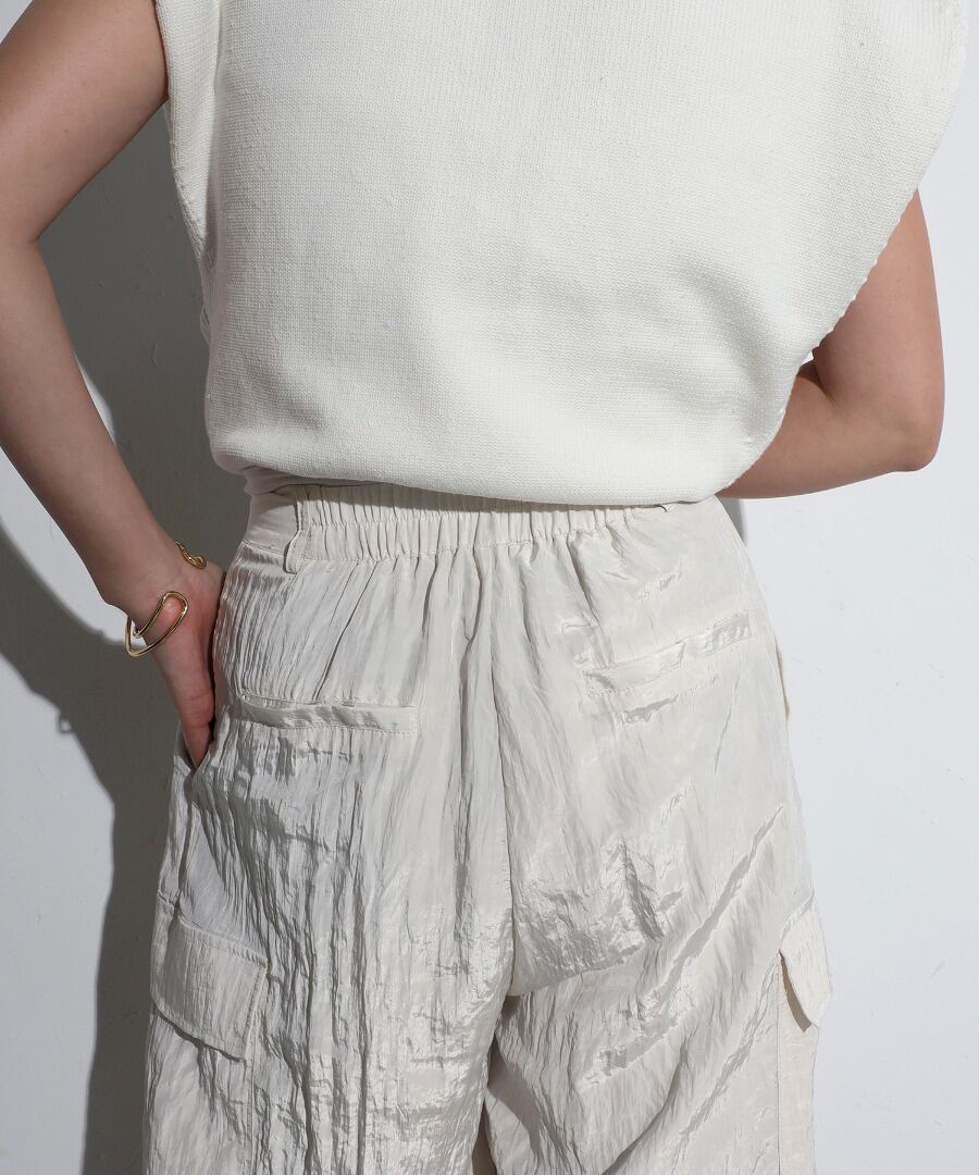 ワッシャー素材とエレガントな光沢感が魅力のカーゴパンツ