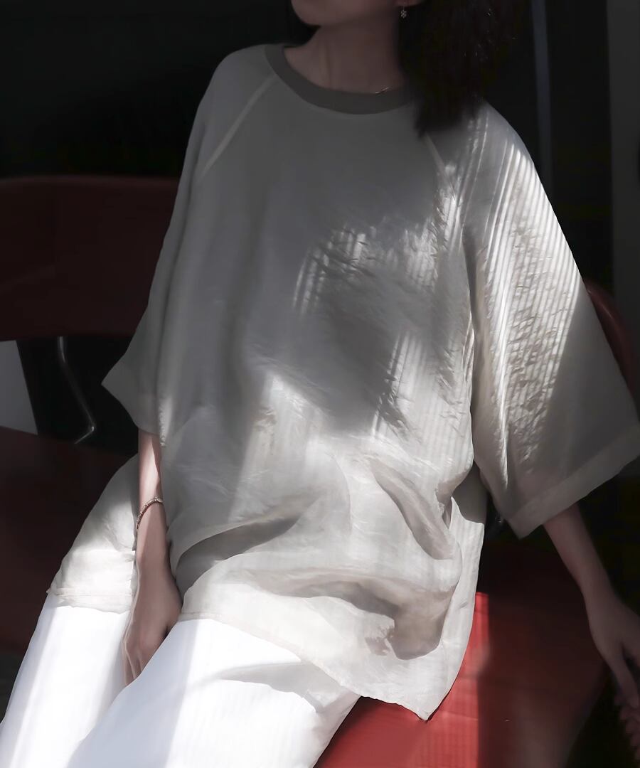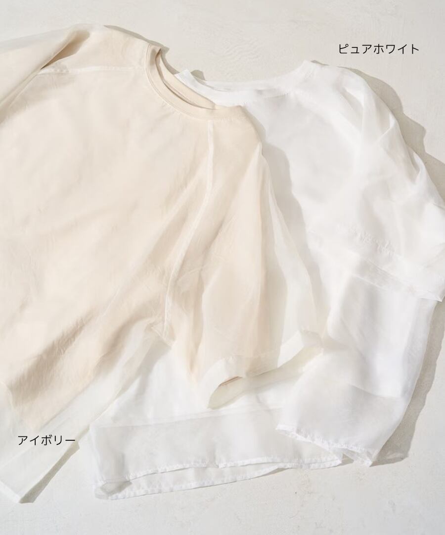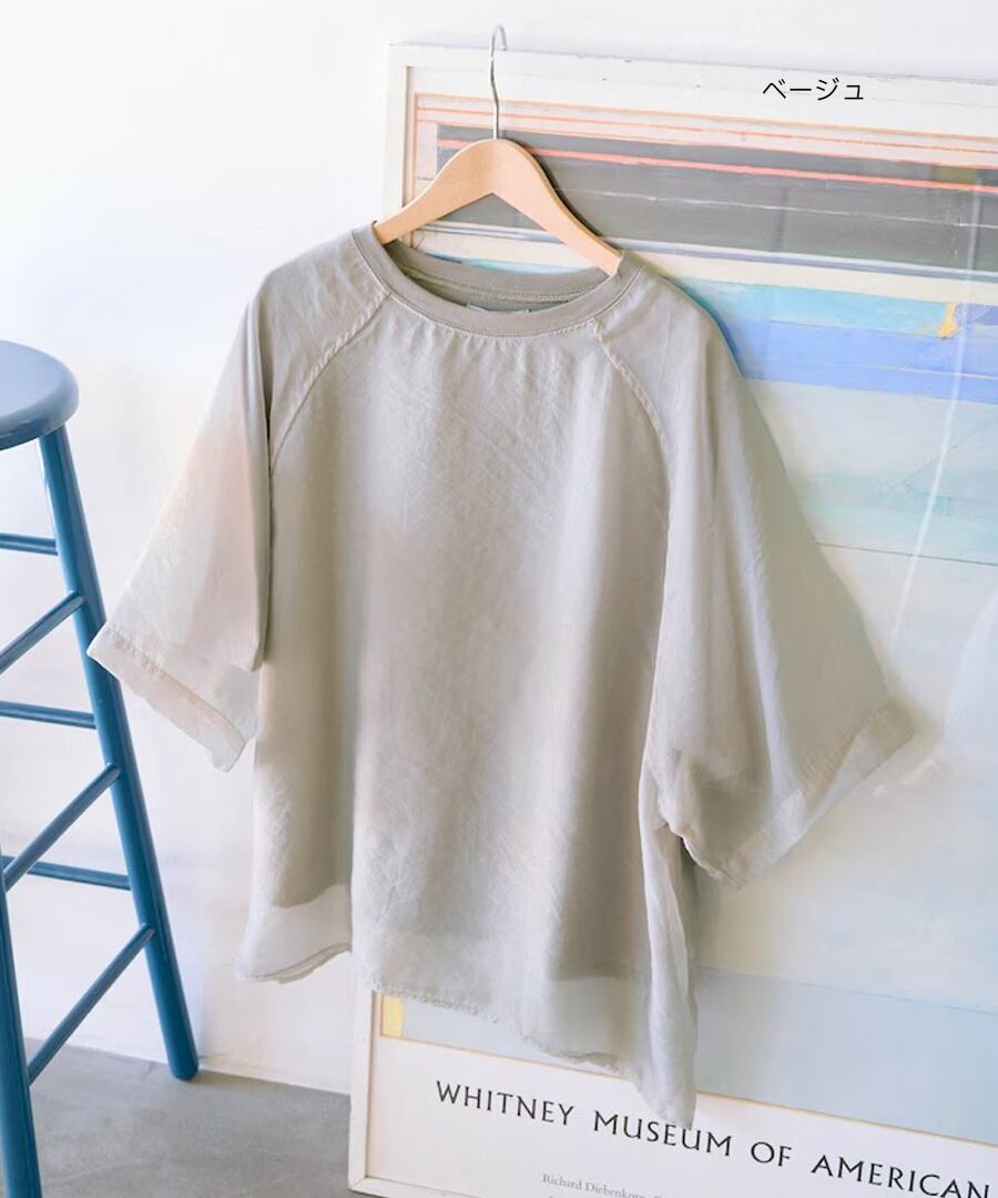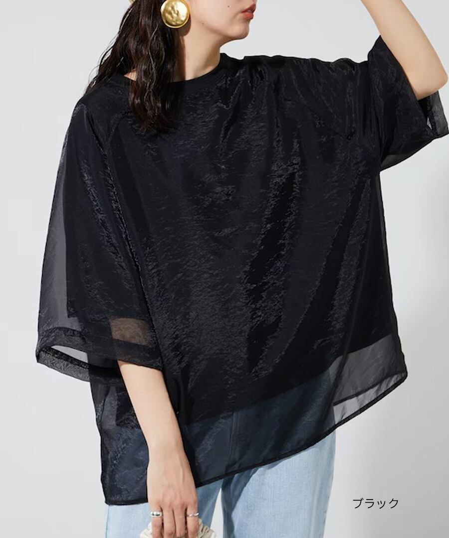 軽やかなシアー素材とTシャツを掛け合わせた、トレンド満載のレイヤード風デザイン。