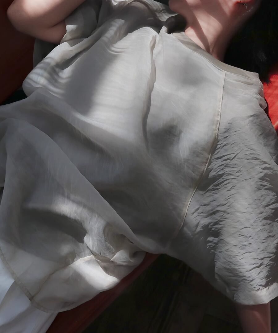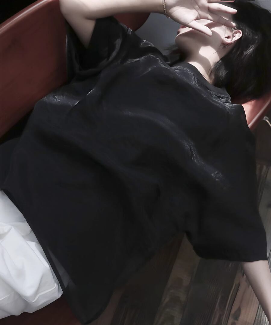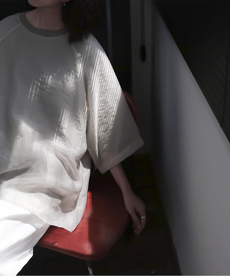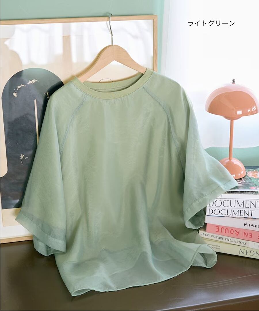 軽やかなシアー素材とTシャツを掛け合わせた、トレンド満載のレイヤード風デザイン。