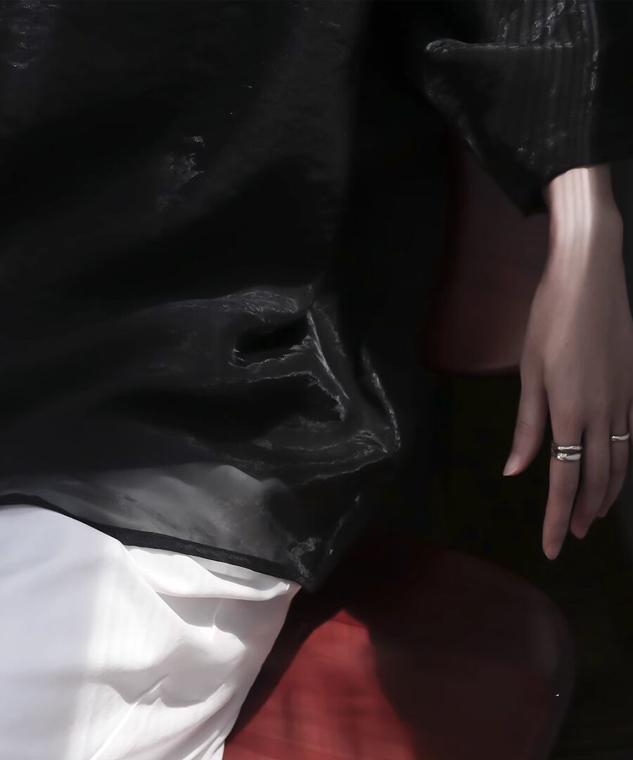 シンプルながらも存在感のあるシルエットは、重ね着スタイルを楽しむのにぴったりです。