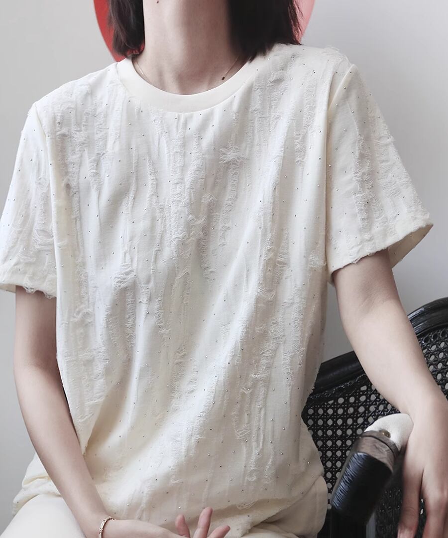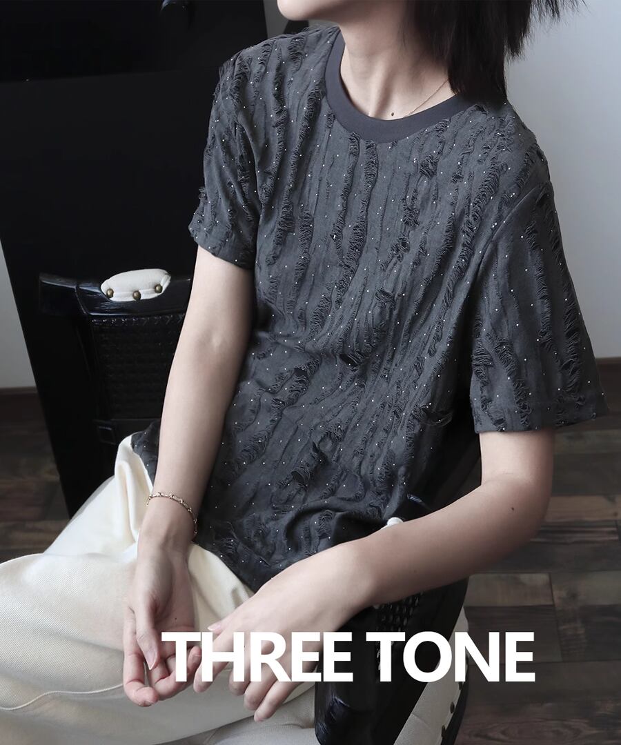 ラインストーン◆ラウンドネックトップス【t-11032】