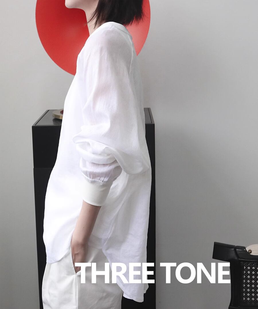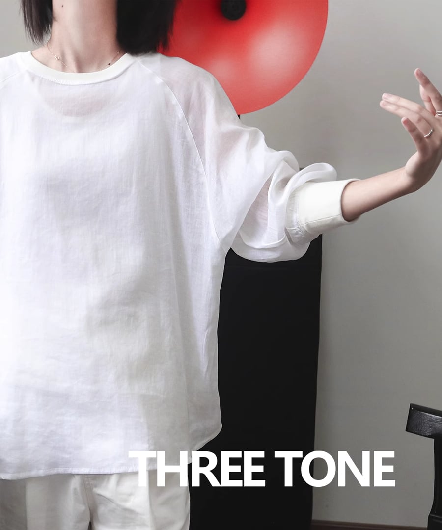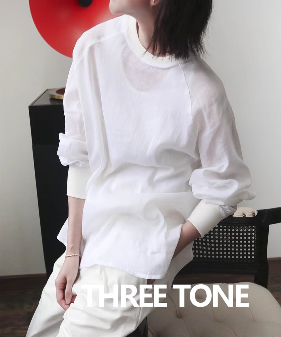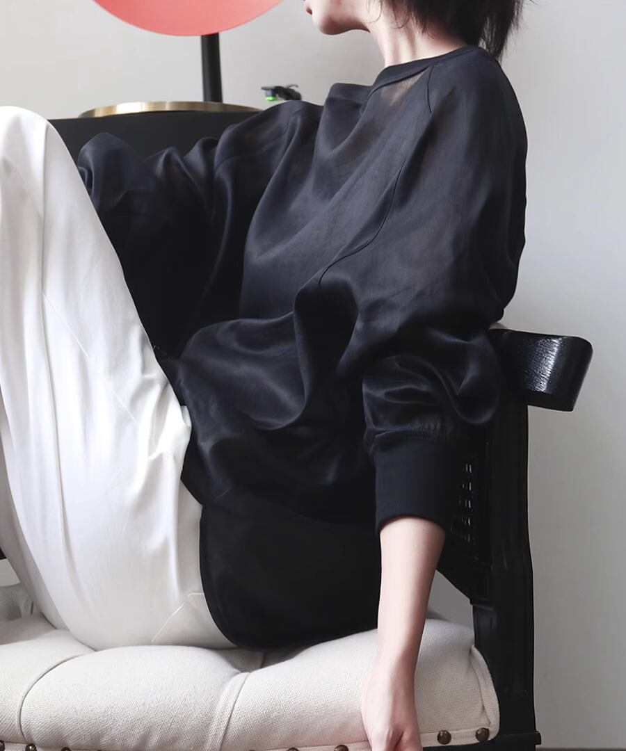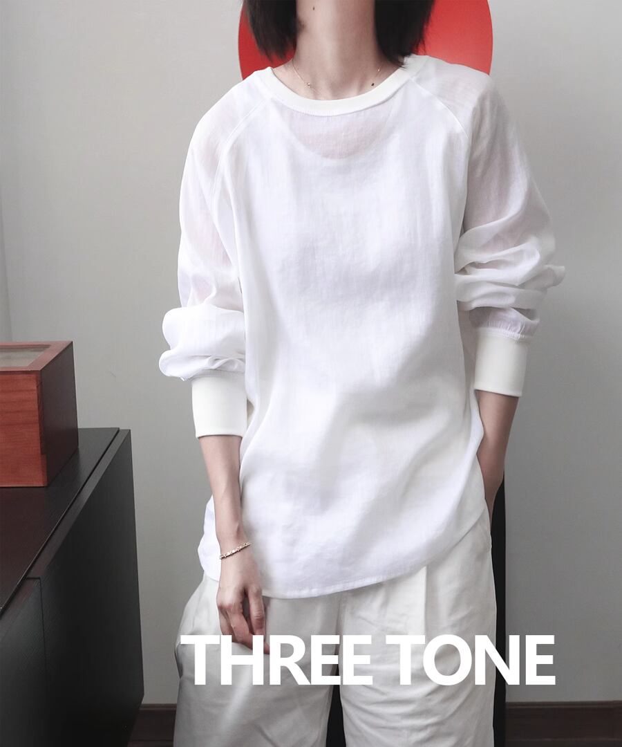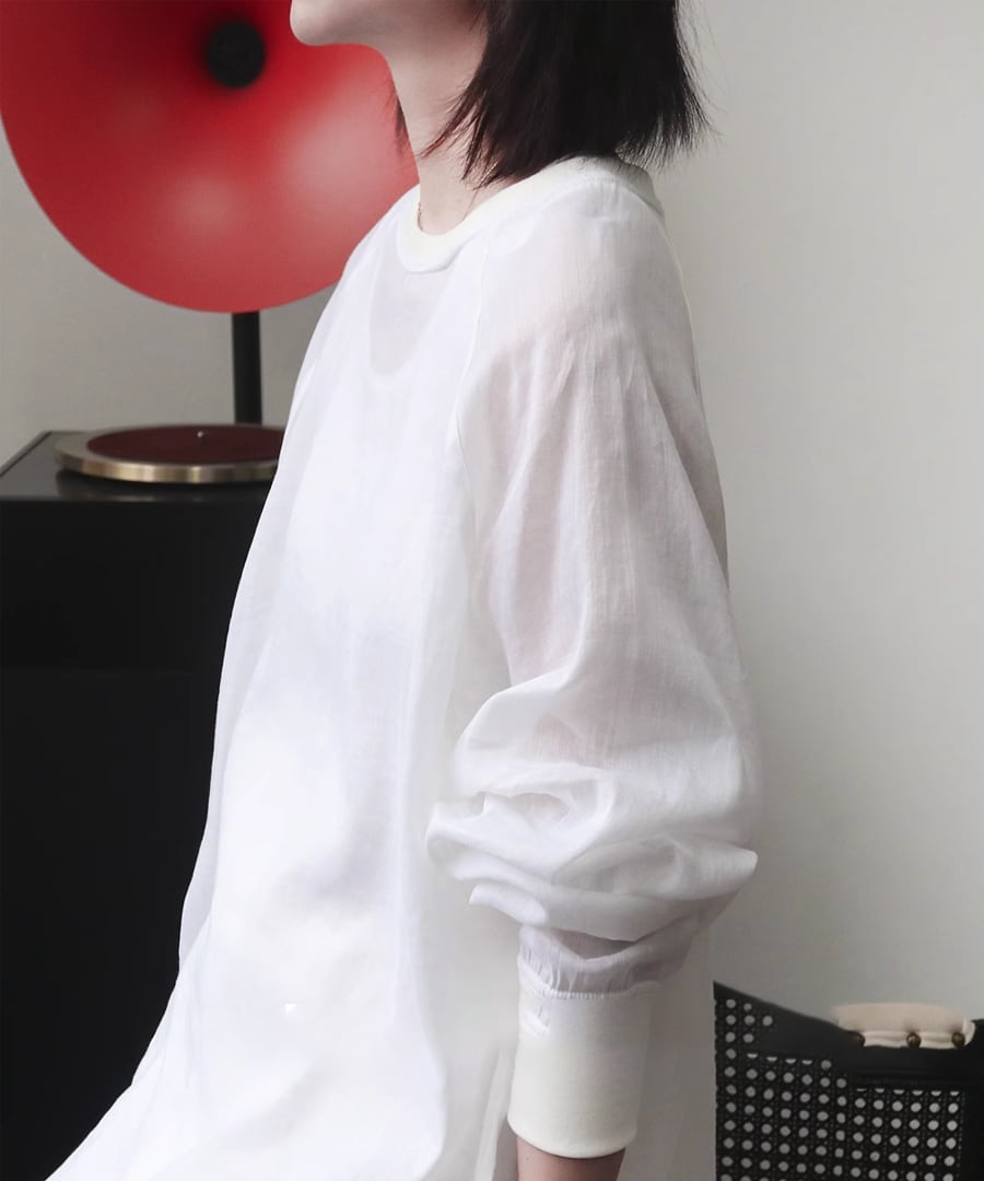 ラミー素材を使用した、ラウンドネックのシアートップス。