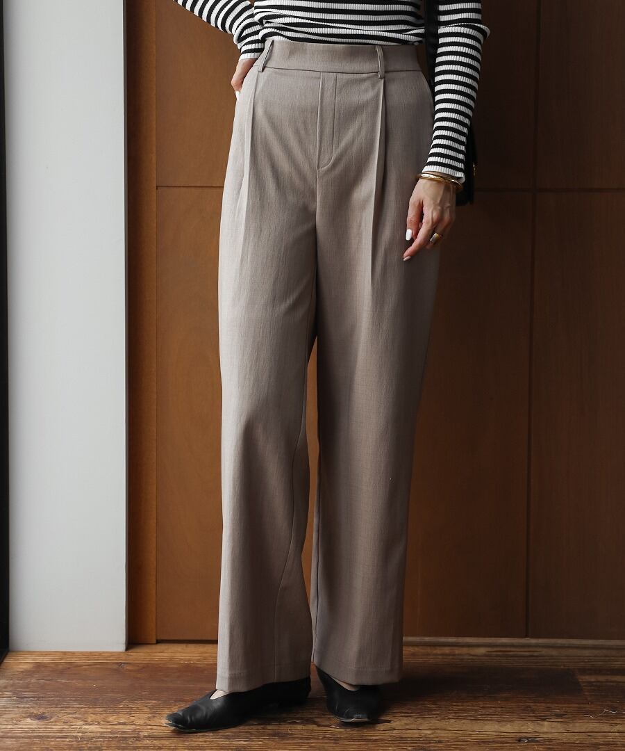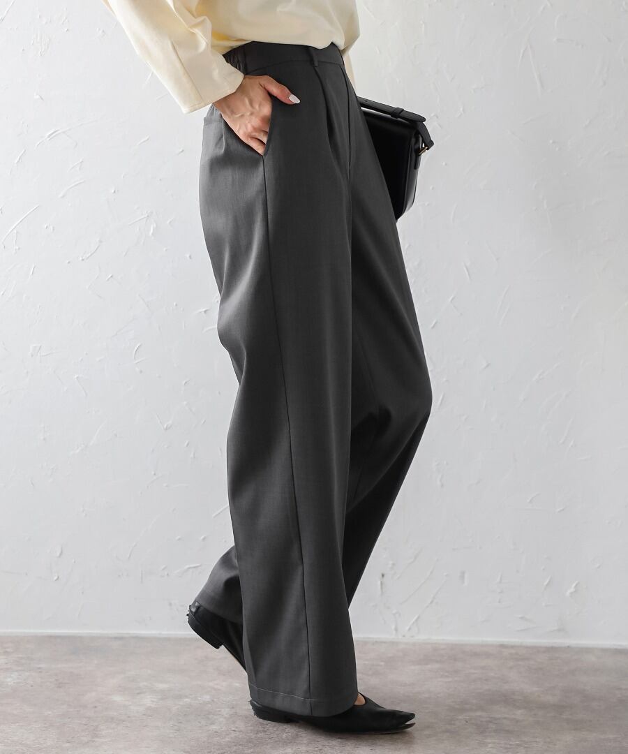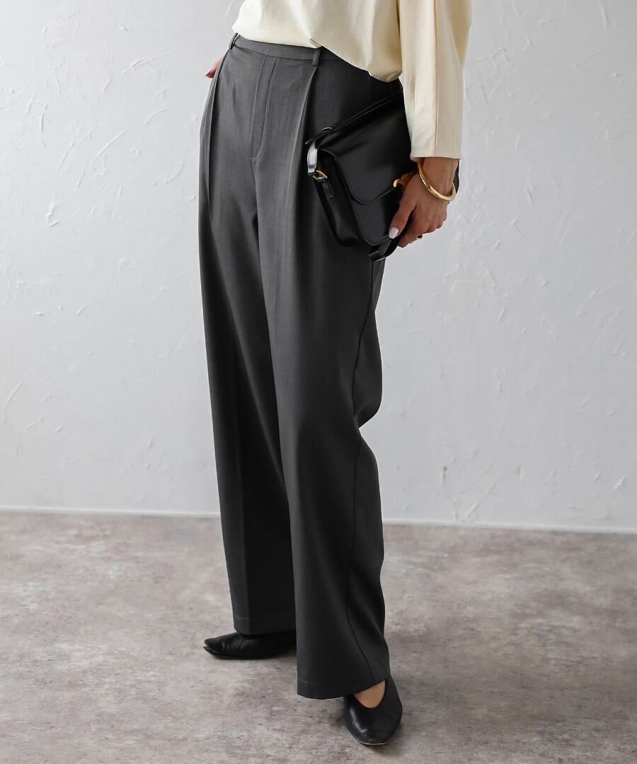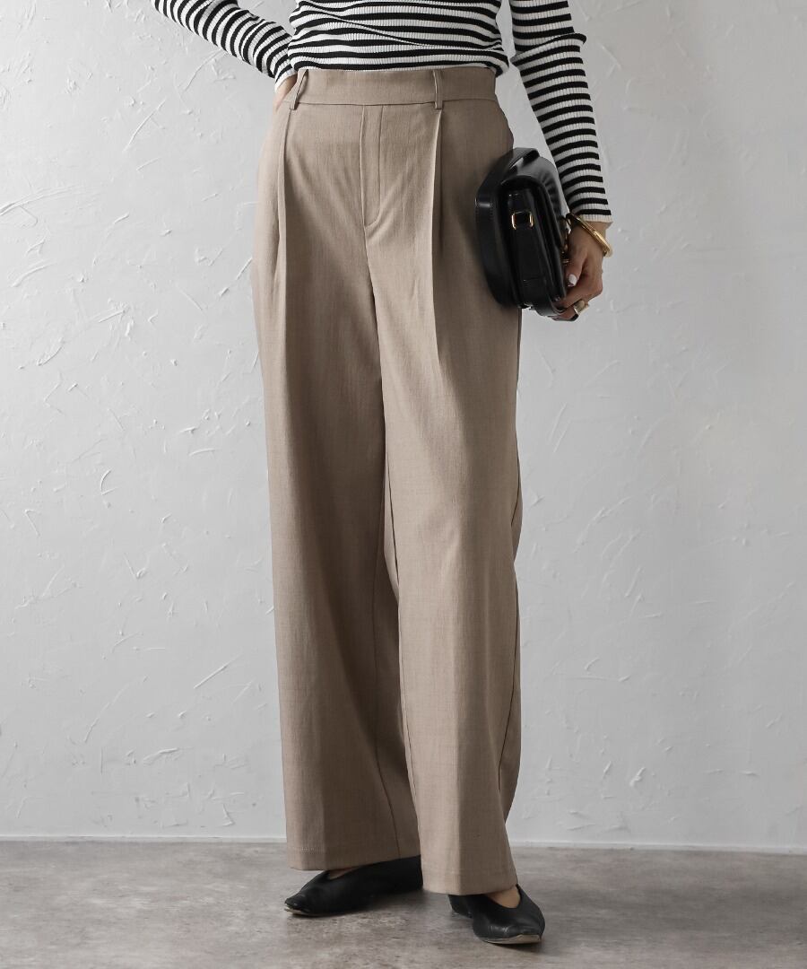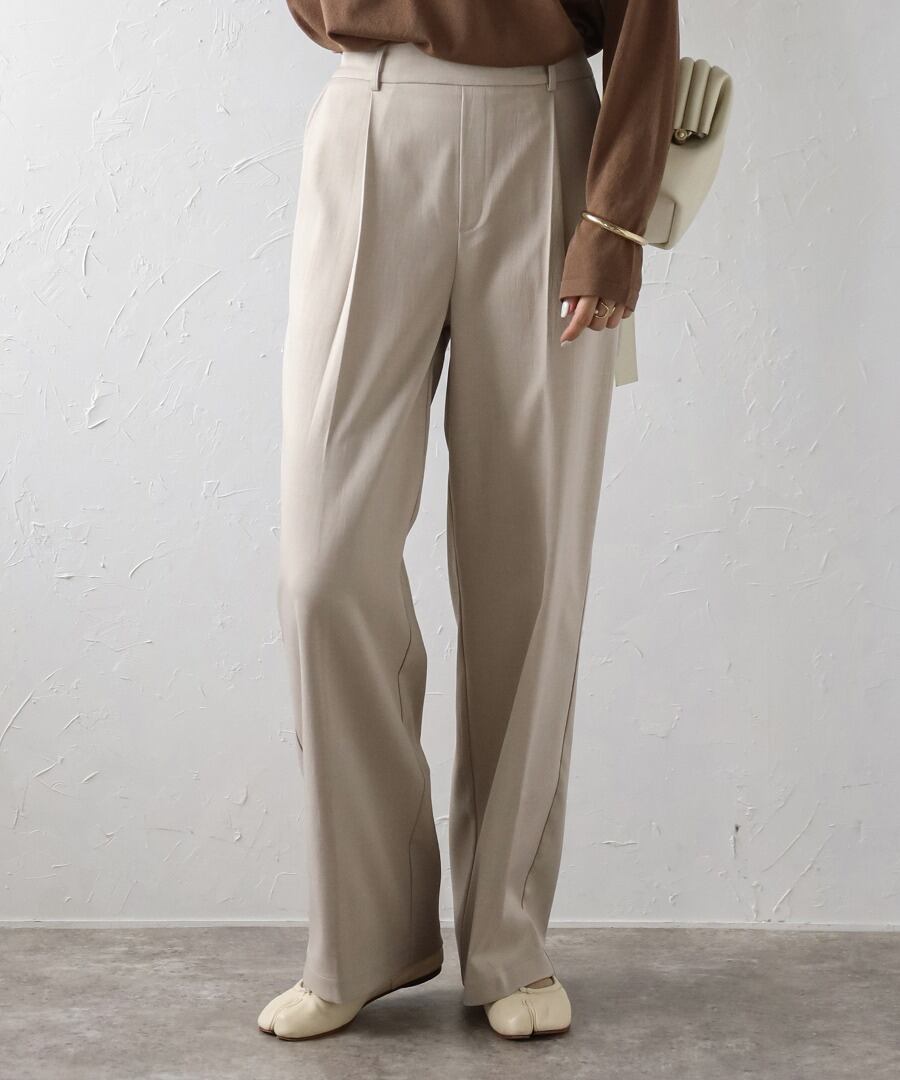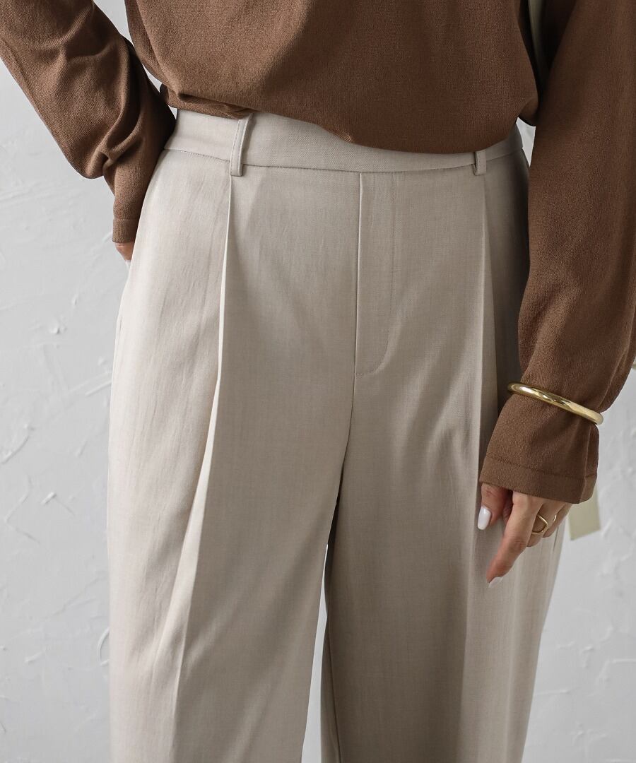 エフォートレスでこなれた上品スタイルが決まる、杢調タックワイドパンツ