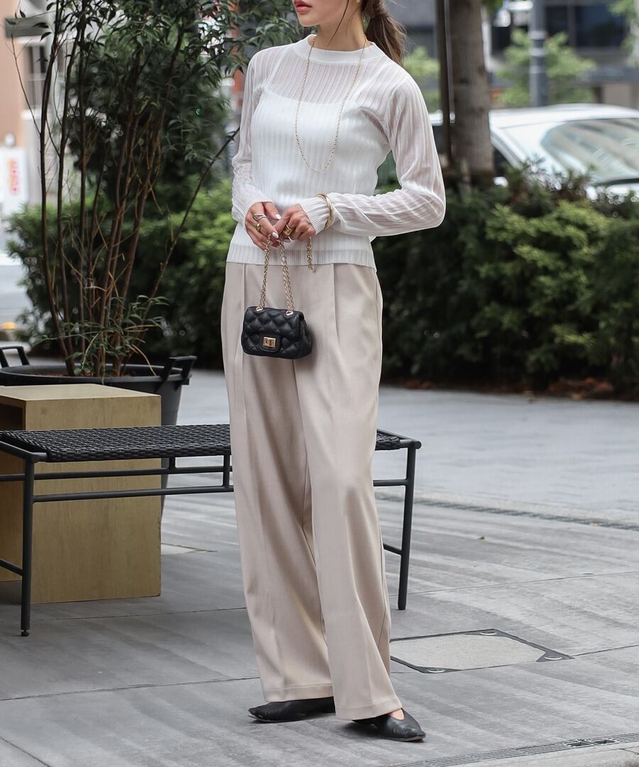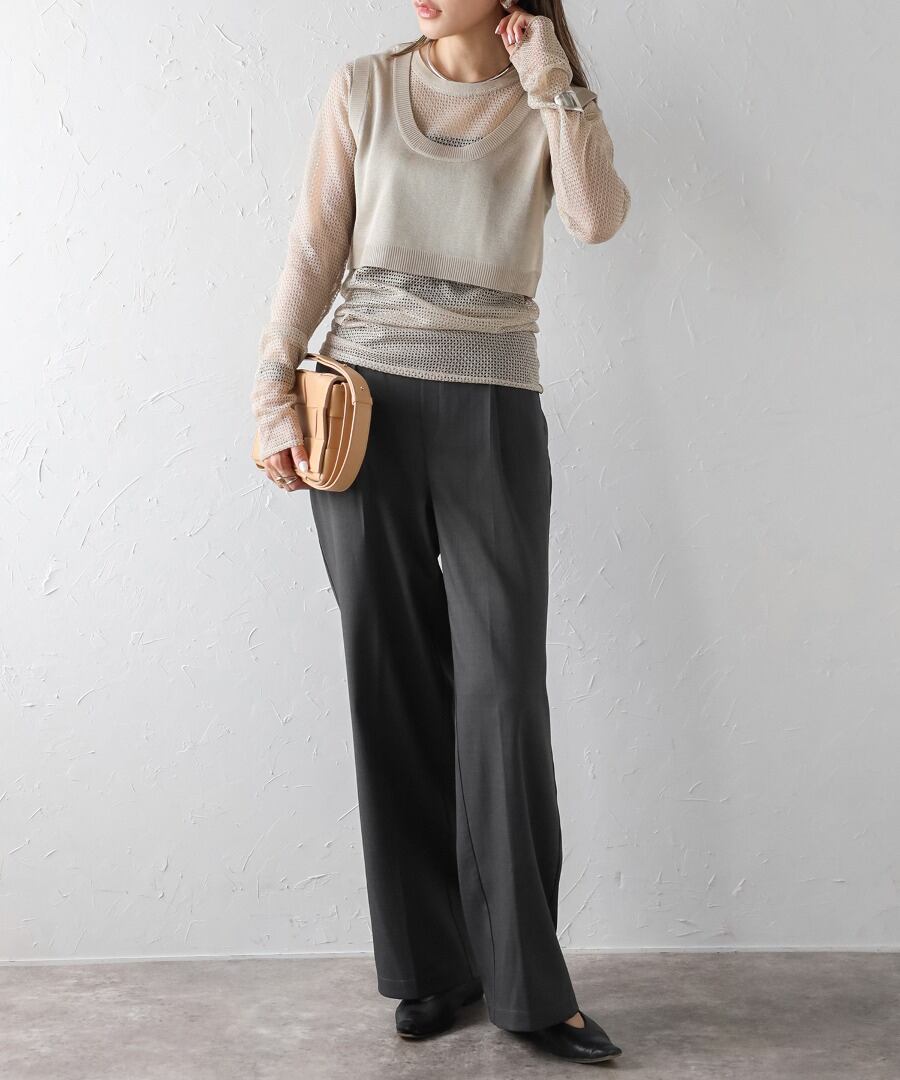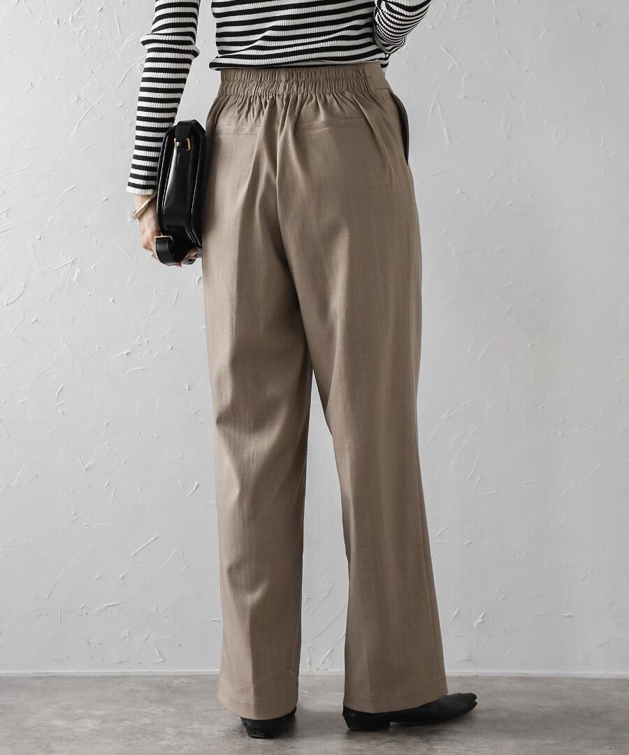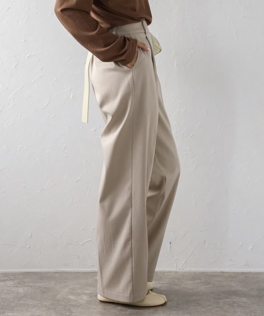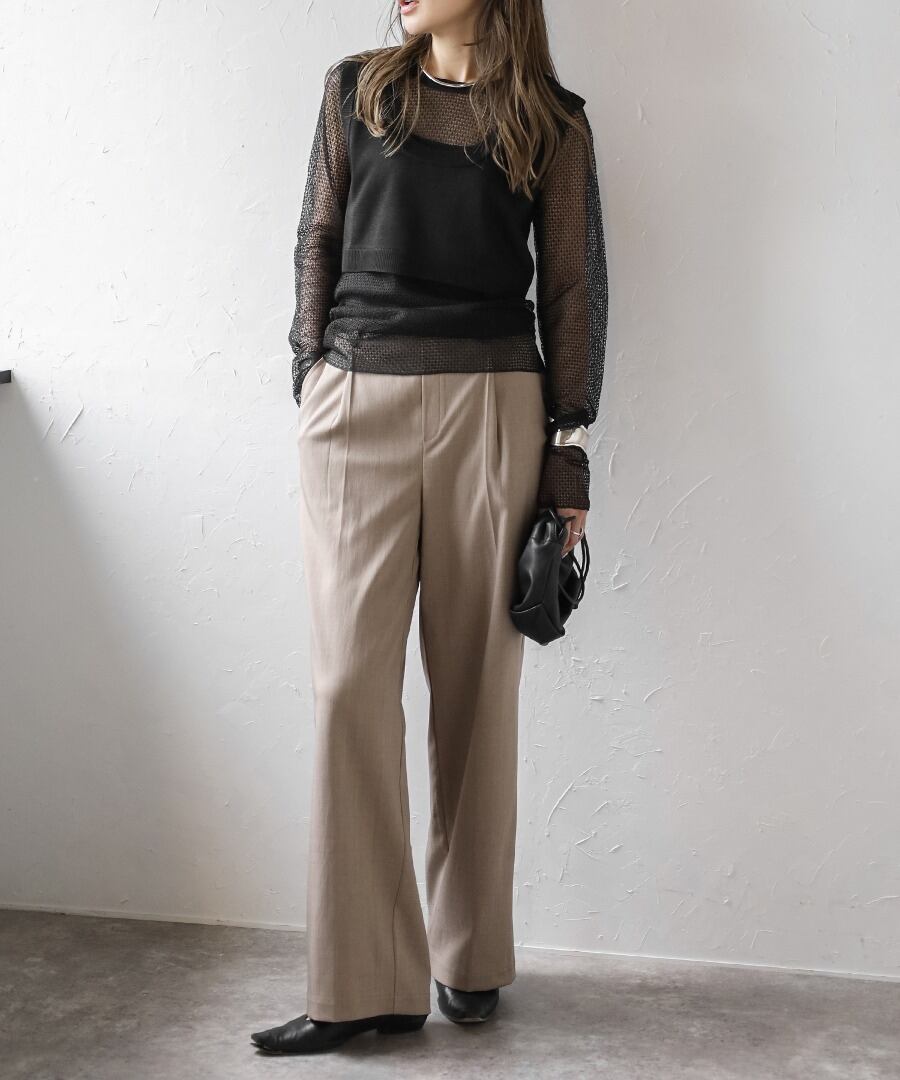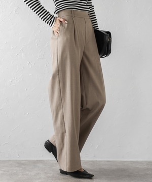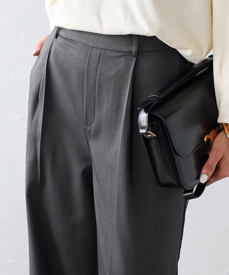 エフォートレスでこなれた上品スタイルが決まる、杢調タックワイドパンツ