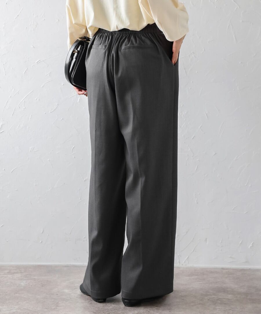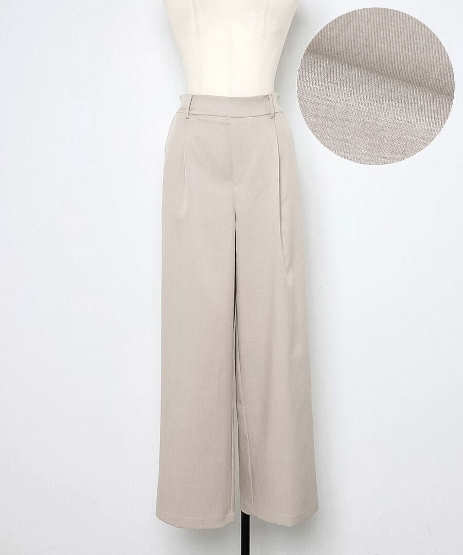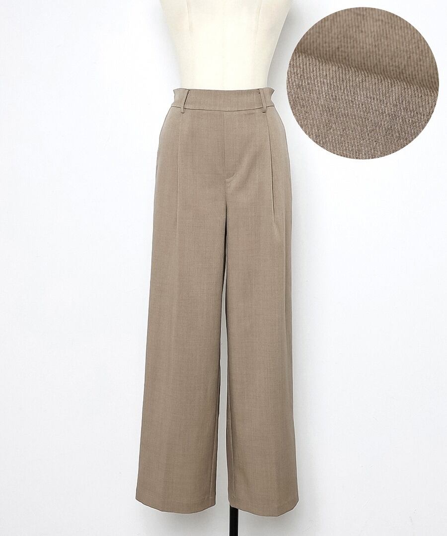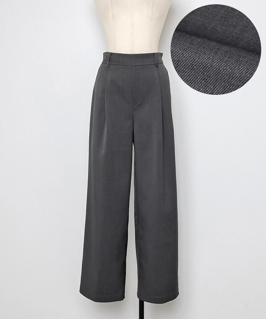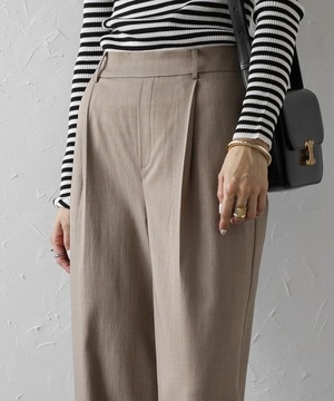エレガントな杢調素材を使用したタックワイドパンツ。