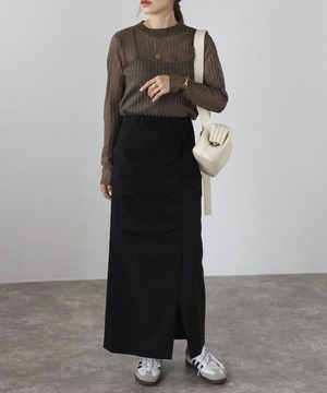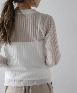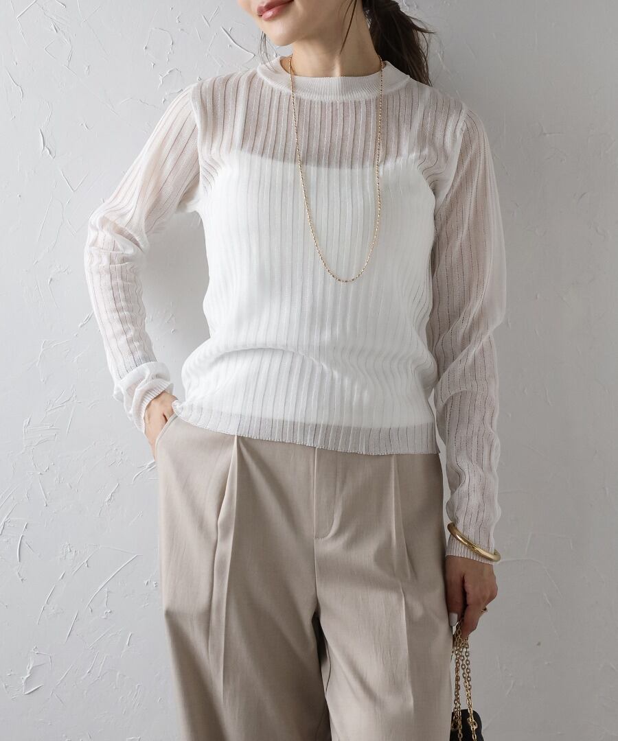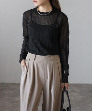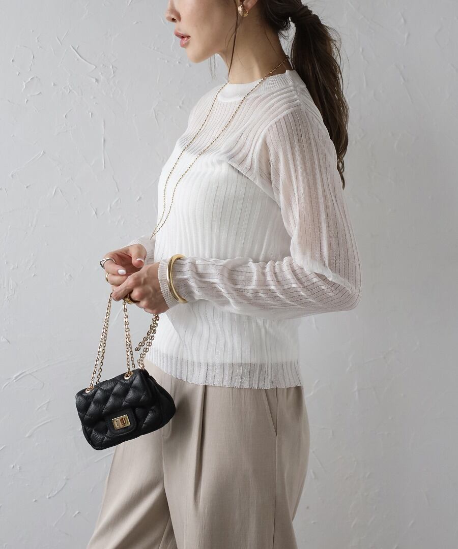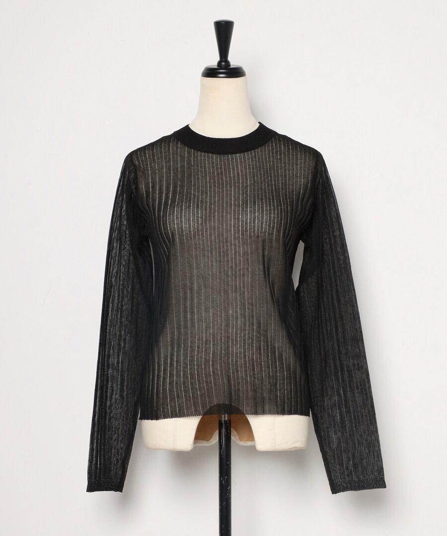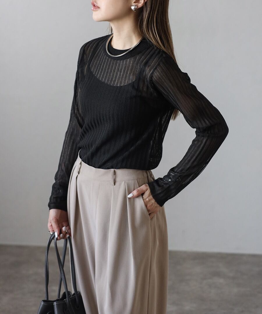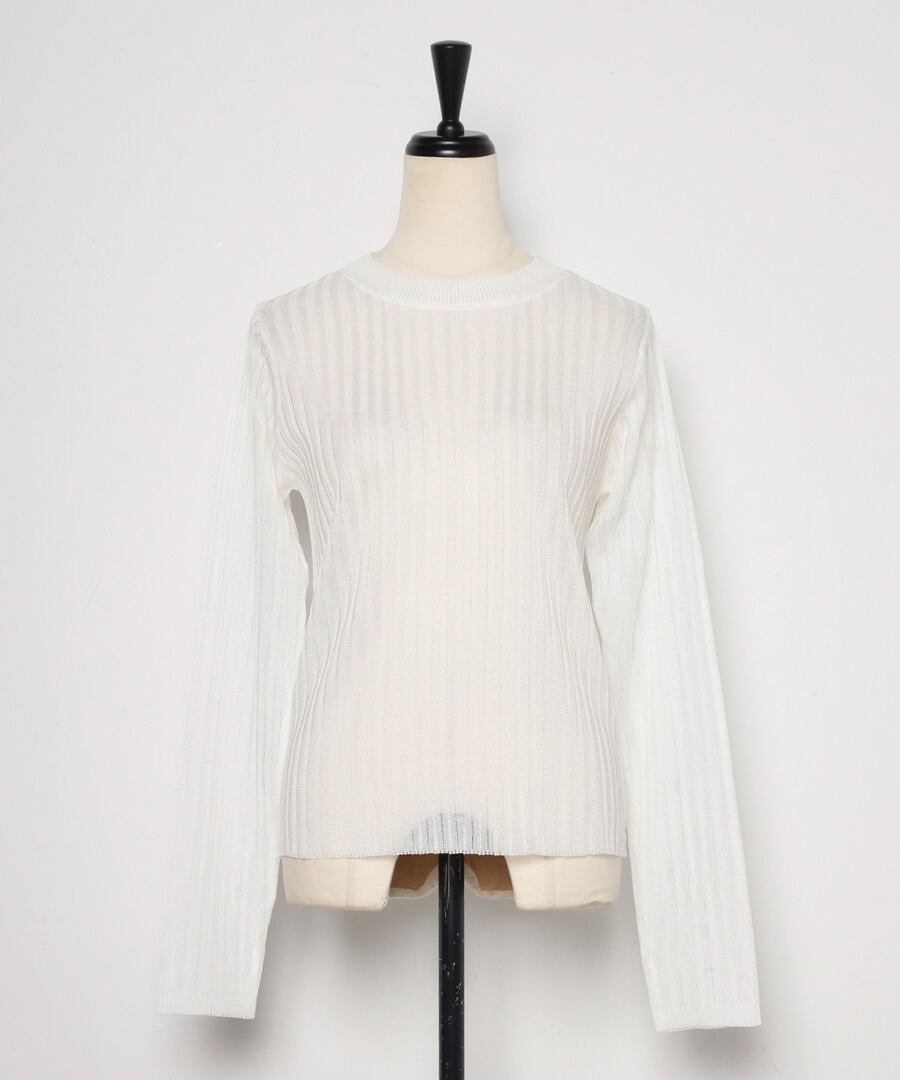 メタリックな輝きが美しいシアー素材のロングスリーブニットT。