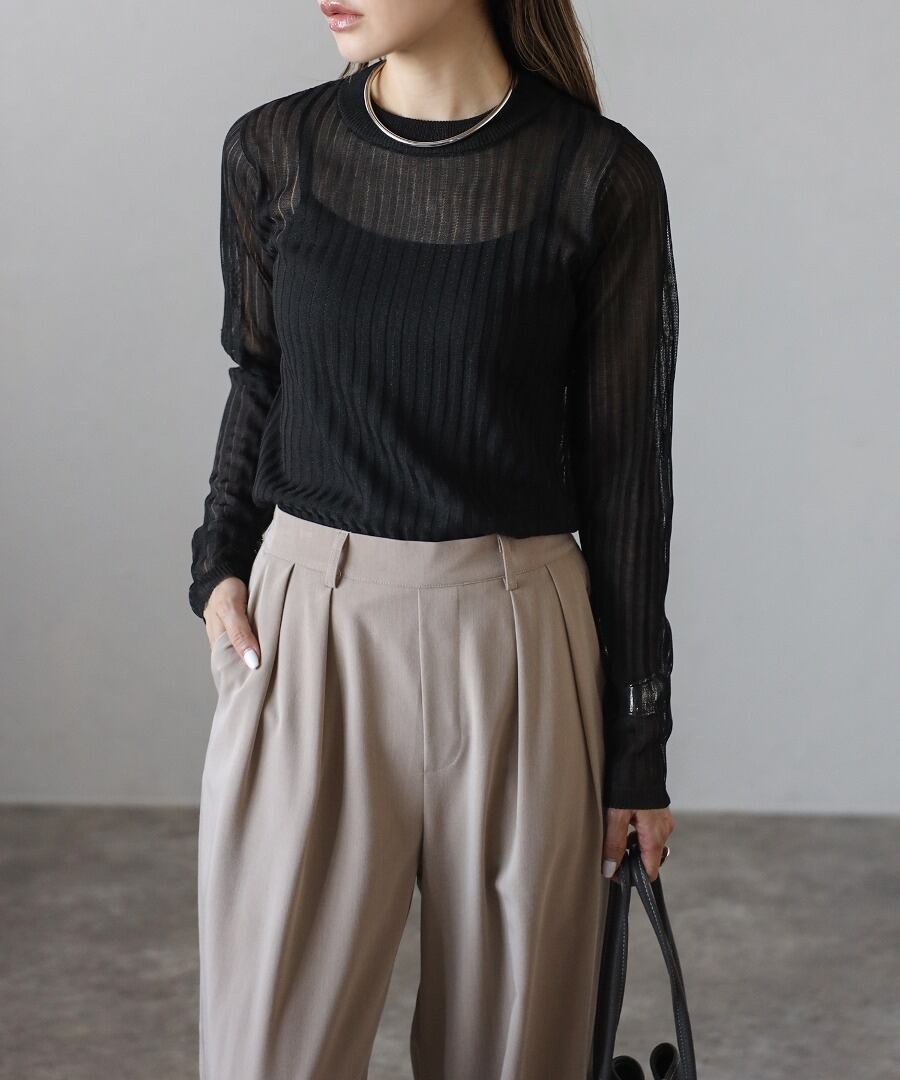 ボディラインに優しくフィットするリブ編みがスタイルアップを実現。